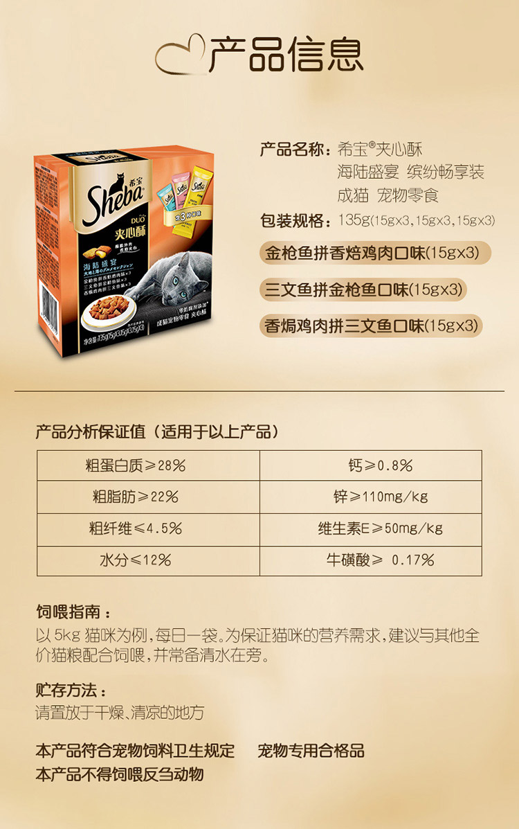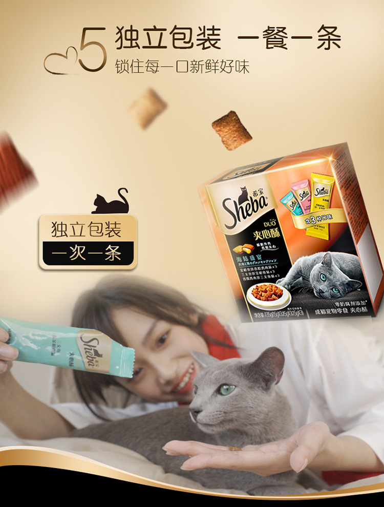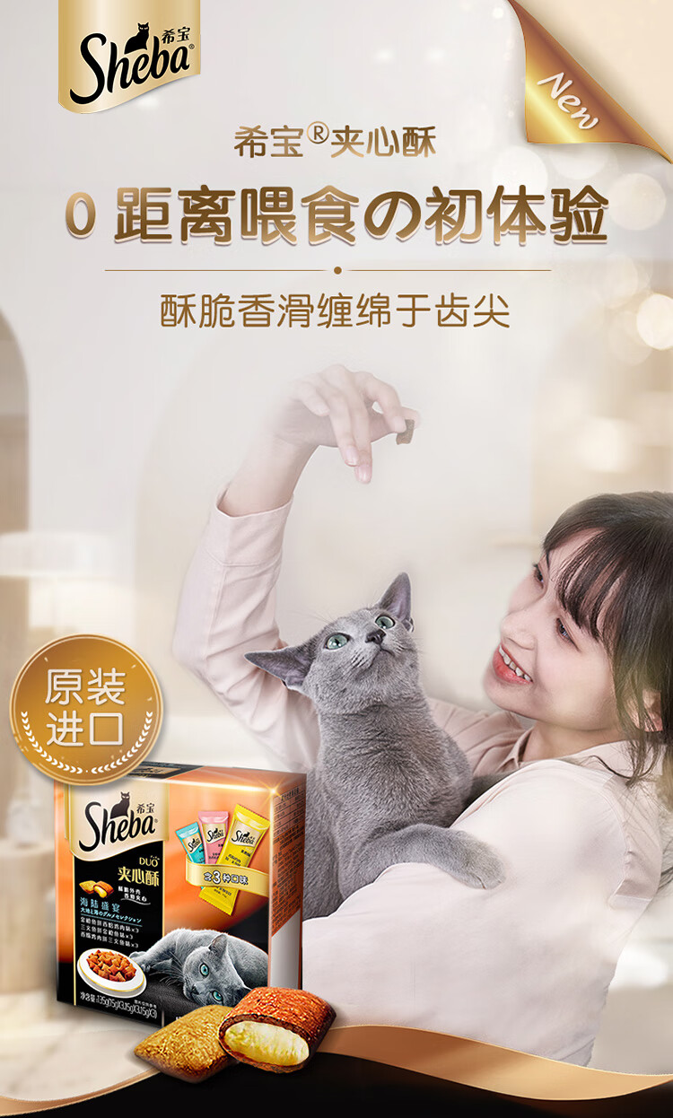 希宝猫零食进口夹心酥磨牙棒猫饼干海陆盛宴三文鱼拼鸡肉味135g