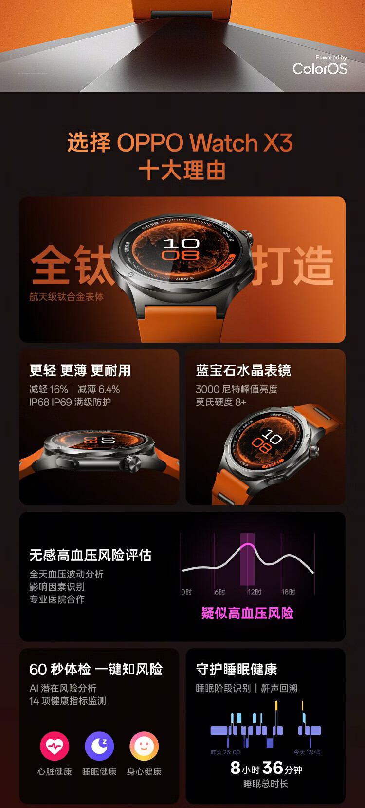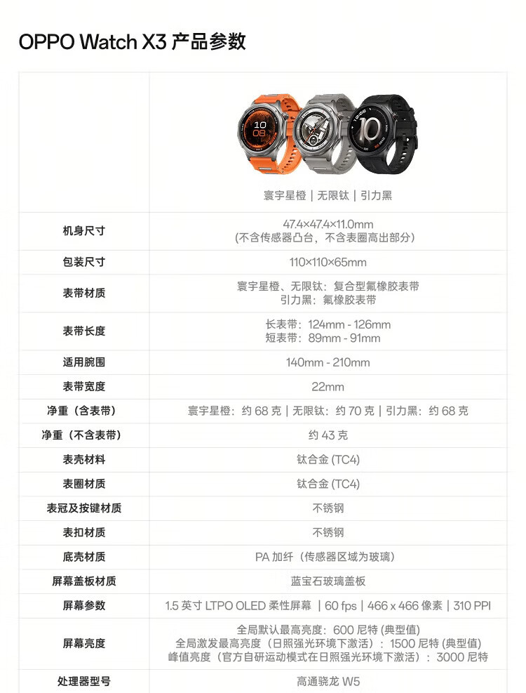 OPPO Watch X3【国家补贴15%】全智能手表运动健康eSIM 电话无感高血压风险评估心率血氧健康监测手表 无限钛 官方标配丨下单选豪礼