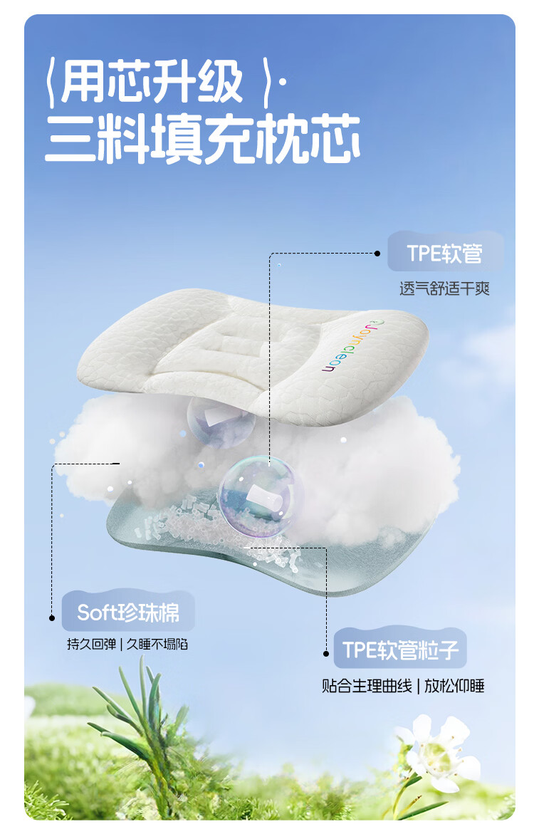 婧麒(JOYNCLEON)婴儿枕头分区宝宝枕护颈神器6个月以上儿童枕头1-3岁 绿jzt197153