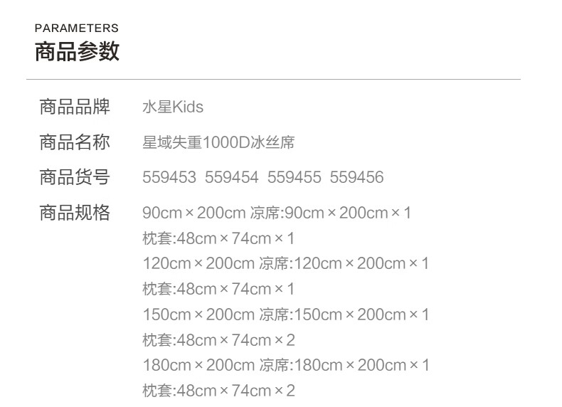 水星家纺星域失重1000D冰丝席 星域失重1000D冰丝席 两件套 90cm×200cm 200cm*90cm