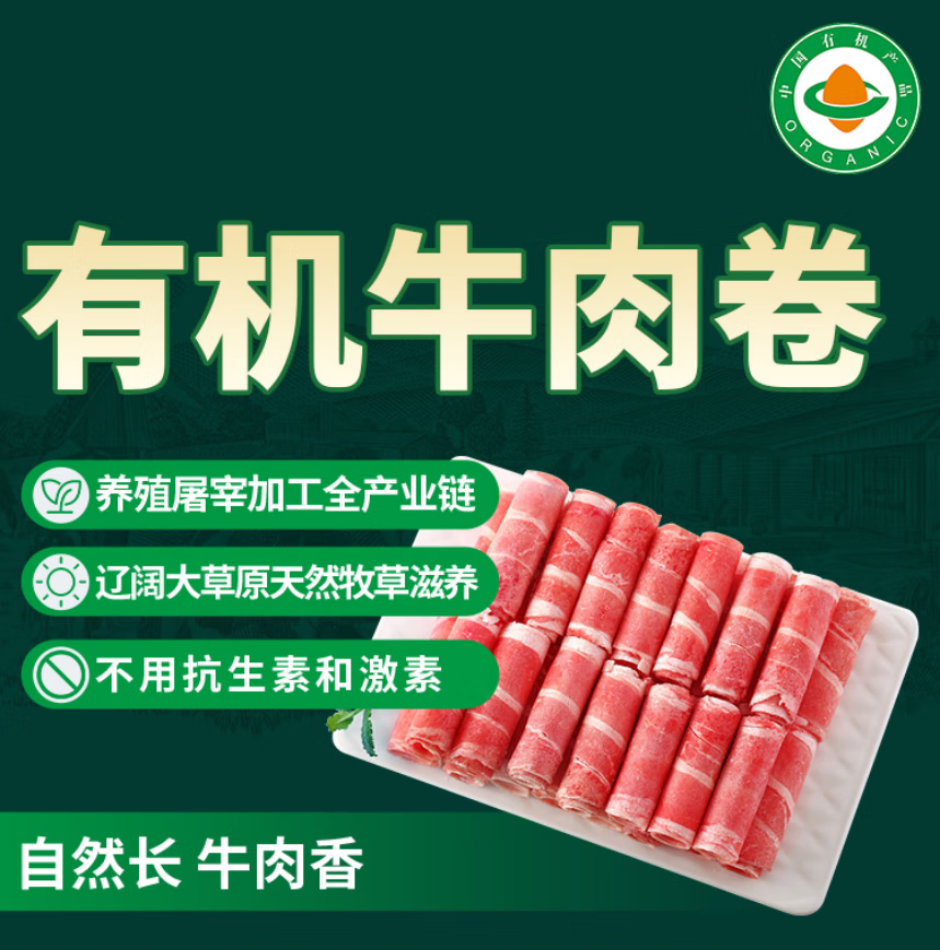 德远斋锡林郭勒草原有机肥牛卷500g 国产有机原切牛肉卷生鲜 火锅涮烤