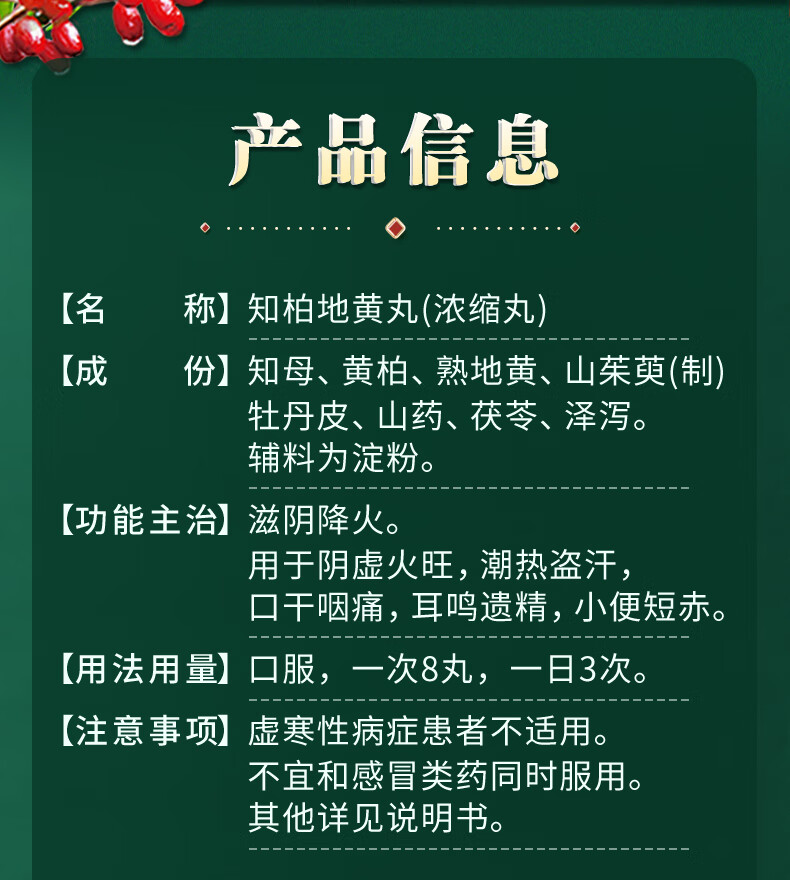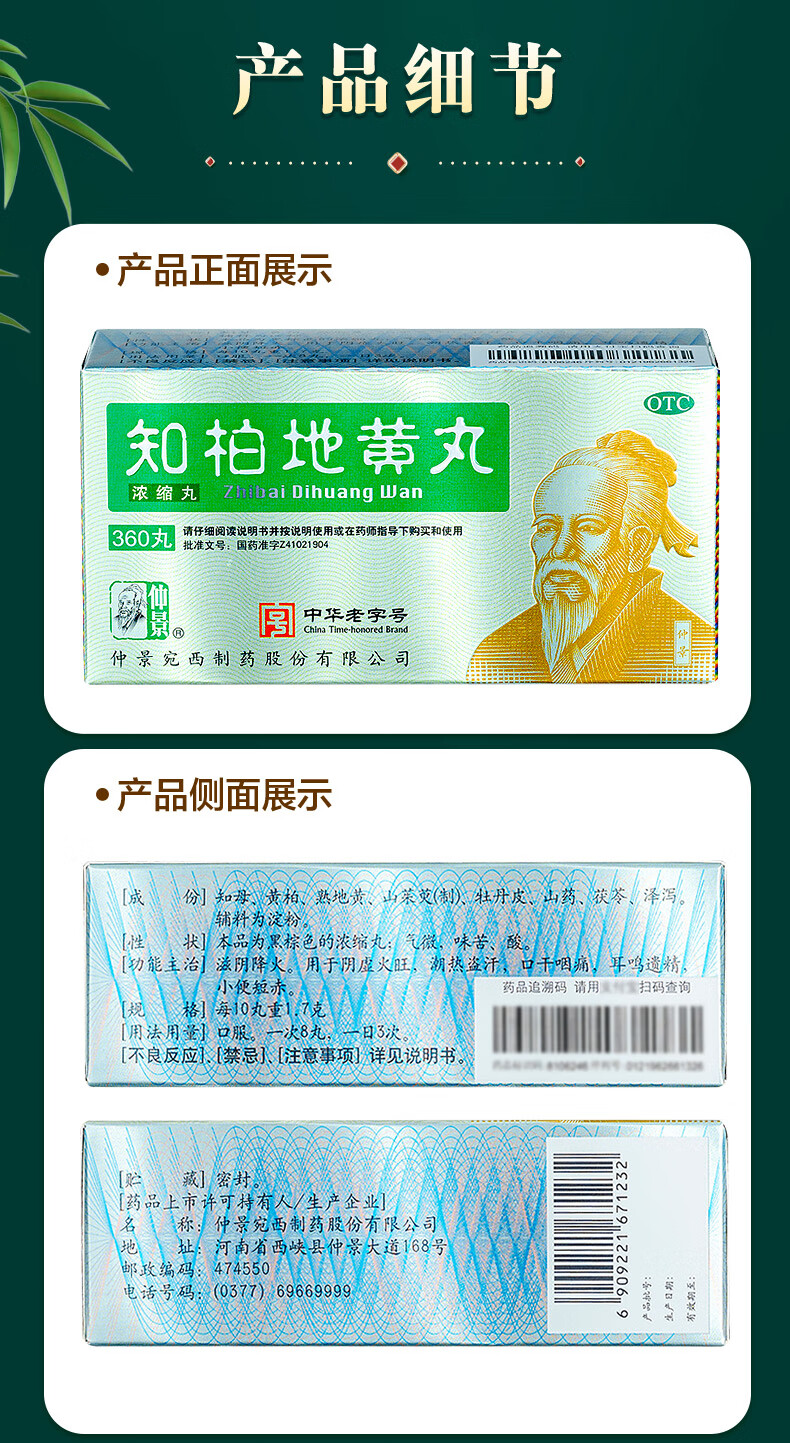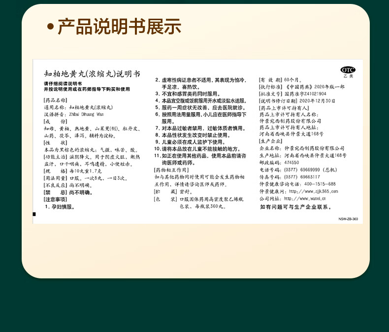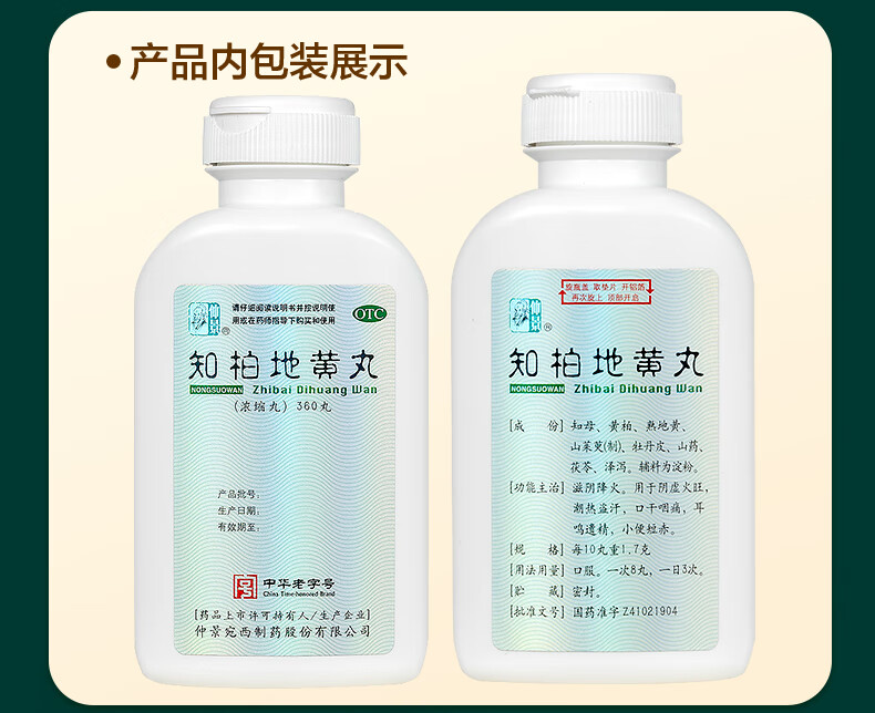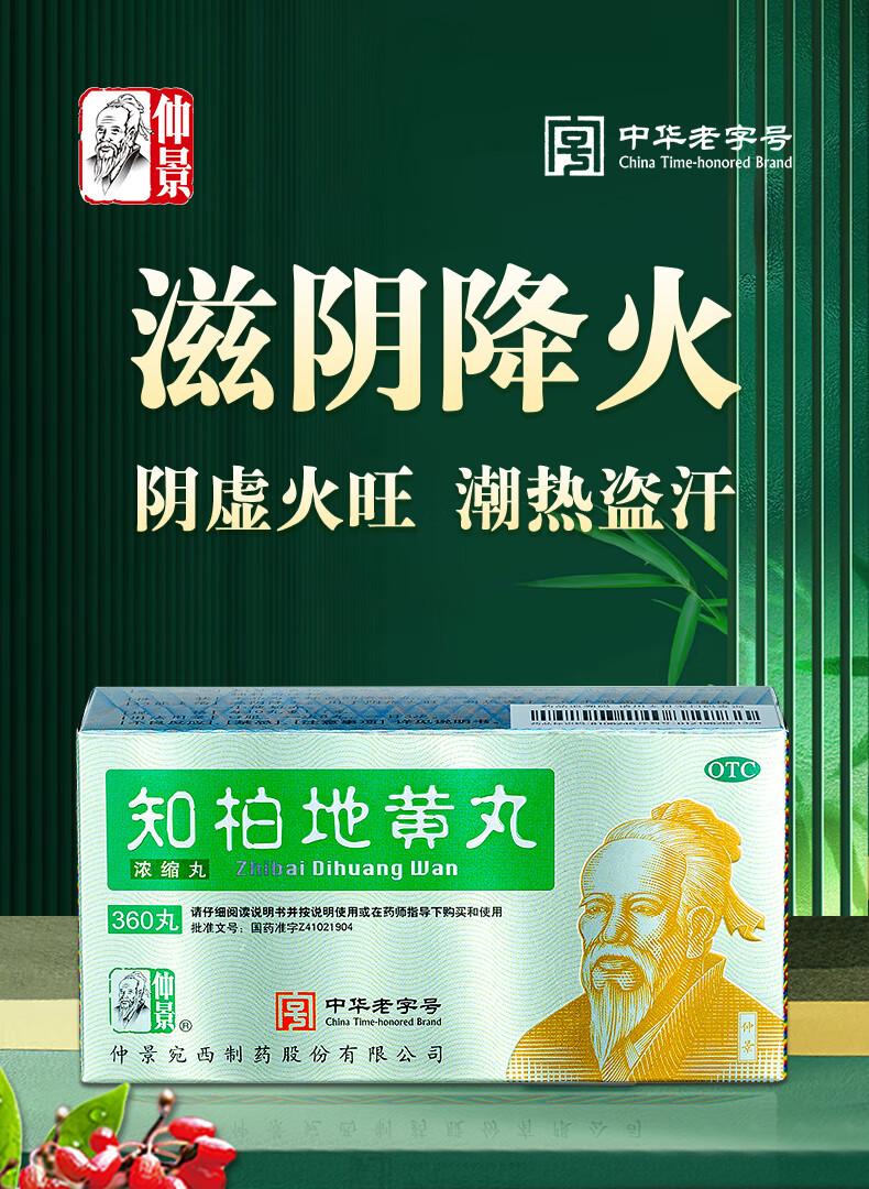仲景 知柏地黄丸(浓缩丸)360丸 滋阴降火潮热盗汗耳鸣遗精阴虚火旺口干咽痛小便短赤