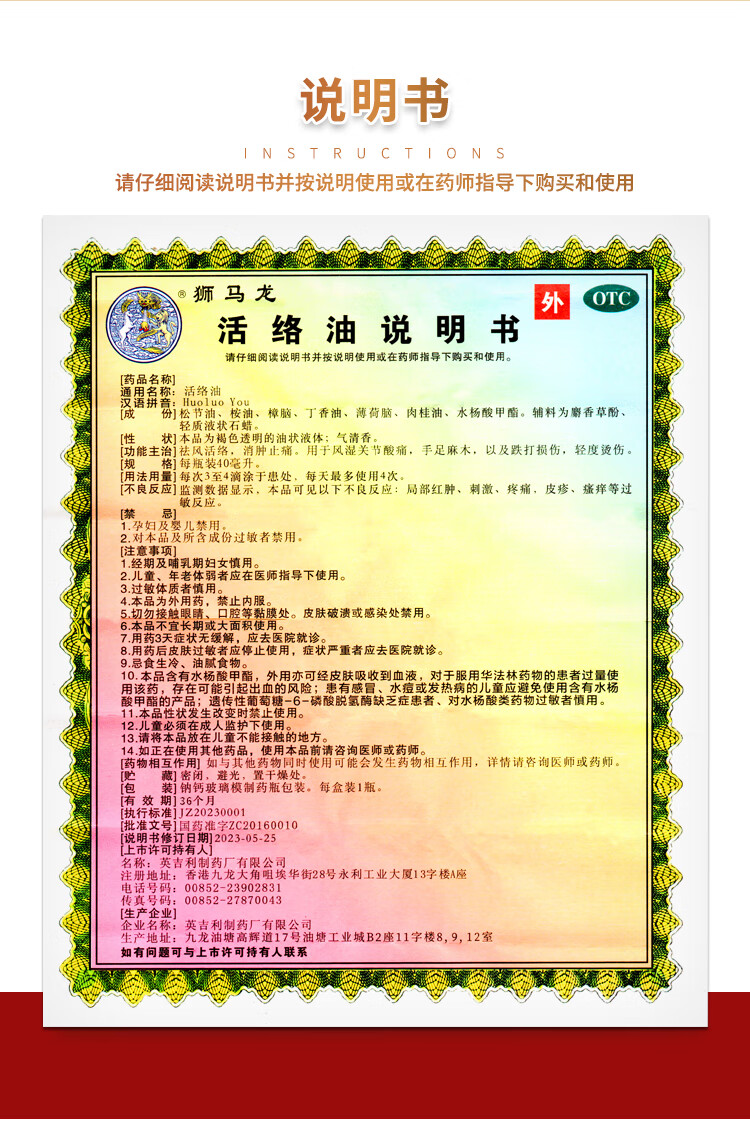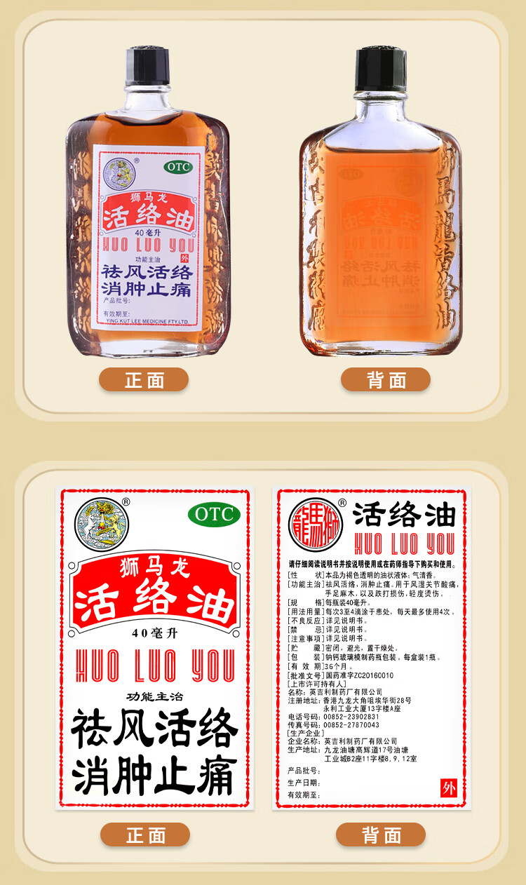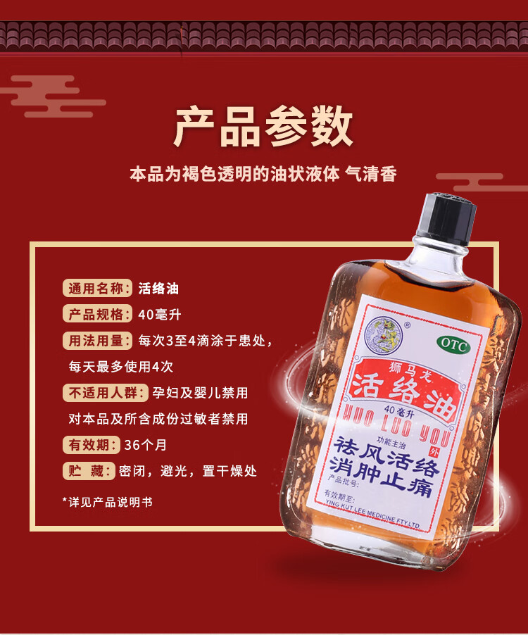 【香港进口】狮马龙活络油樟冰油祛风活络消肿止痛 风湿关节酸痛手足麻木跌打损伤轻度烫伤