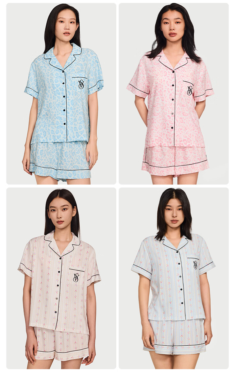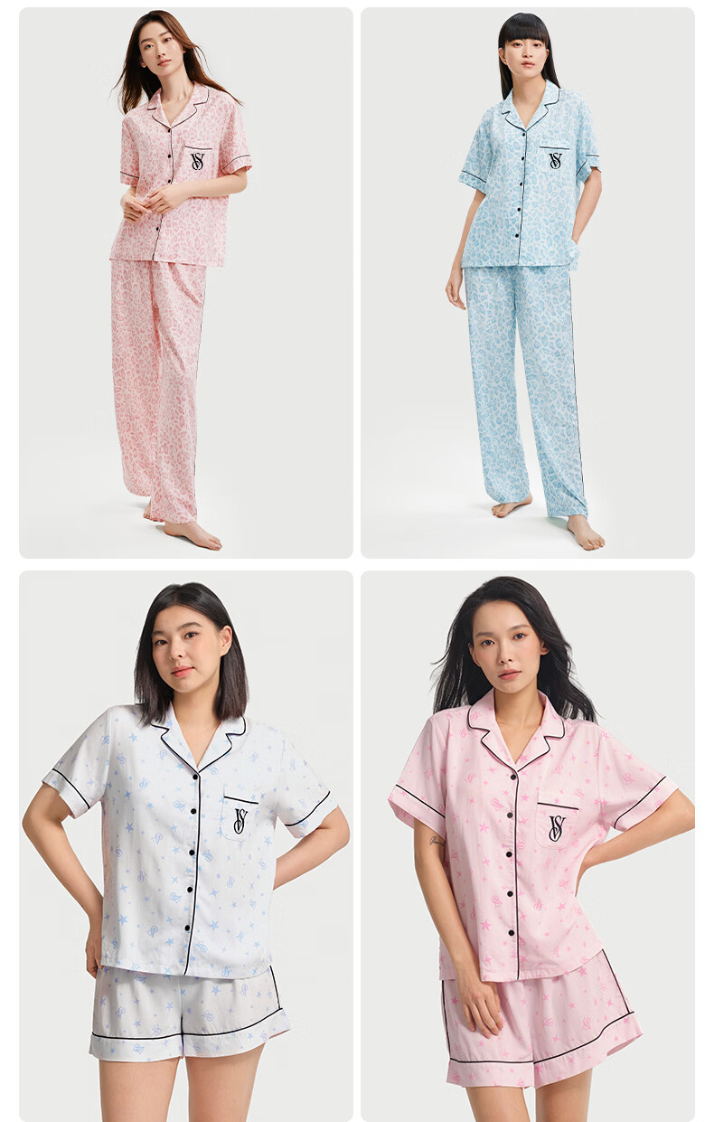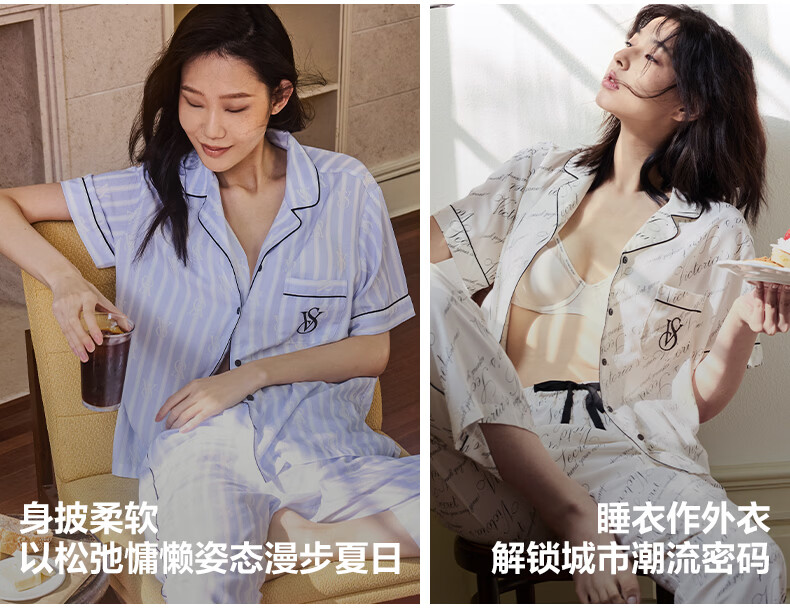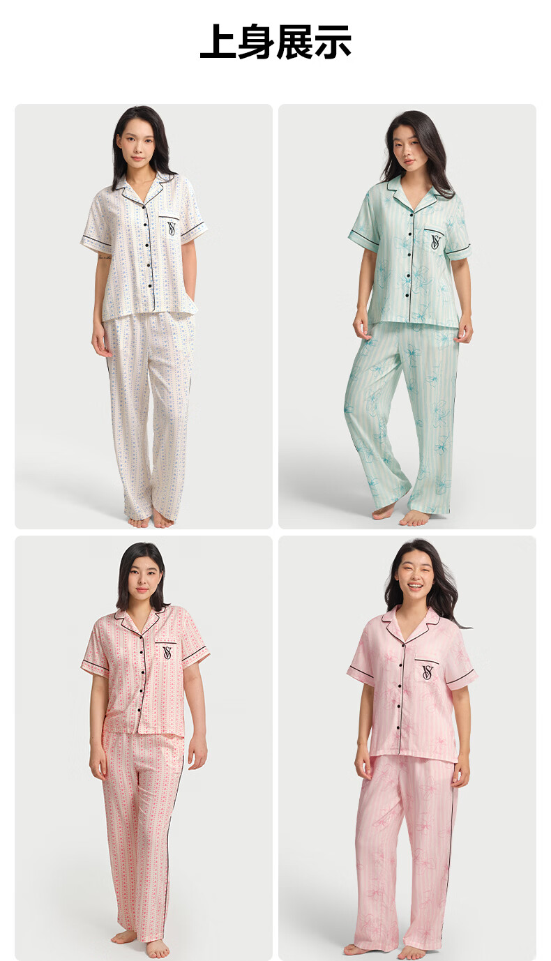 维多利亚的秘密(Victoria's Secret)维密 单依纯同款宅度假天丝绵柔印花睡衣家居服套装女不易皱