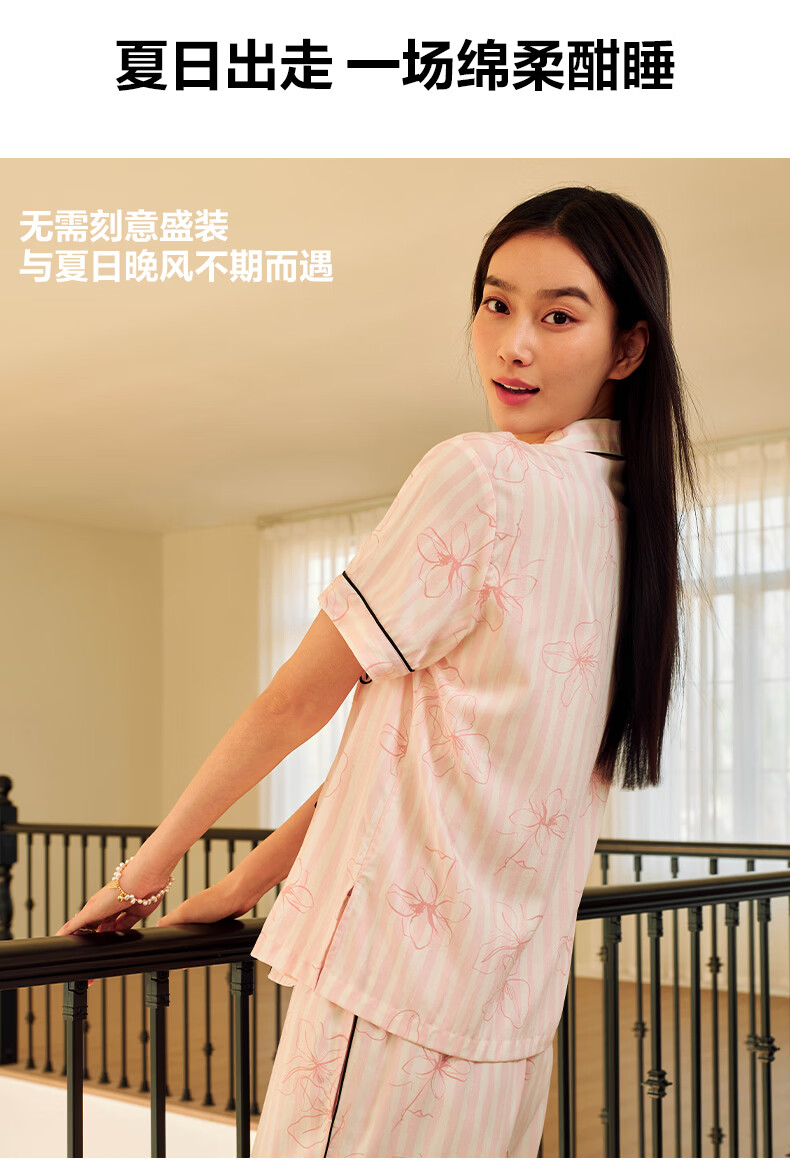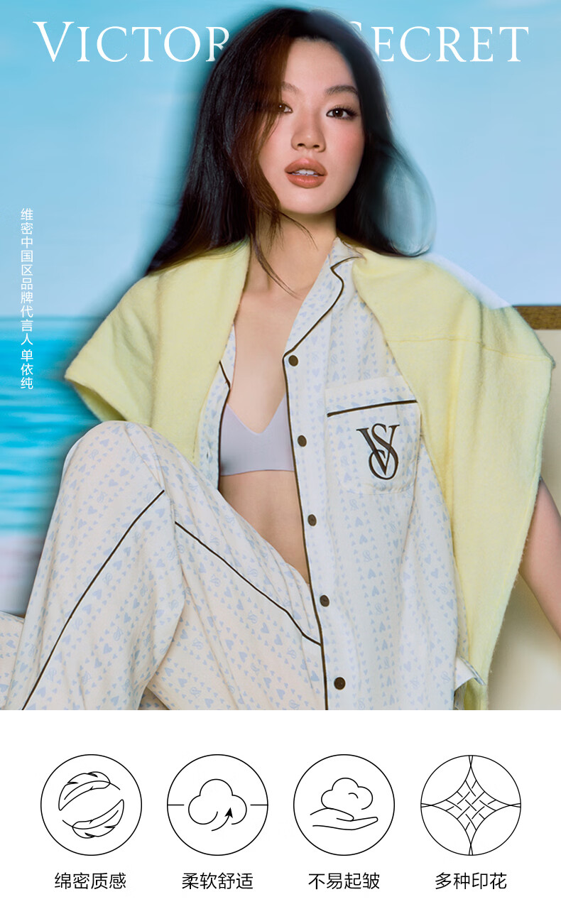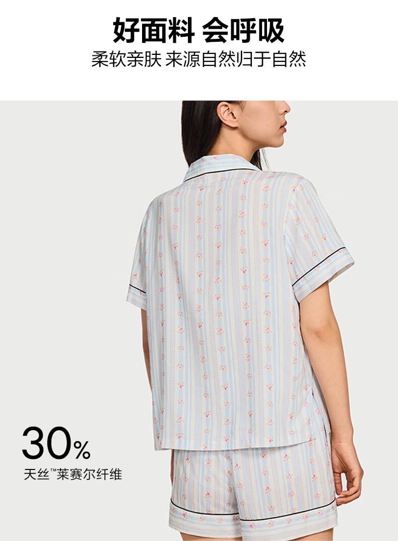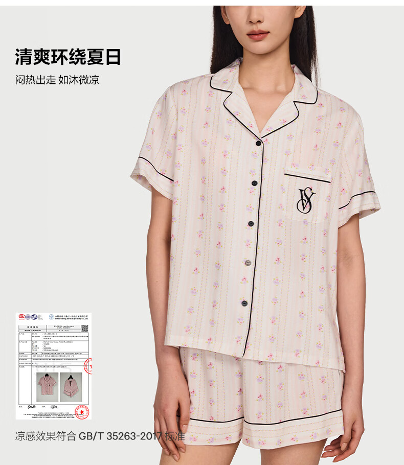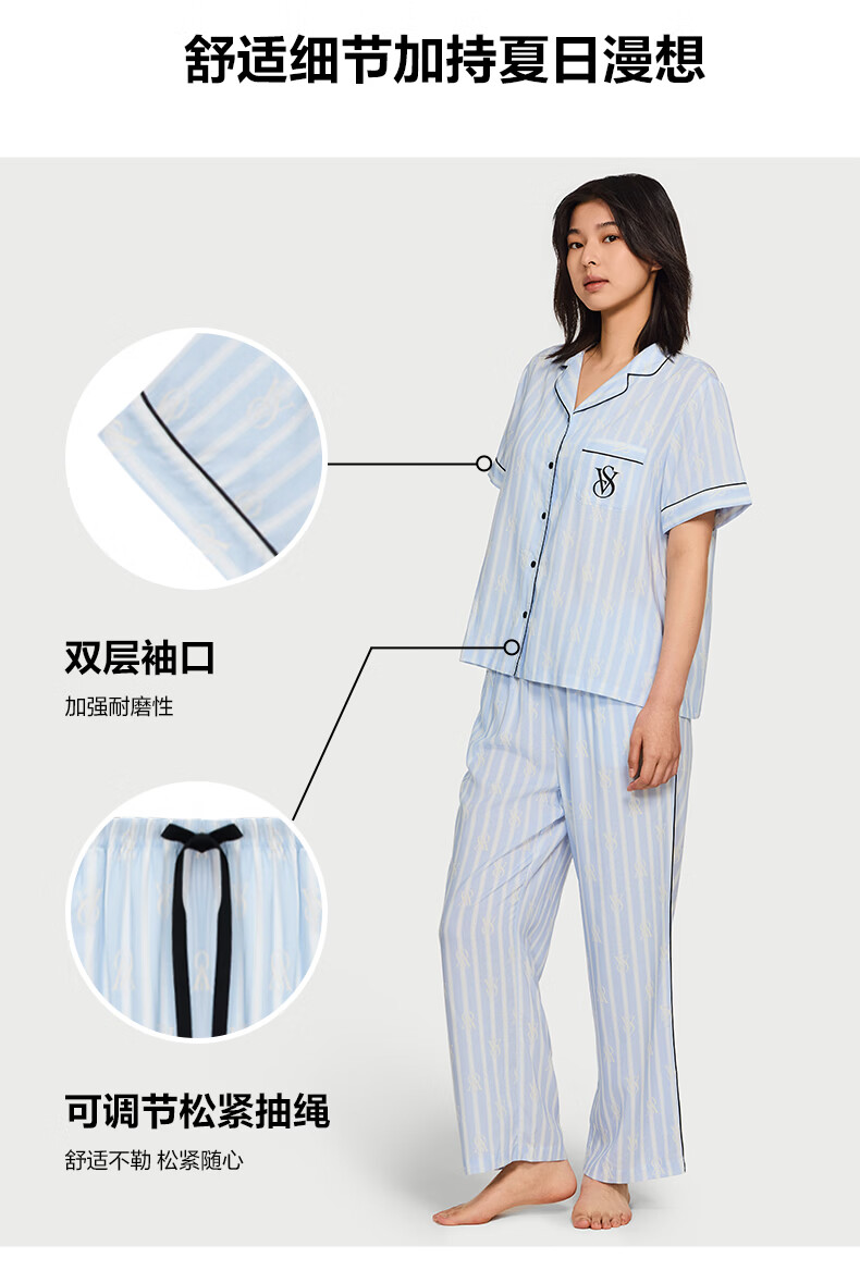 维多利亚的秘密(Victoria's Secret)维密 单依纯同款宅度假天丝绵柔印花睡衣家居服套装女不易皱