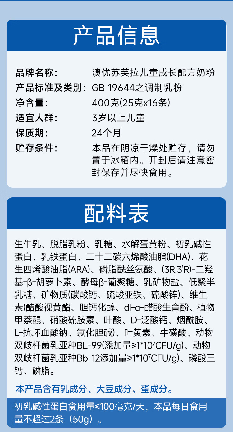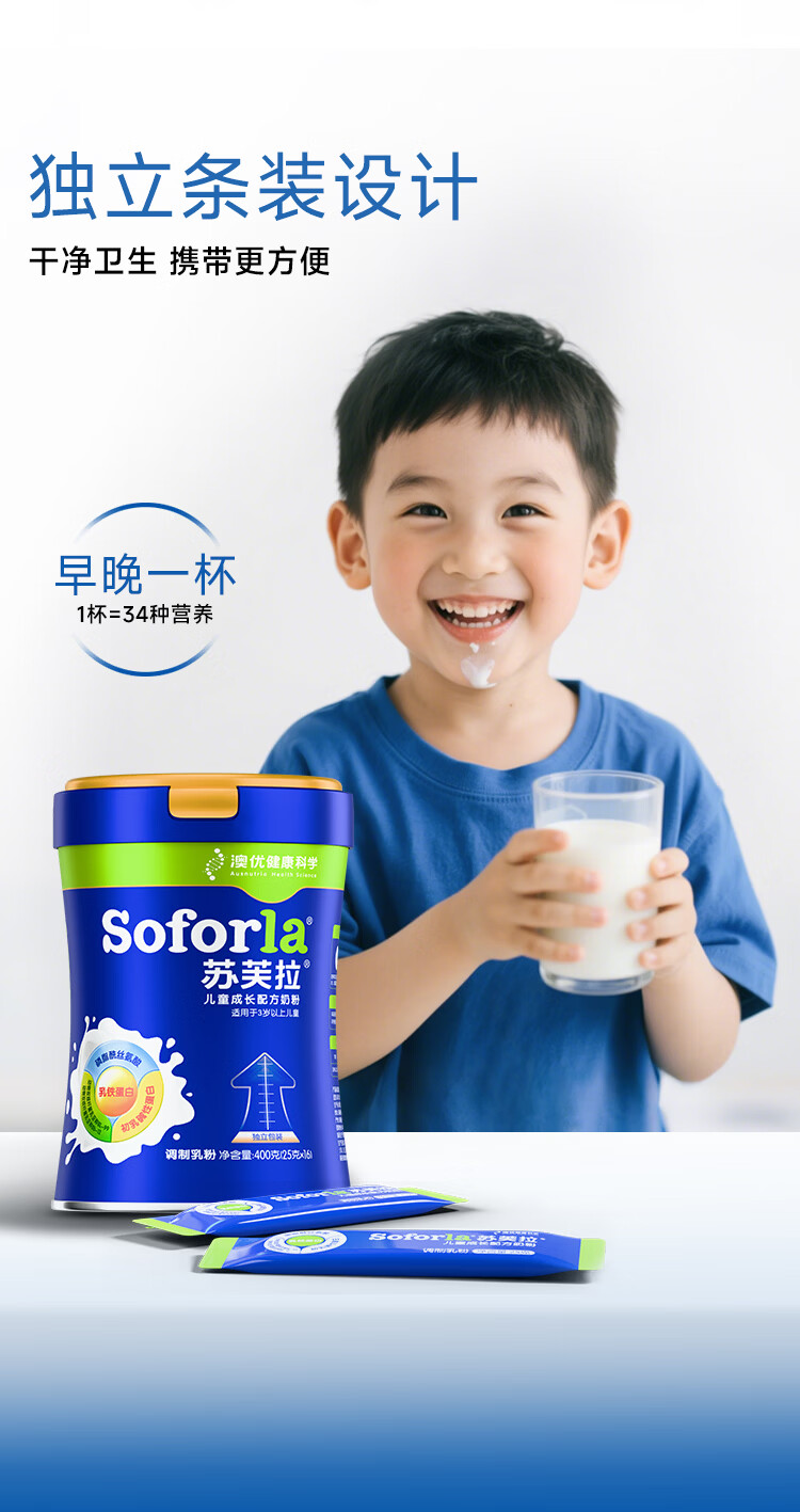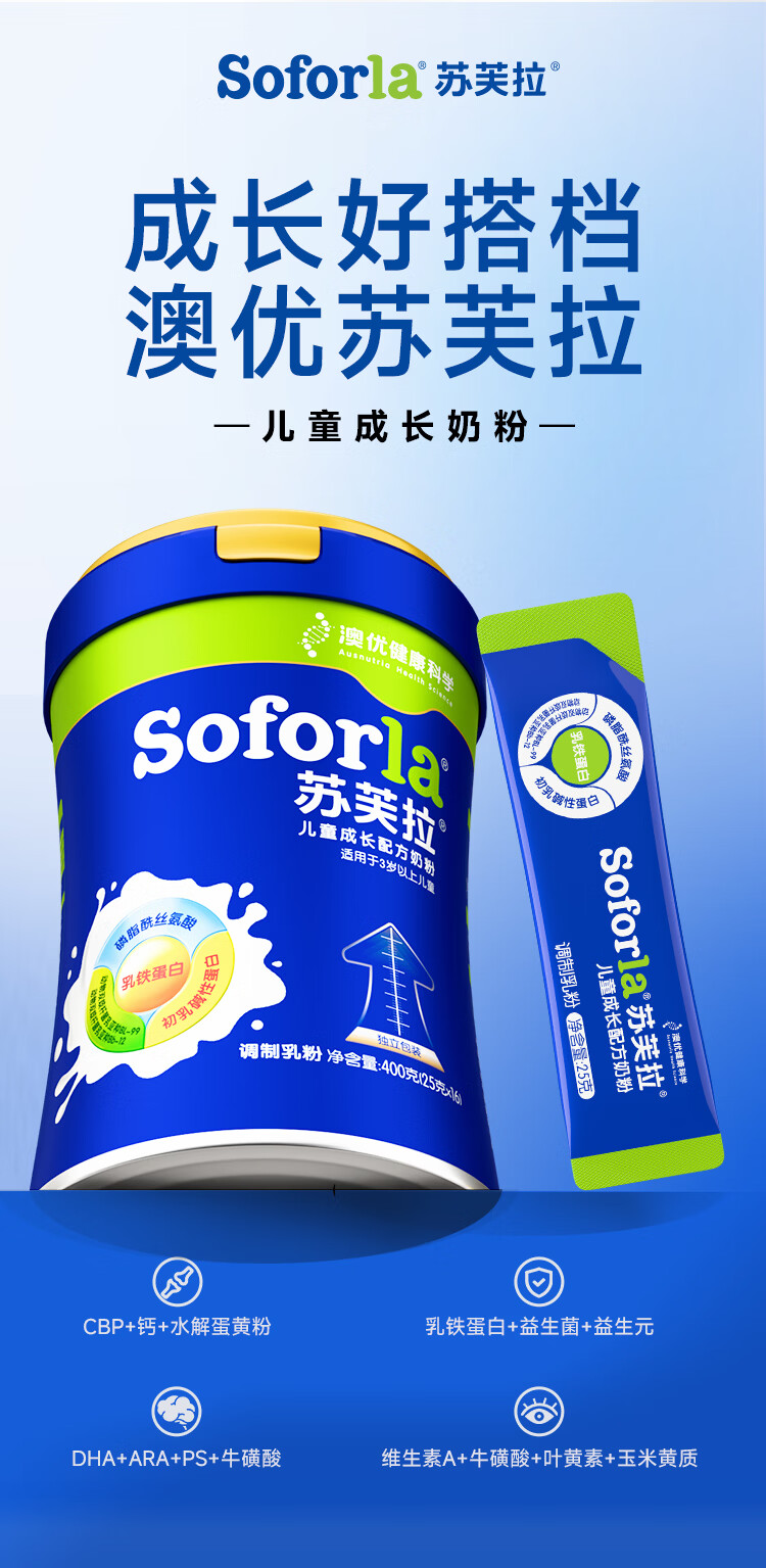 苏芙拉澳优儿童成长奶粉3-15岁400g*3罐 CBP+高钙骨骼发育自护吸收
