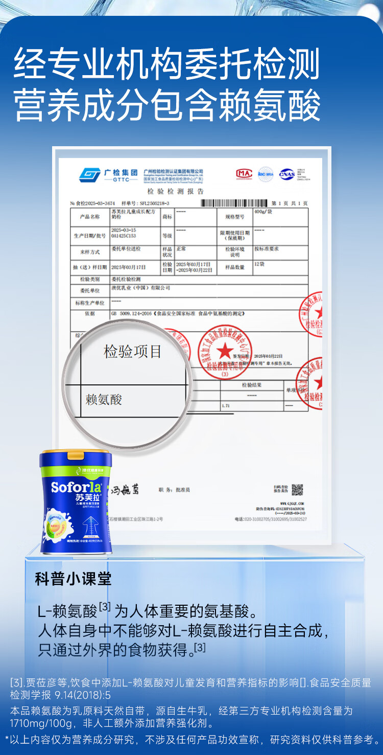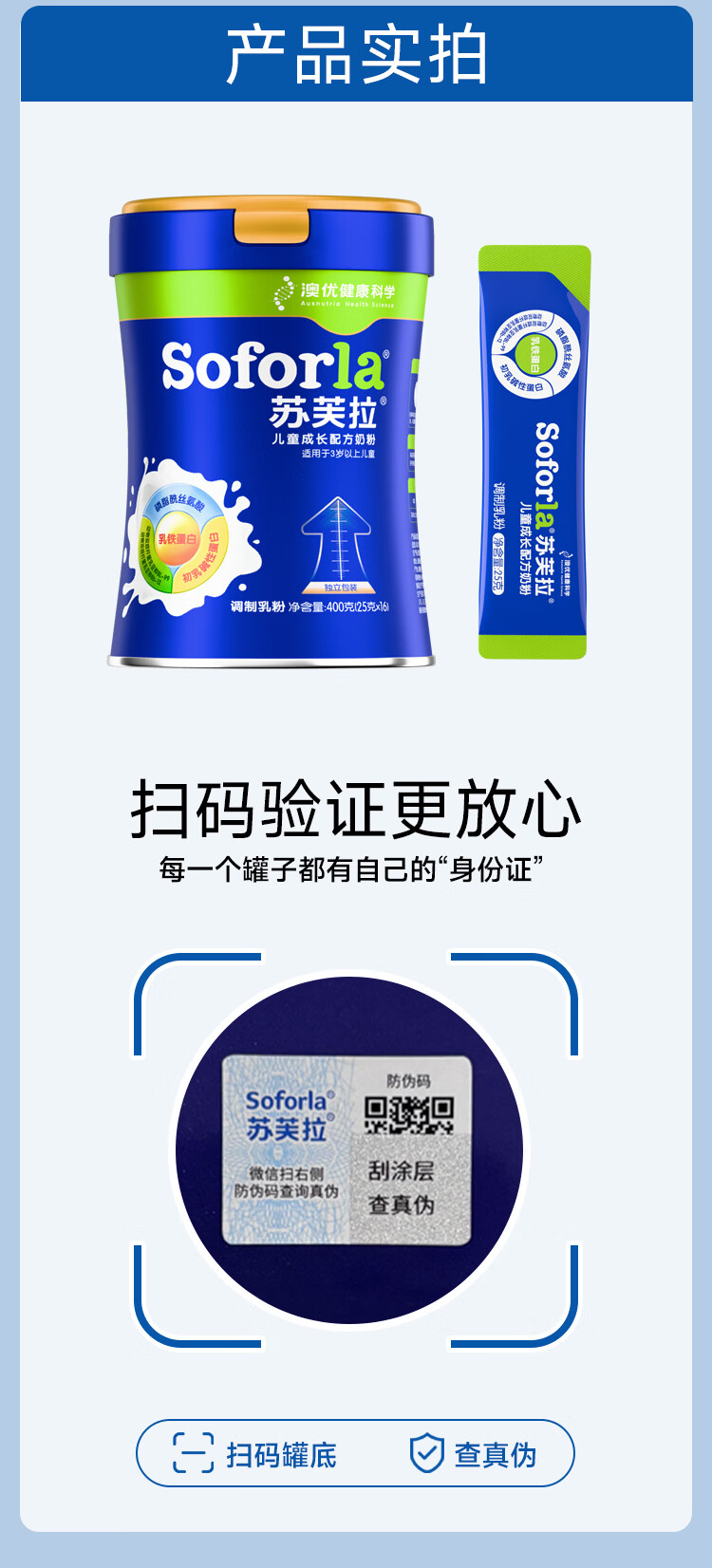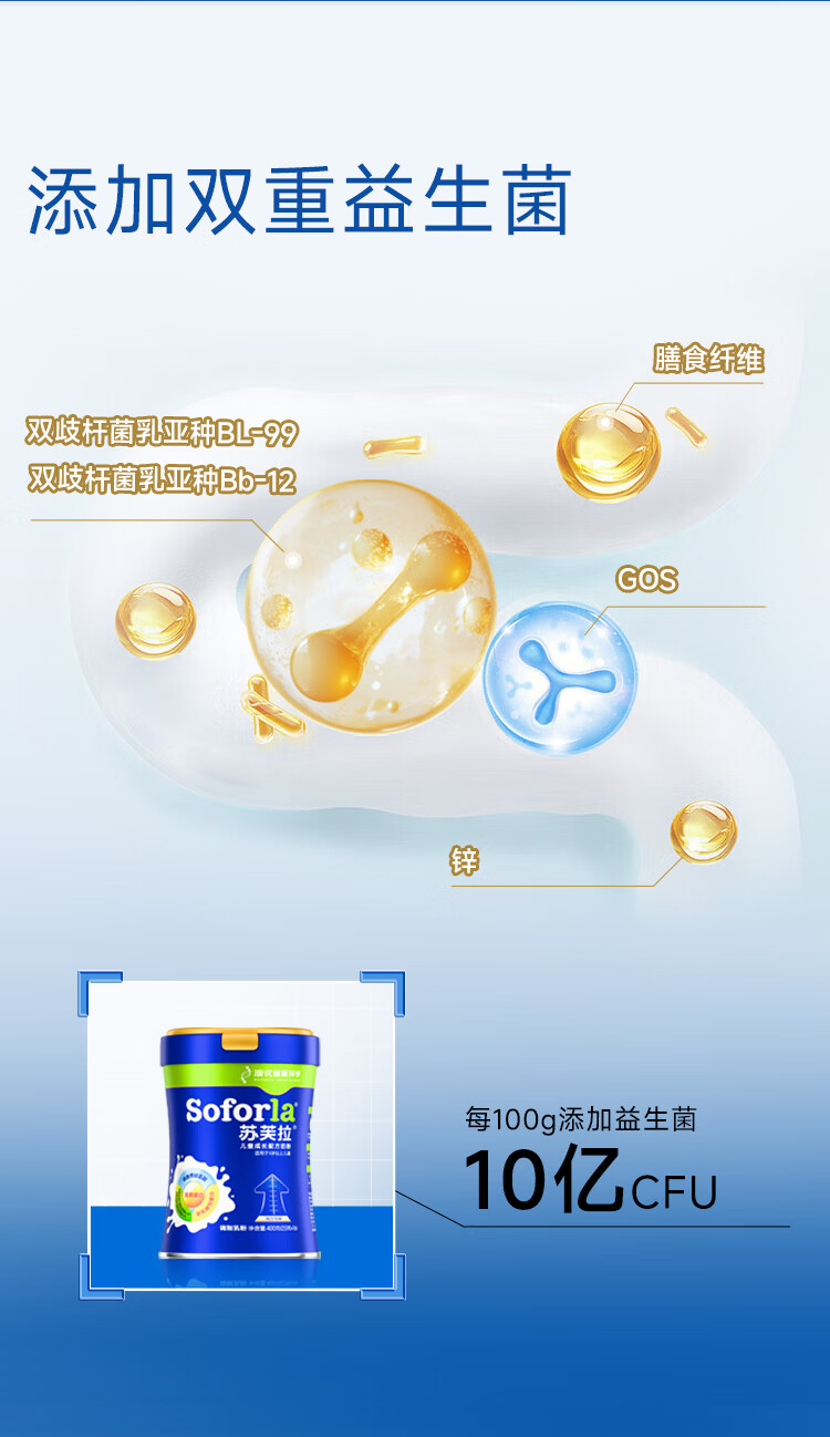 苏芙拉澳优儿童成长奶粉3-15岁400g*3罐 CBP+高钙骨骼发育自护吸收