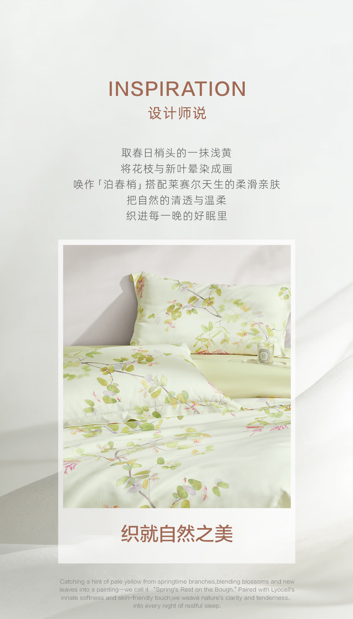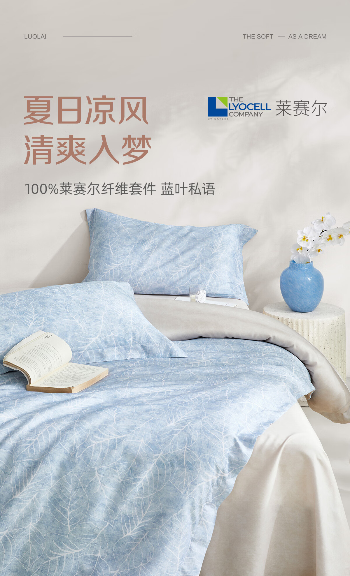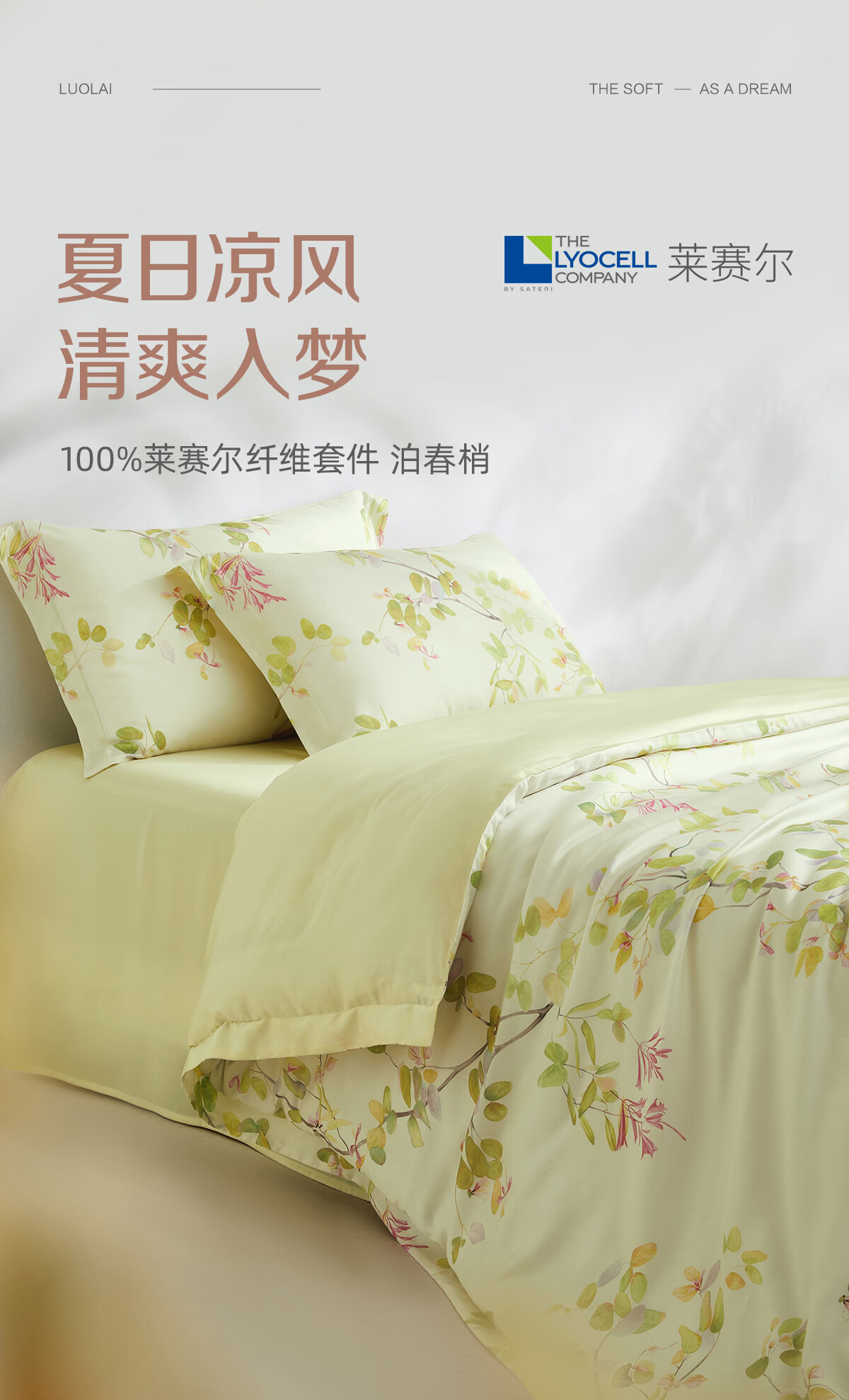 罗莱家纺50支莱赛尔纤维天丝四件套春夏凉感套件26年新品 泊春梢 1.2米床 床单款 (被套150*215cm)