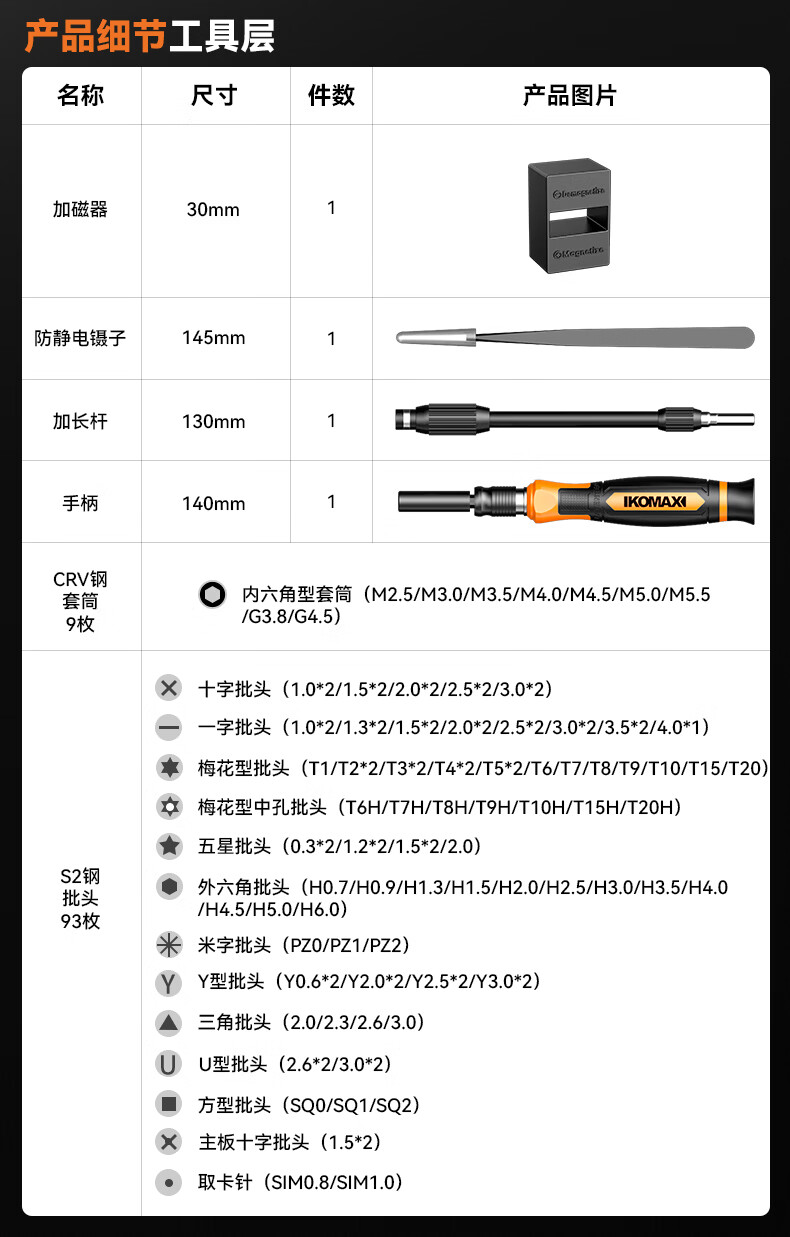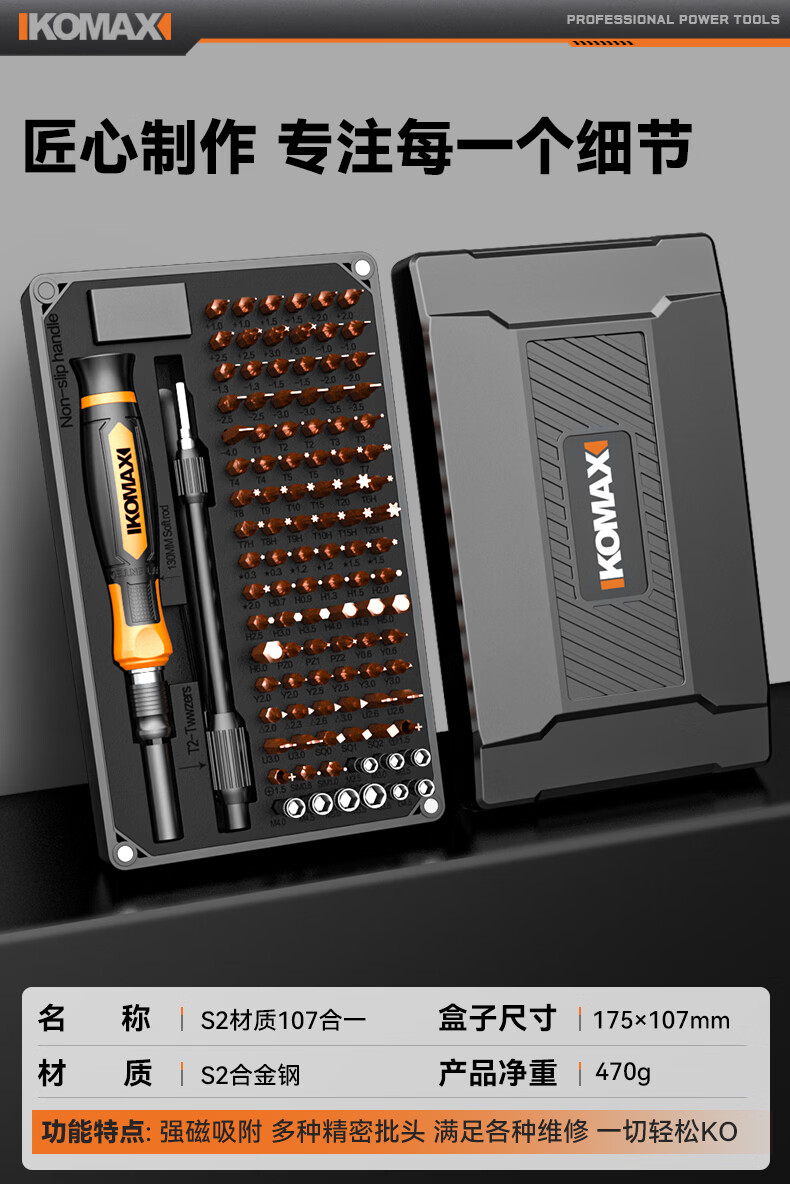 科麦斯(KOMAX)螺丝刀套装107合一笔记本拆机精密十字一字电脑六角梅花多功能 S2材质107合一