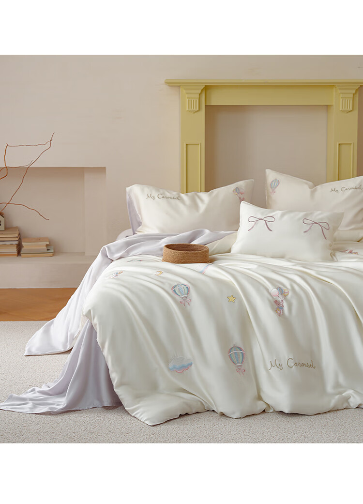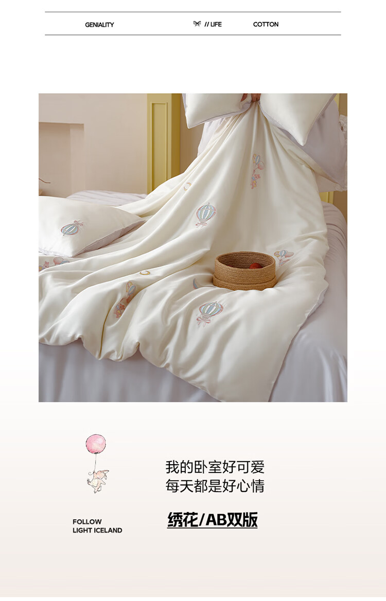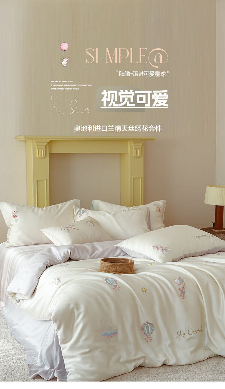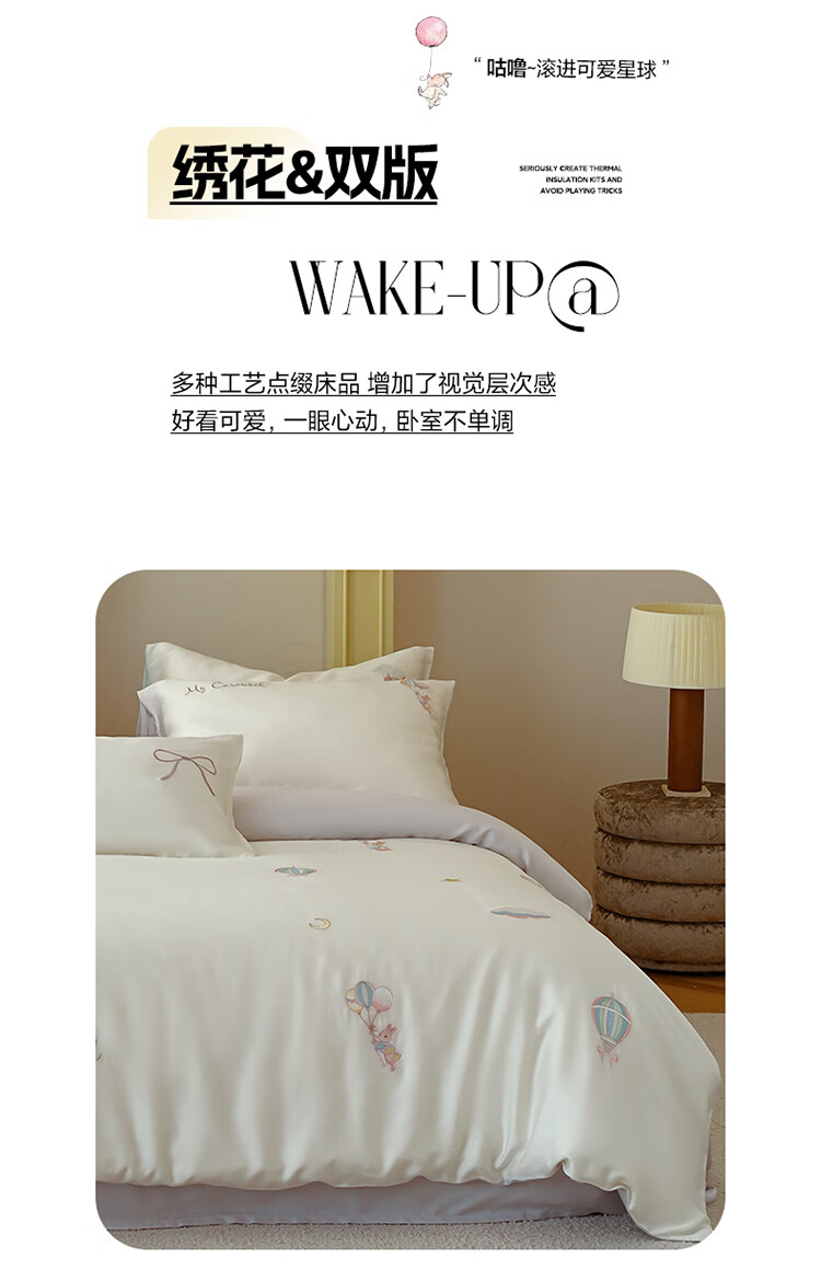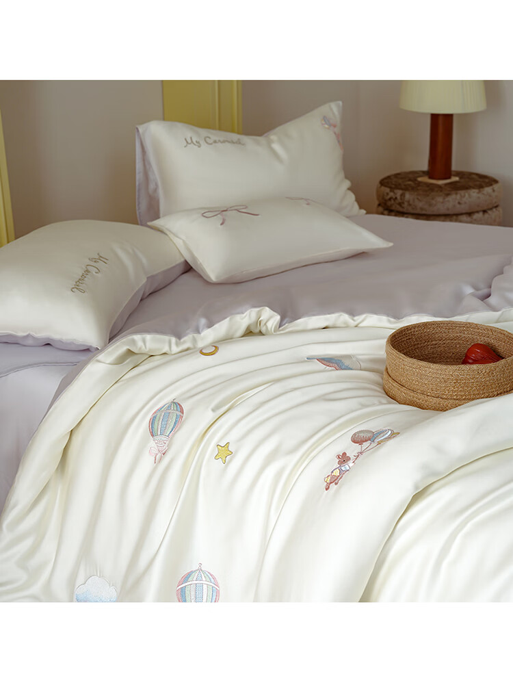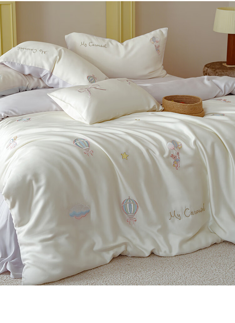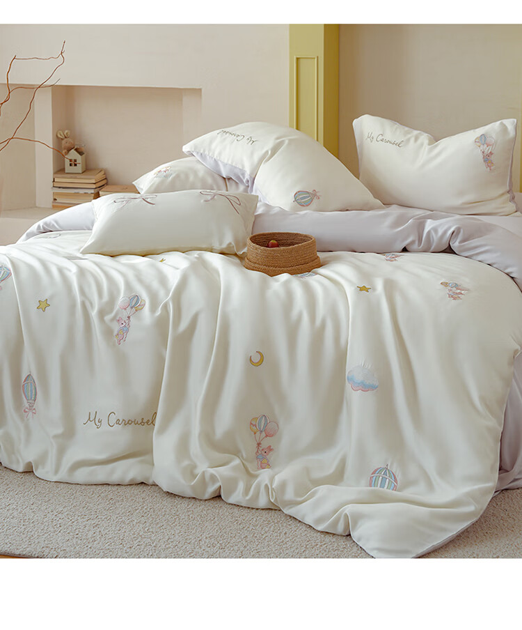ROLAND LIVE兰精天丝四件套夏季透气丝滑刺绣被套床单单双人床凉感床品三件套 JCZY 天丝刺绣套件-萌兔气球 1.2米床 床单款 【被套150*200cm】