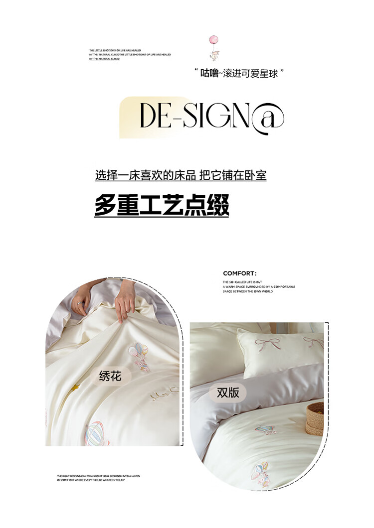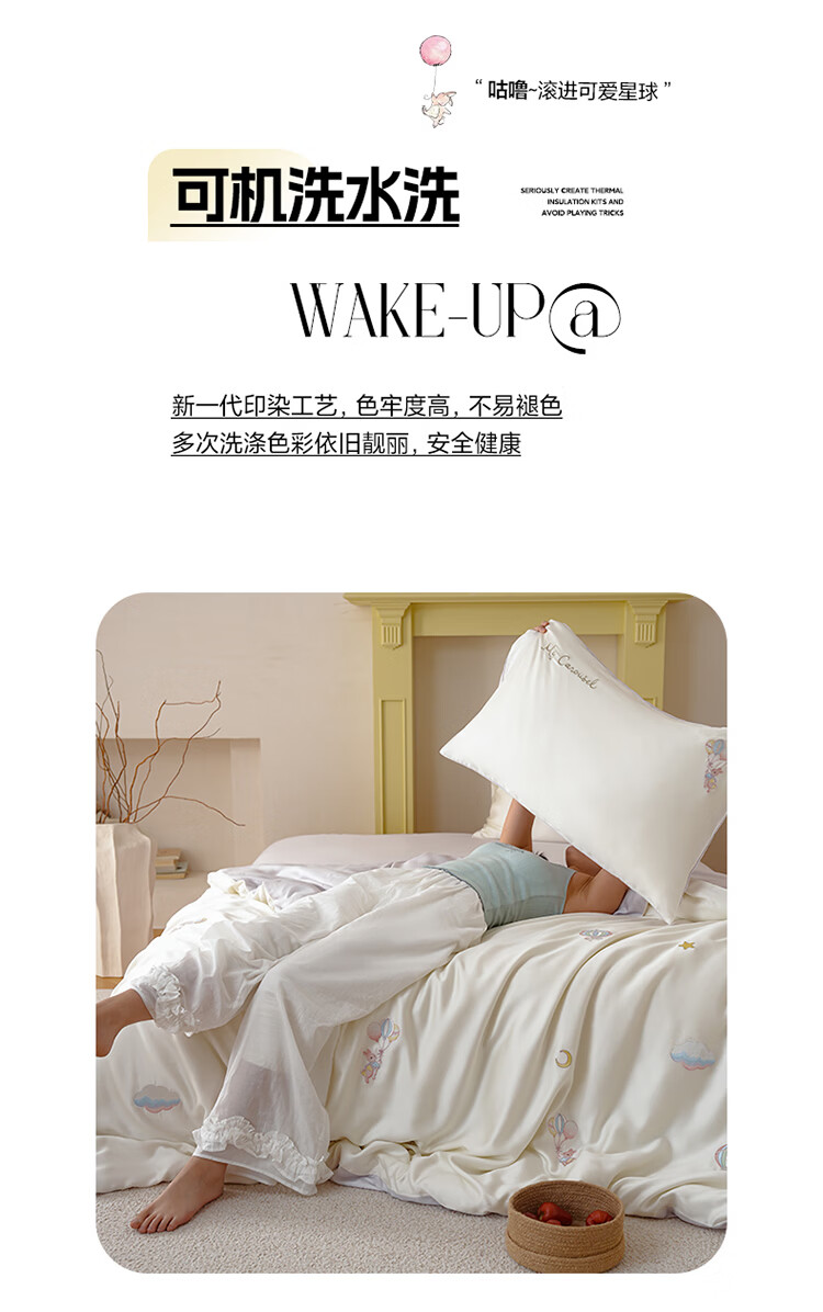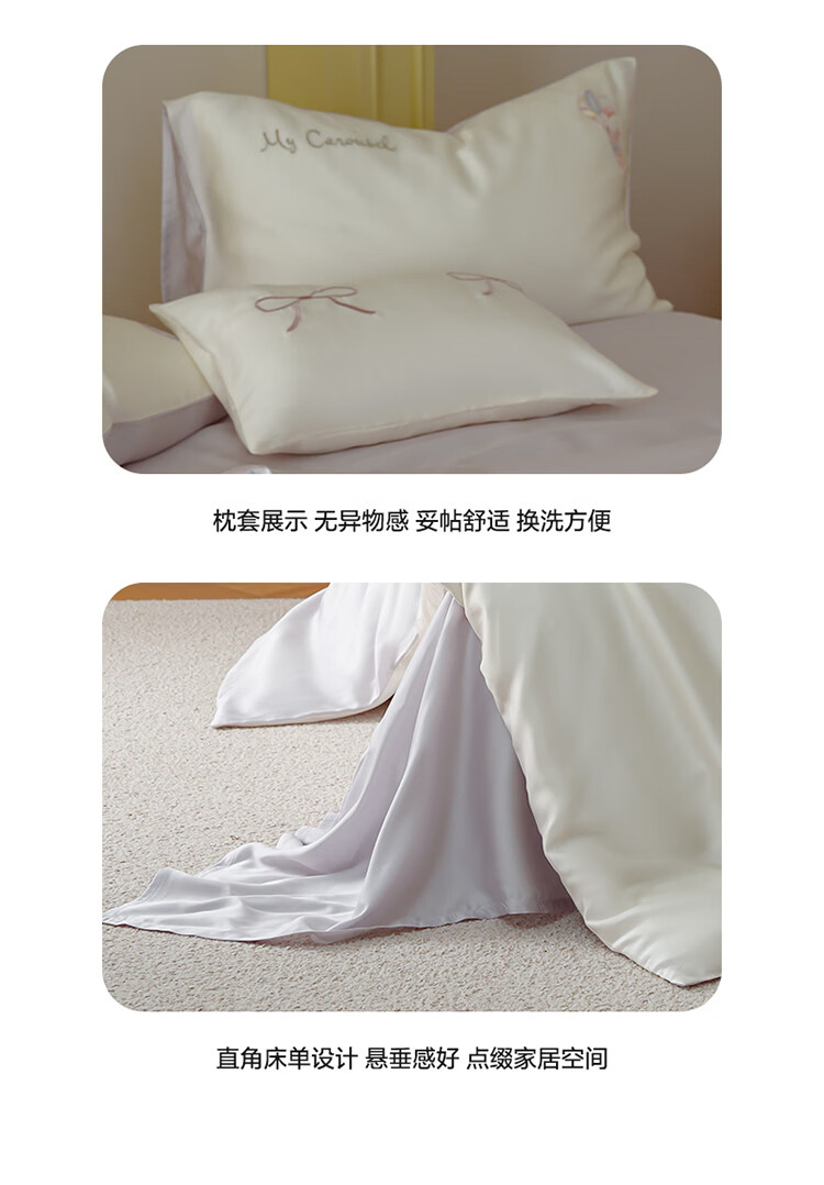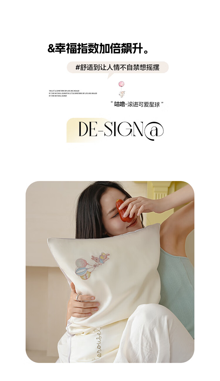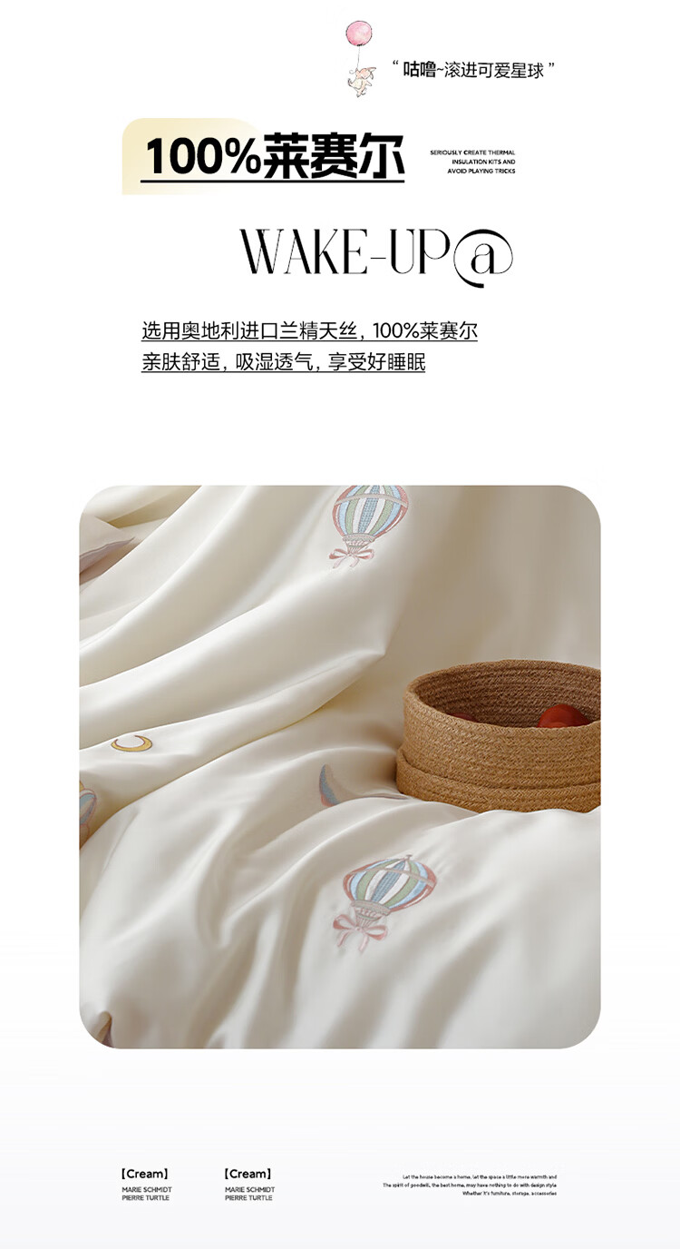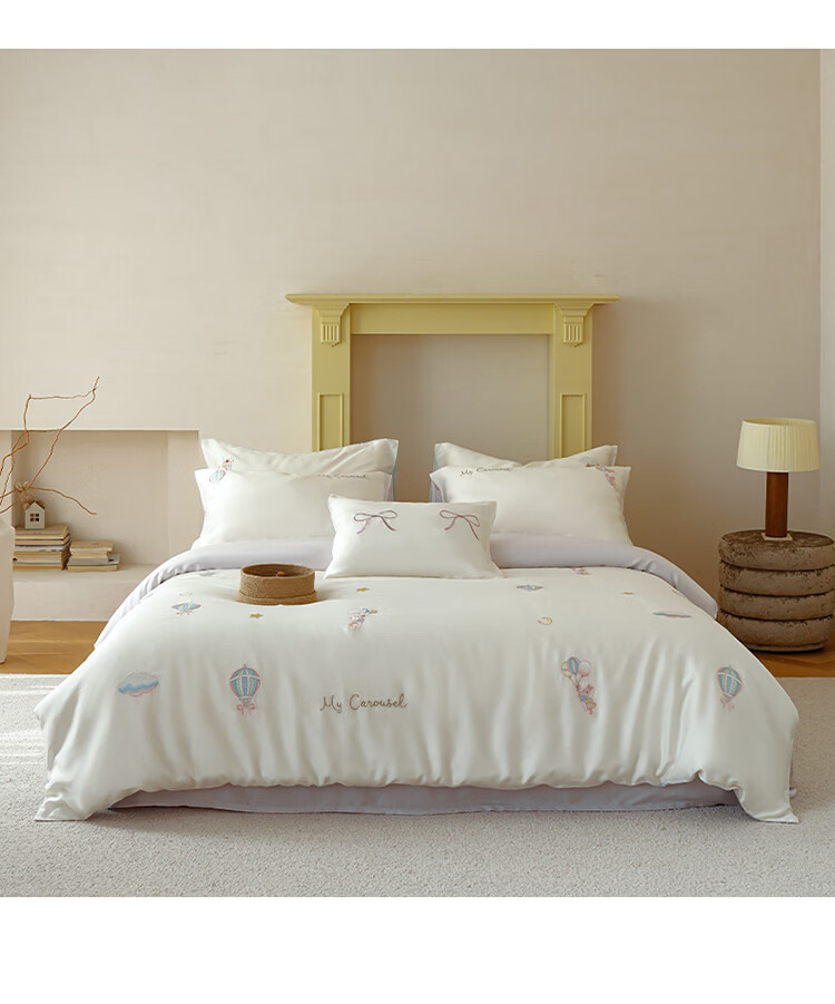 ROLAND LIVE兰精天丝四件套夏季透气丝滑刺绣被套床单单双人床凉感床品三件套 JCZY 天丝刺绣套件-萌兔气球 1.2米床 床单款 【被套150*200cm】