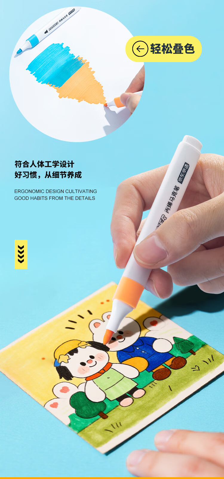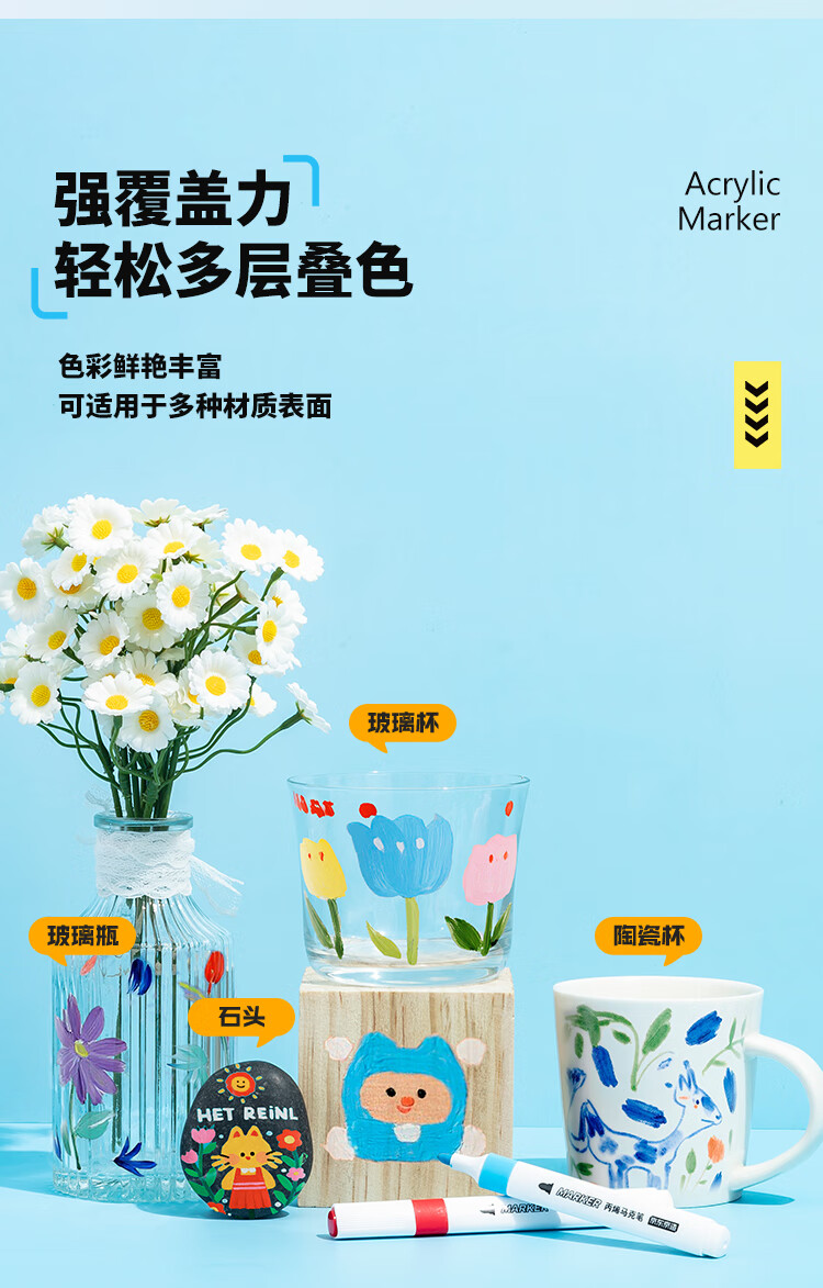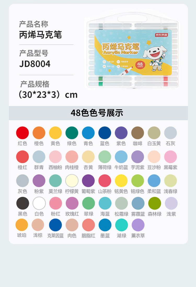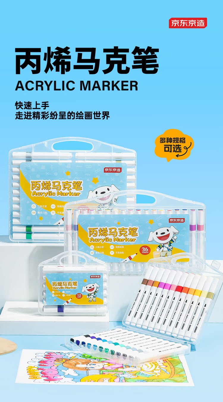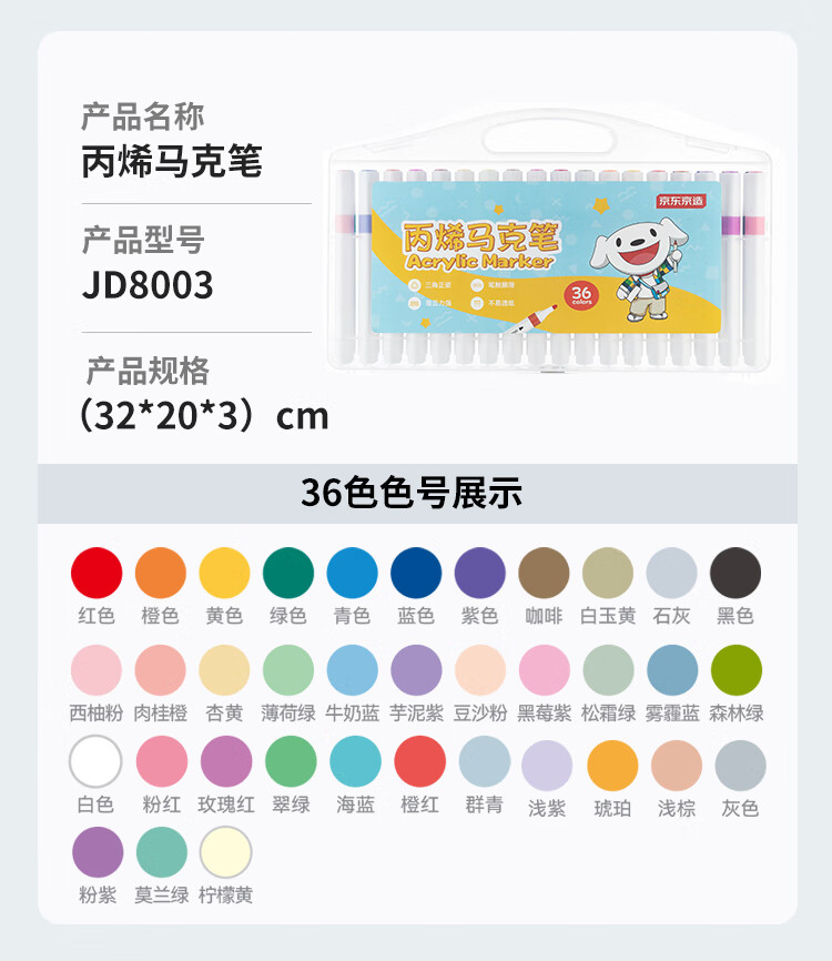 京东京造【热门商品】36色丙烯马克笔 学生速干不透纸不透色 正姿水彩笔 皮肤可水洗PP盒装画笔叠色记号笔