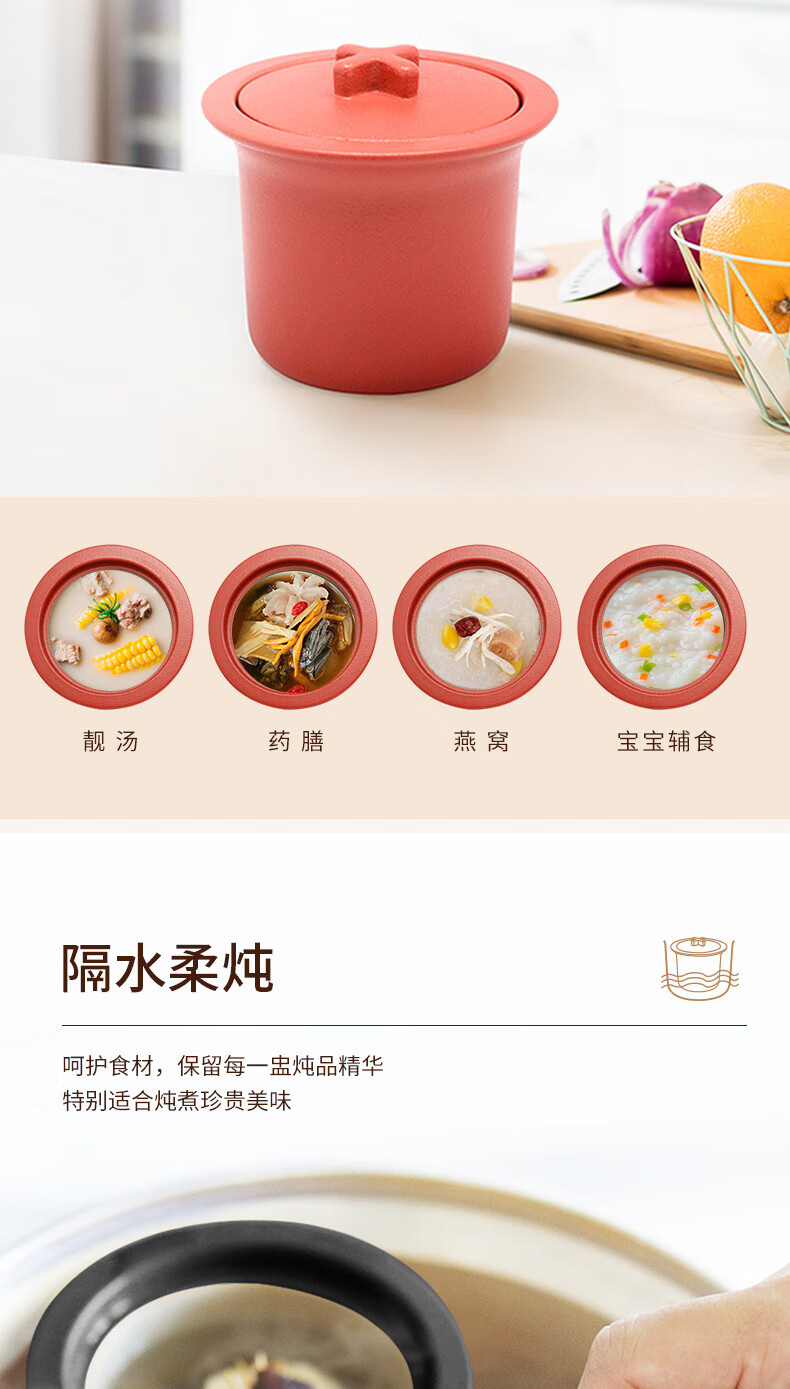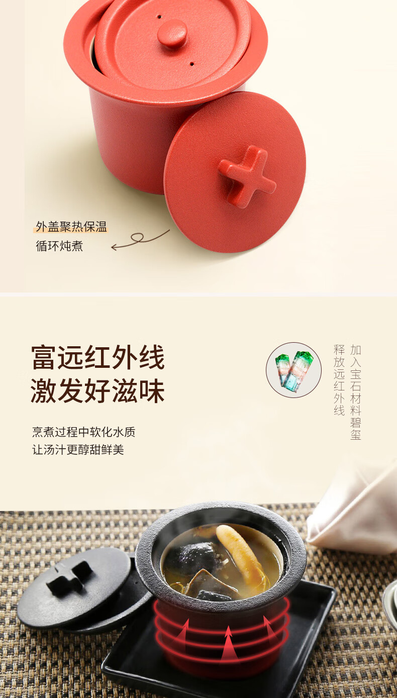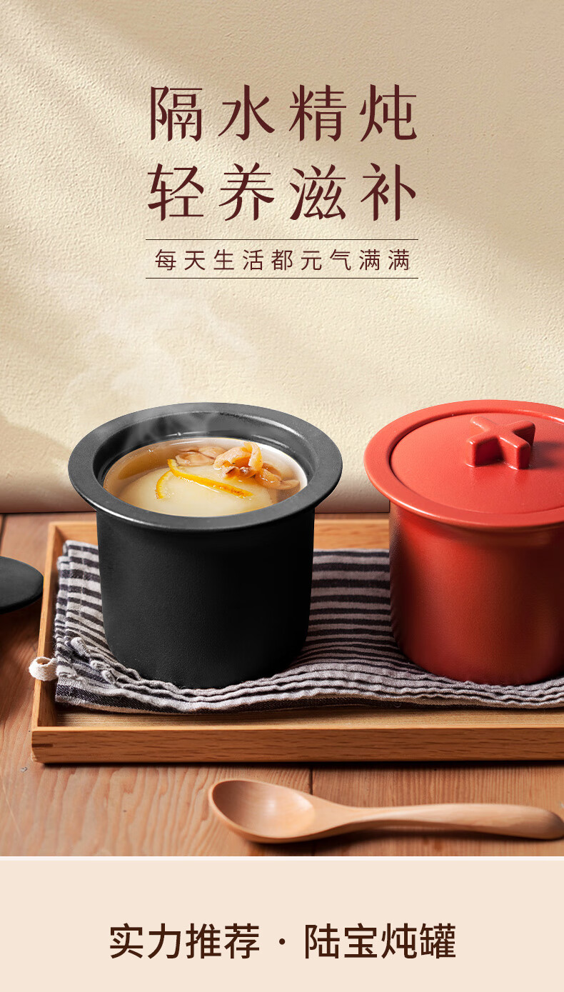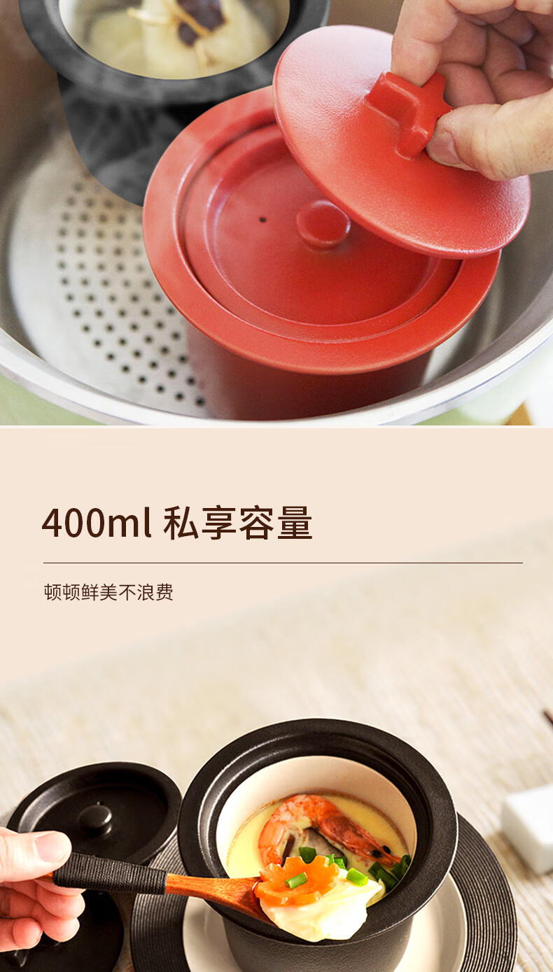 陆宝家用健康陶瓷炖盅隔水带盖十字炖罐400ml 给宝宝蒸蛋煲汤燕窝盅 富贵红 400ml