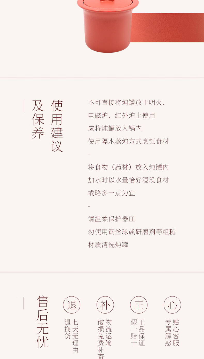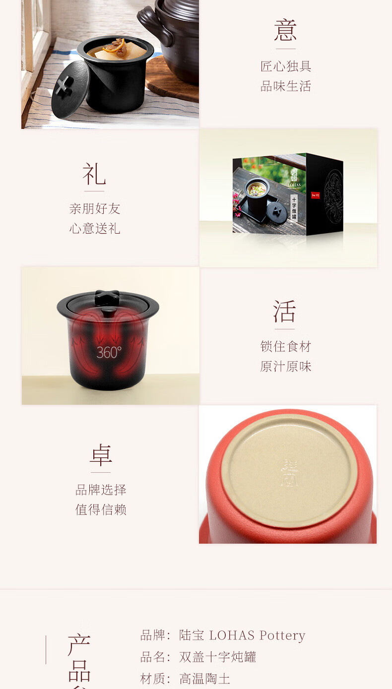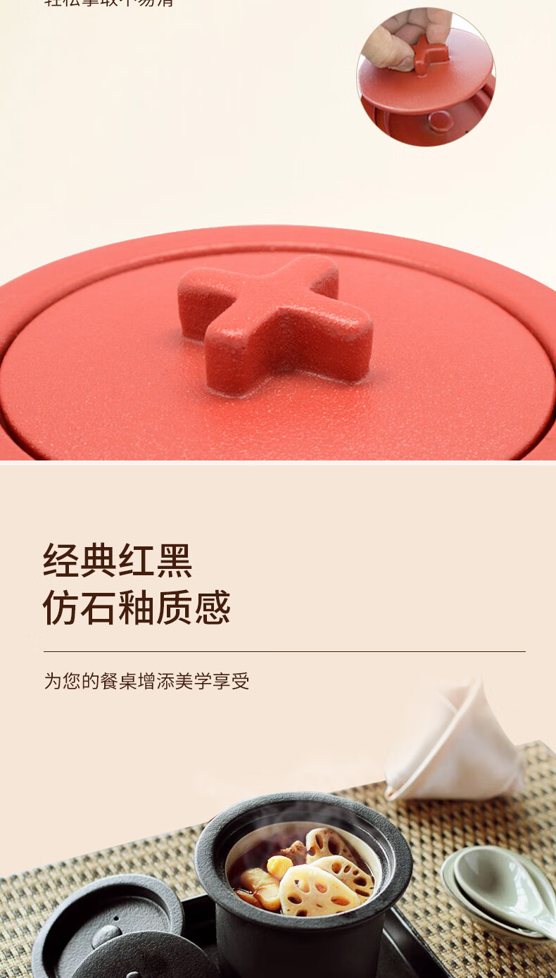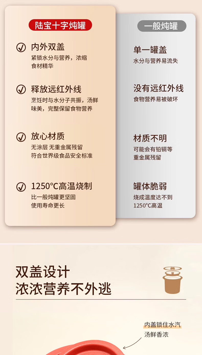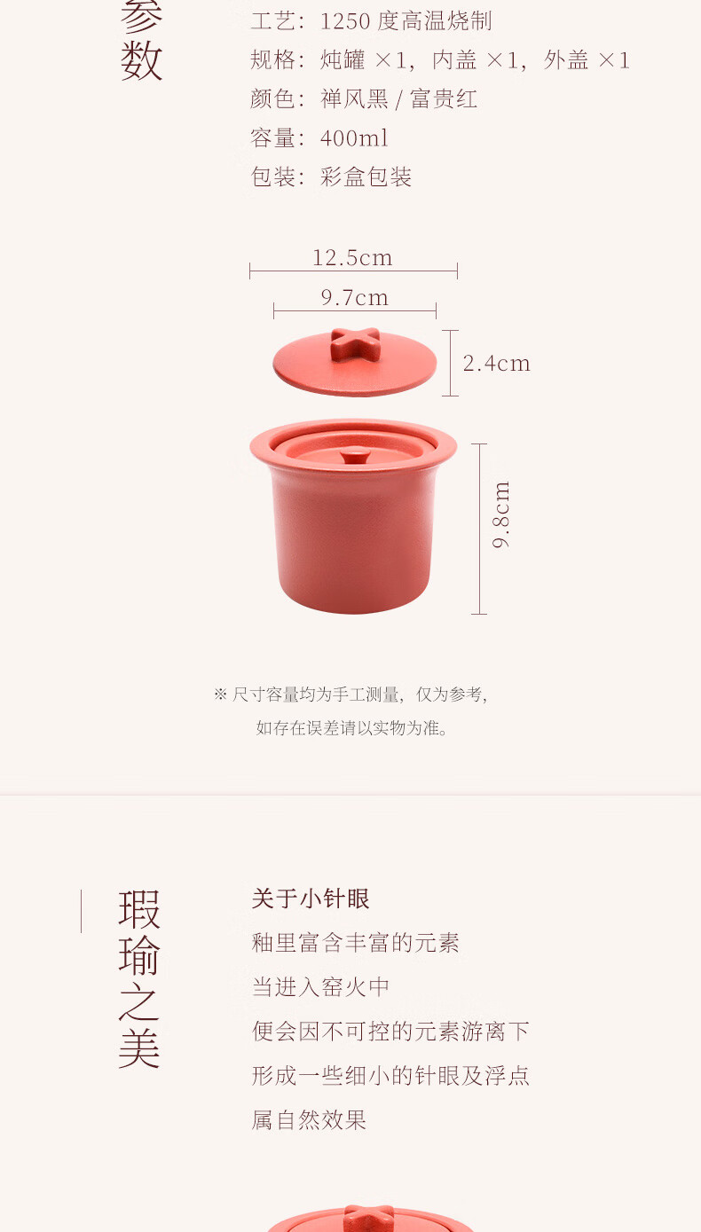陆宝家用健康陶瓷炖盅隔水带盖十字炖罐400ml 给宝宝蒸蛋煲汤燕窝盅 富贵红 400ml