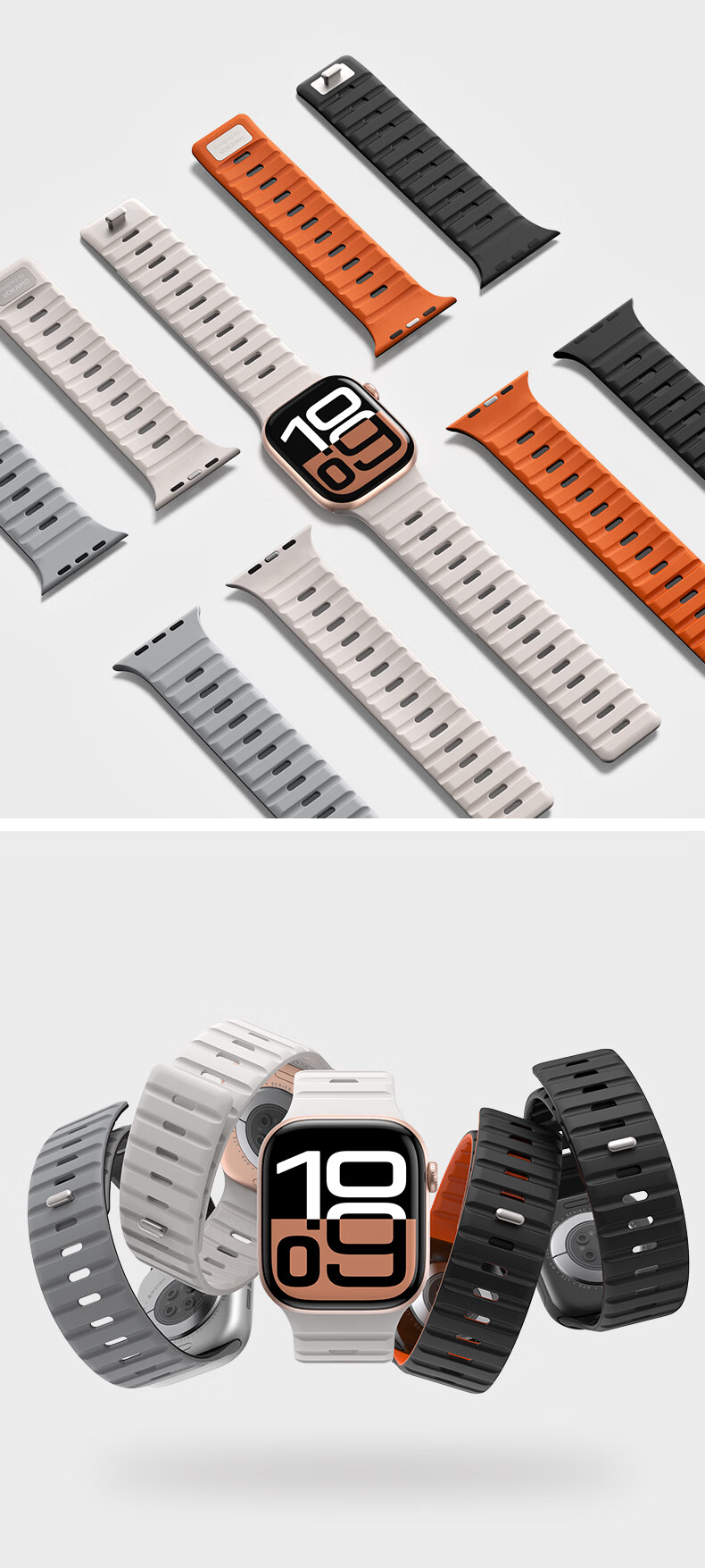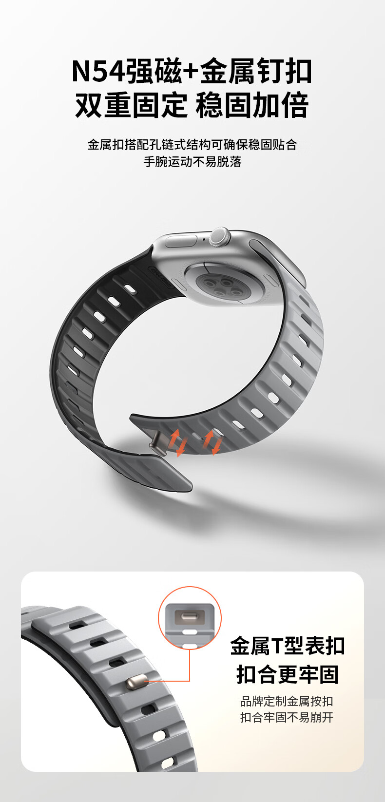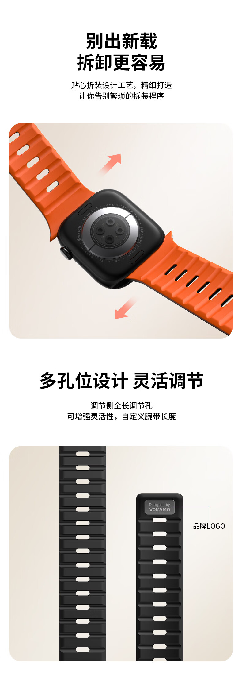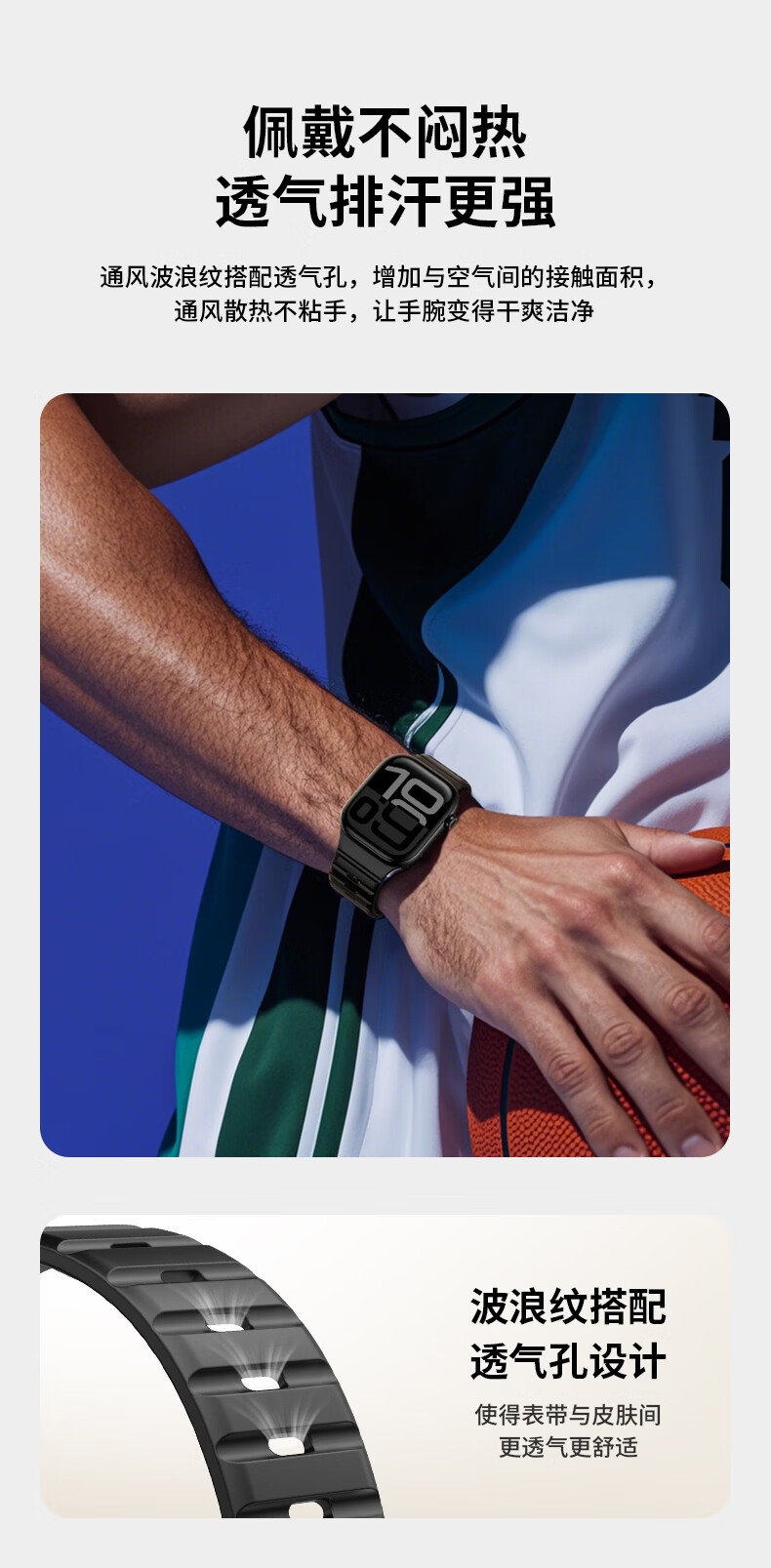 VOKAMO沃咔曼适用Apple watch S11/10/9硅胶磁吸表带透气金属卡扣iwatch Ultra3/2苹果手表腕带夏日运动 黑色 44/45/46/49MM