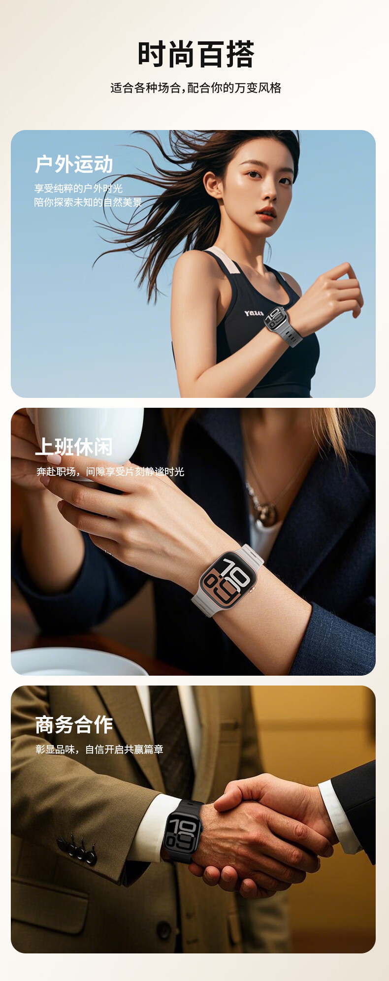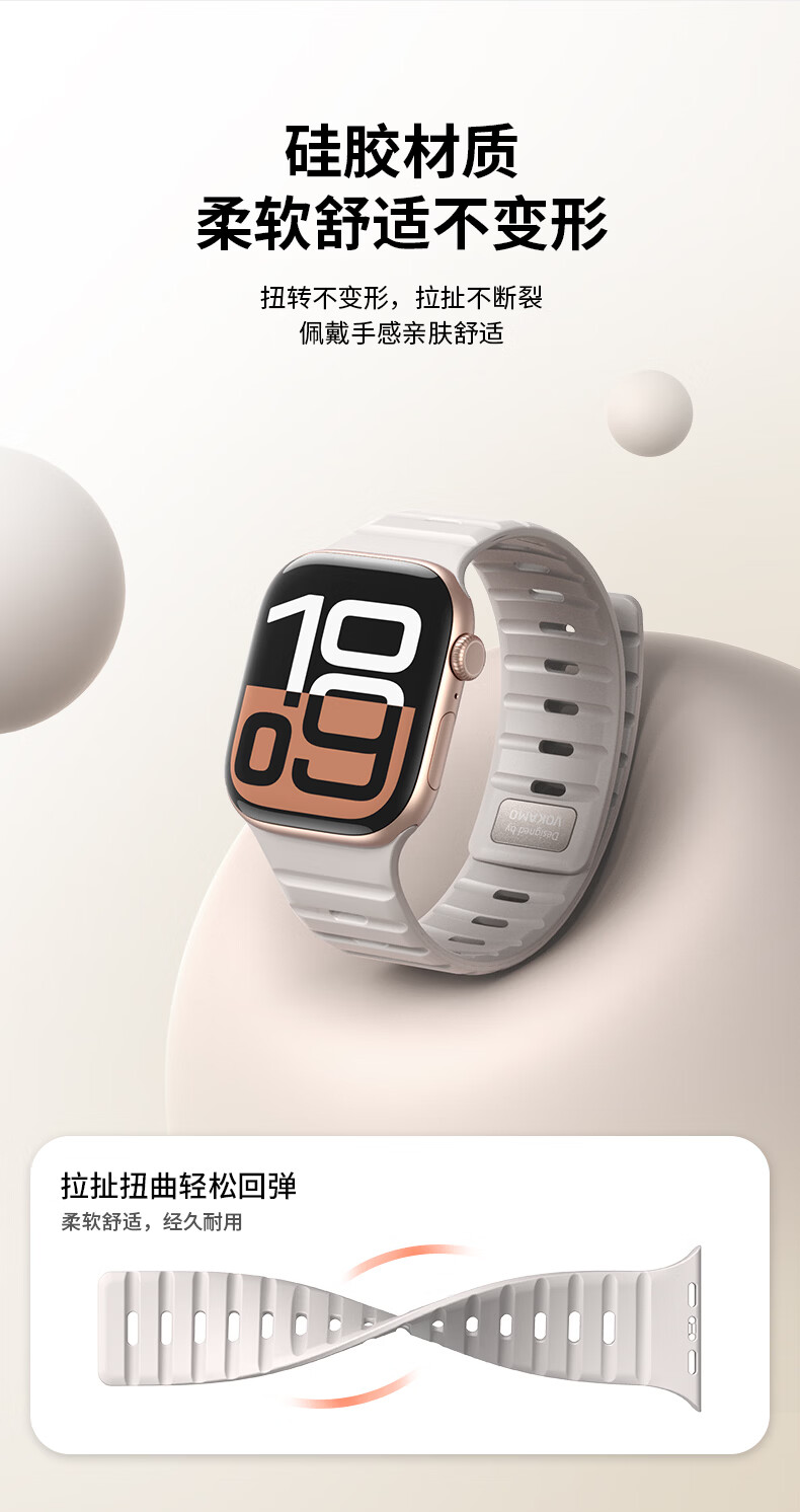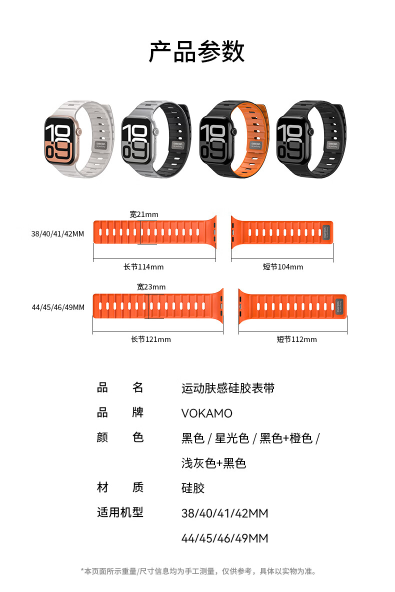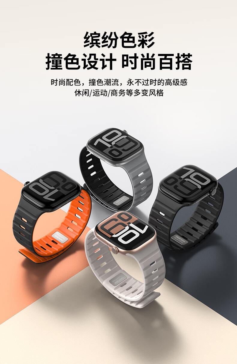 VOKAMO沃咔曼适用Apple watch S11/10/9硅胶磁吸表带透气金属卡扣iwatch Ultra3/2苹果手表腕带夏日运动 黑色 44/45/46/49MM