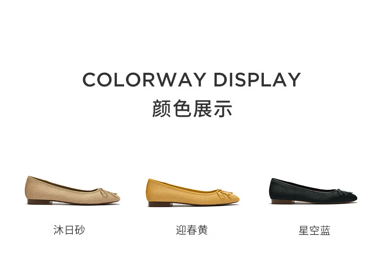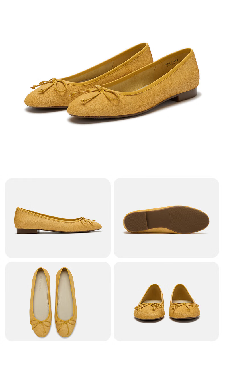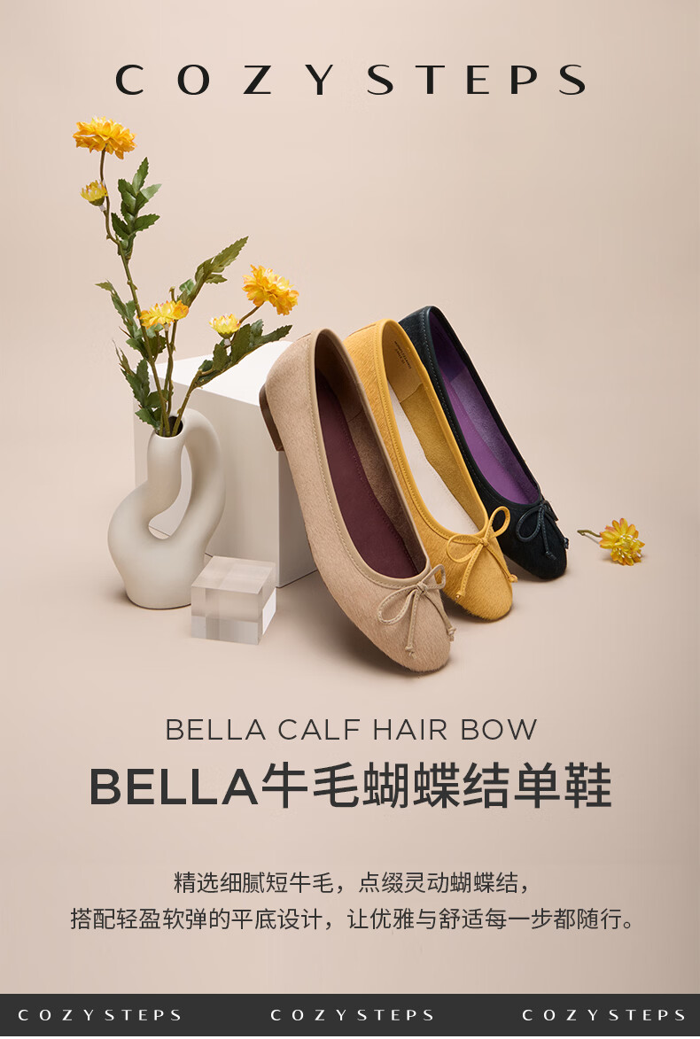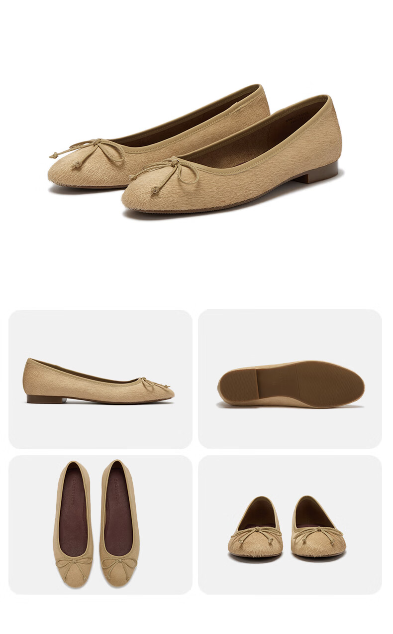 COZY STEPS可至女士26春夏新款牛毛蝴蝶结薄底圆头浅口芭蕾单鞋女 沐日砂 35