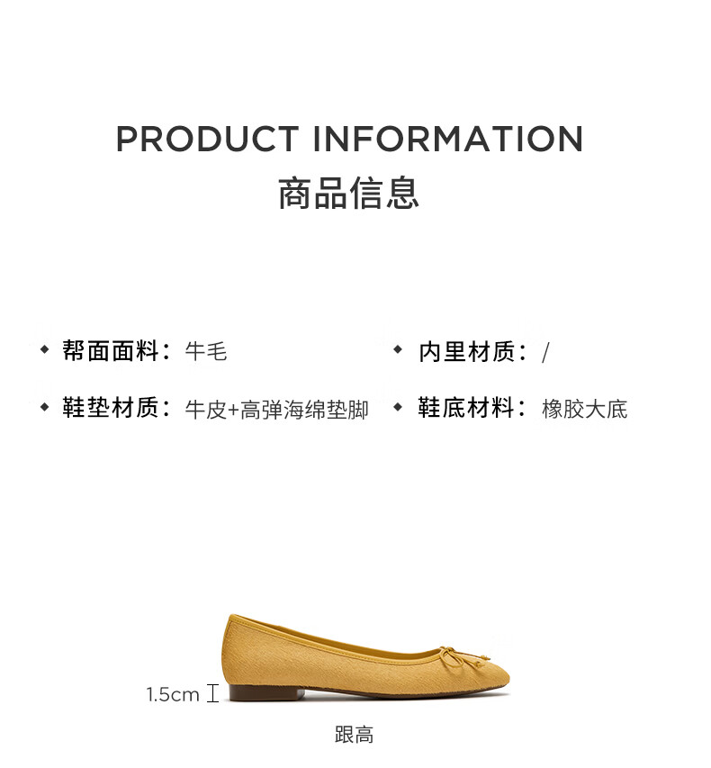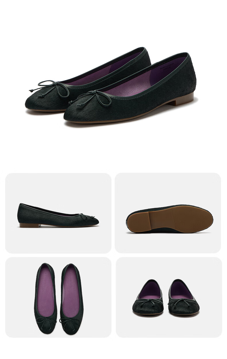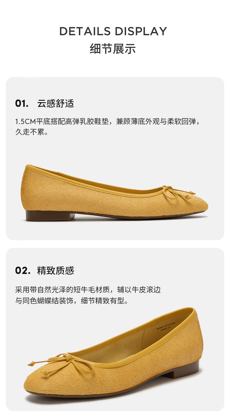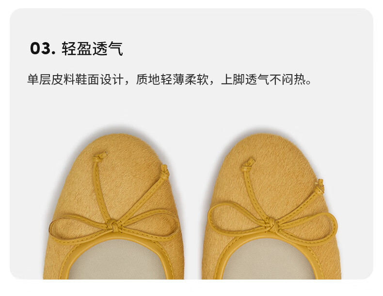 COZY STEPS可至女士26春夏新款牛毛蝴蝶结薄底圆头浅口芭蕾单鞋女 沐日砂 35
