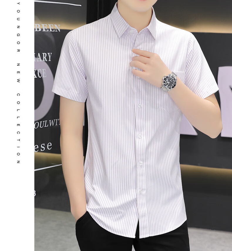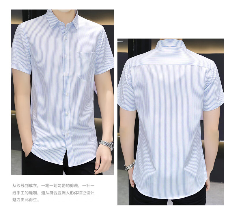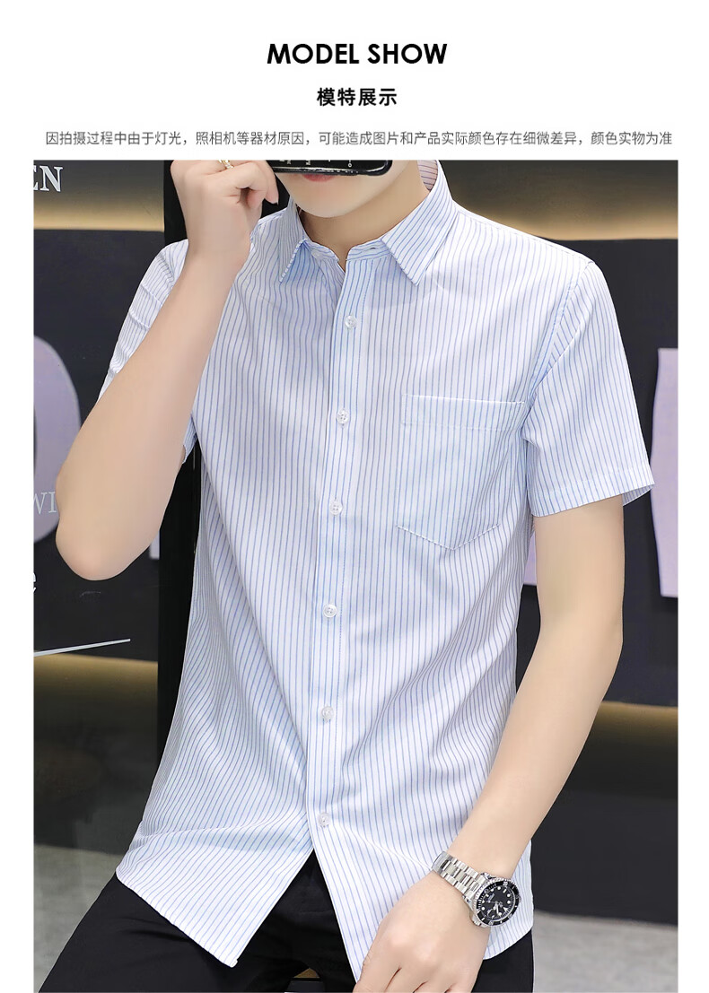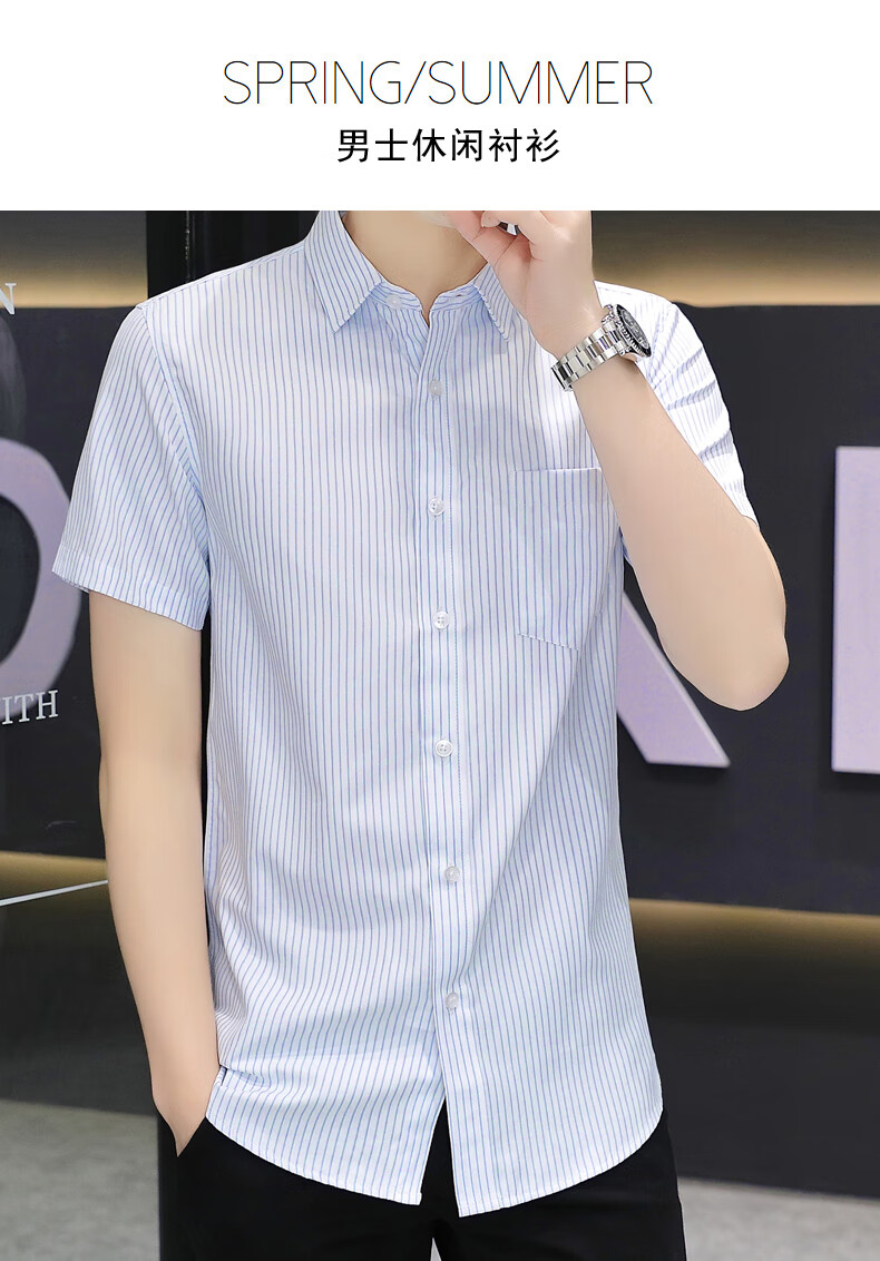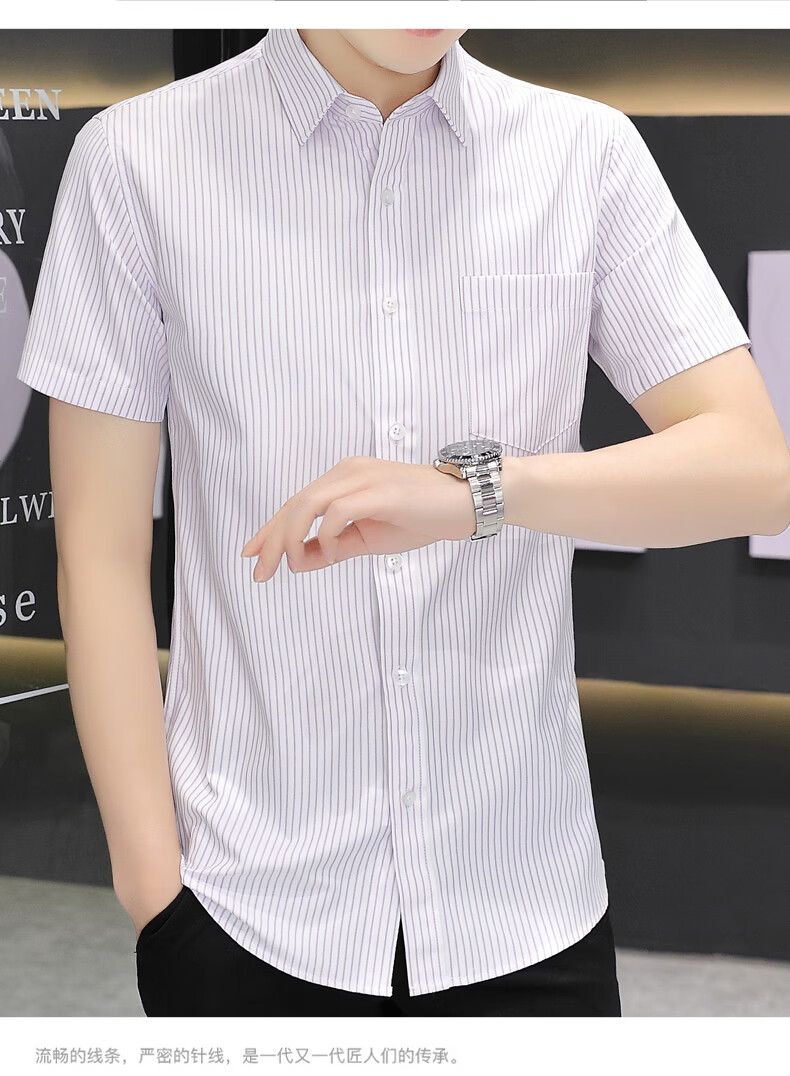 皮尔卡丹(pierre cardin)小条纹短袖衬衫男士夏季薄款免烫正装衬衣商务休闲有口袋百搭衬衣 816黑色 5XL 174-190斤