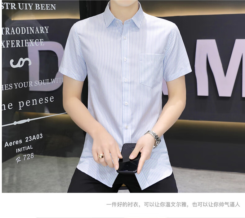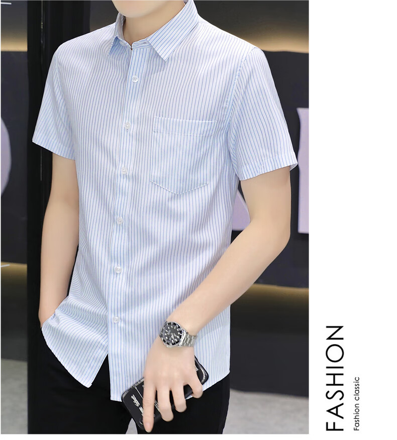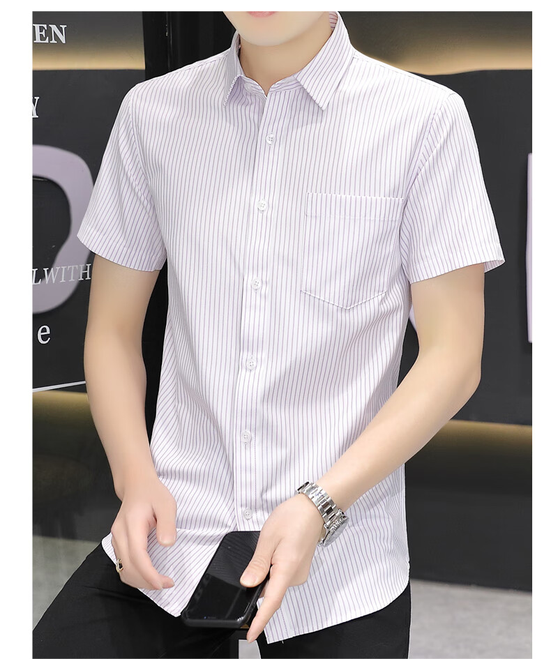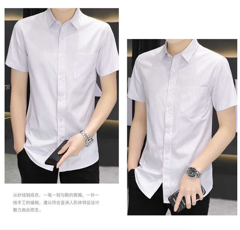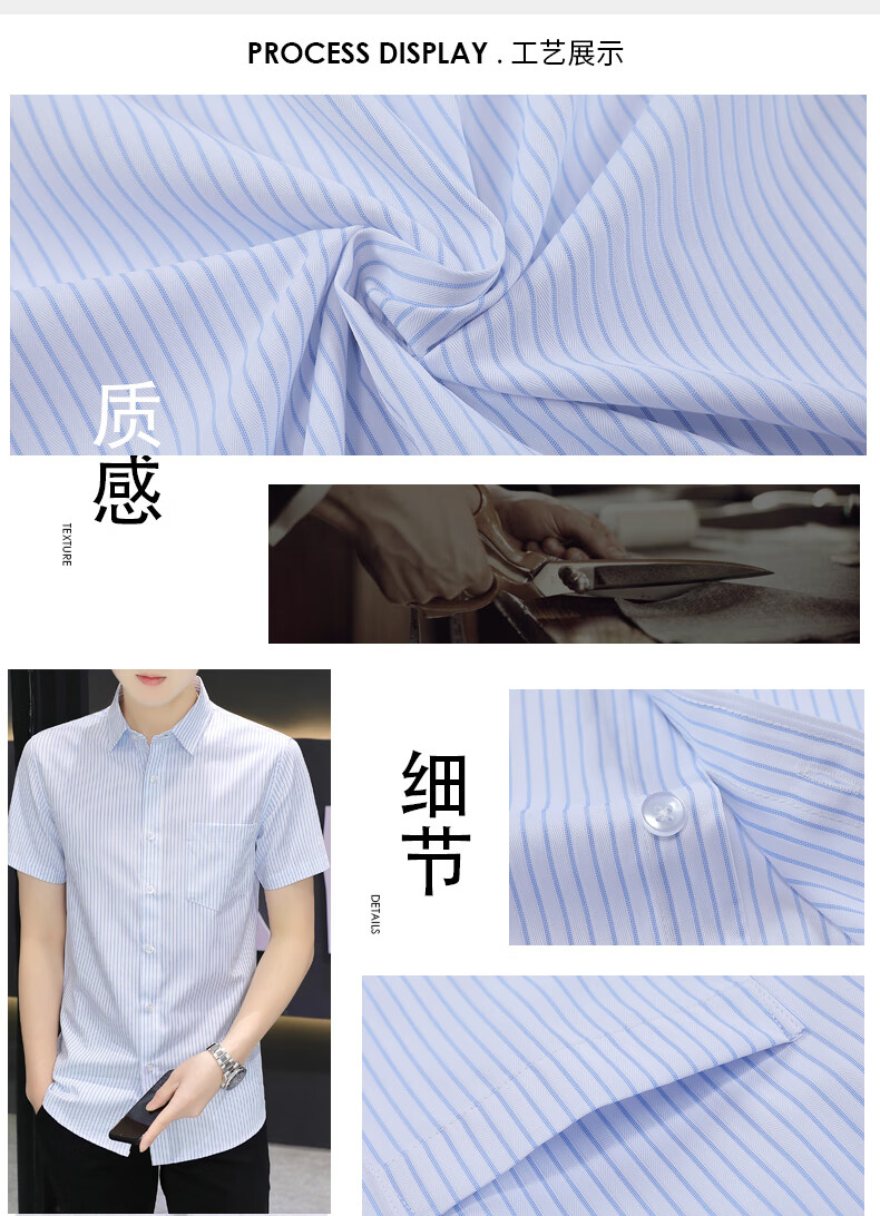 皮尔卡丹(pierre cardin)小条纹短袖衬衫男士夏季薄款免烫正装衬衣商务休闲有口袋百搭衬衣 816黑色 5XL 174-190斤