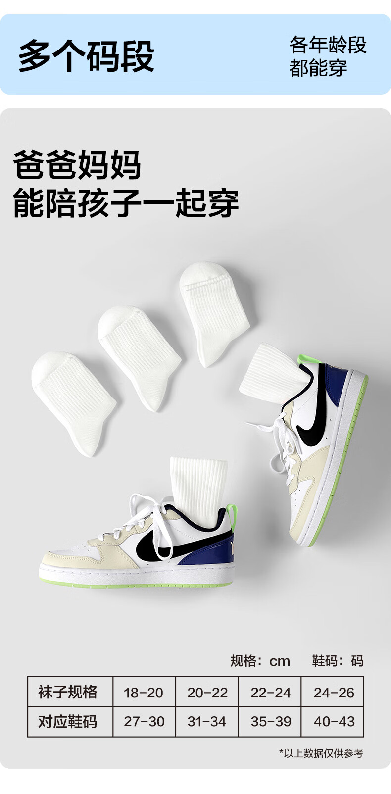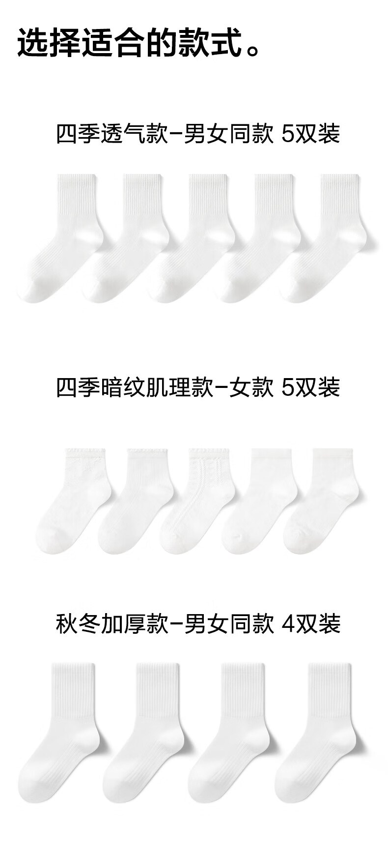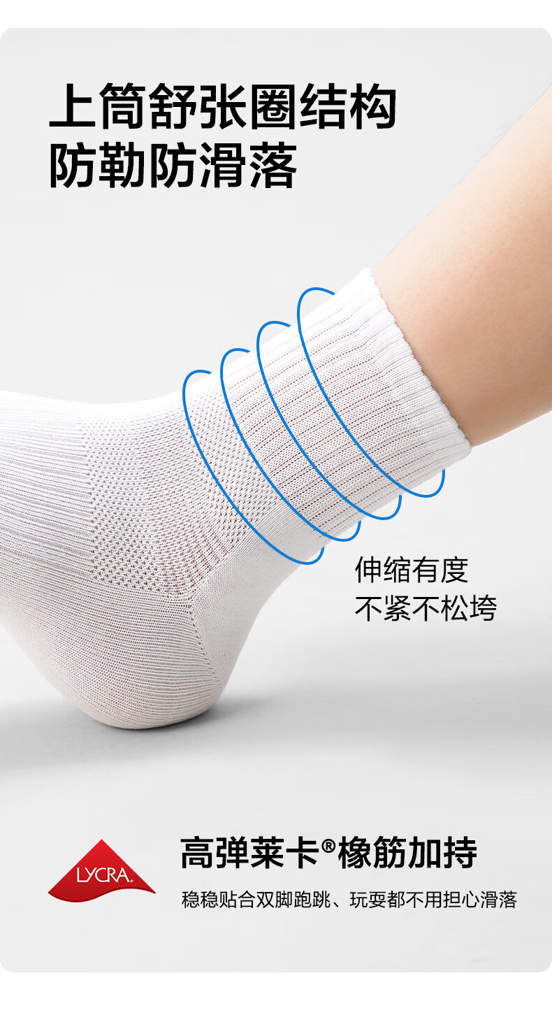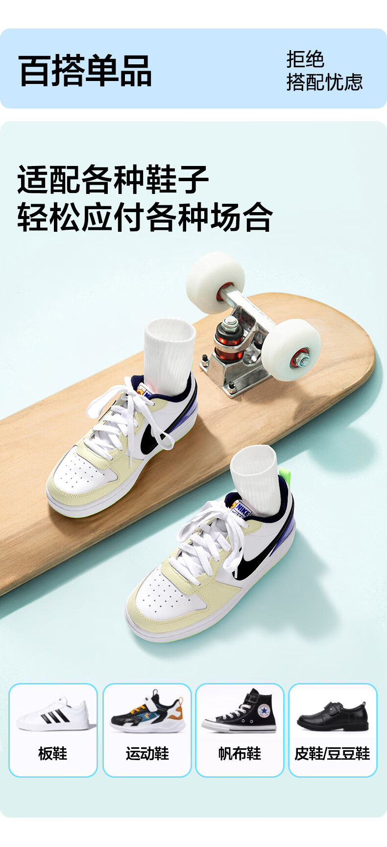 京东京造儿童春夏男童女童袜子中小学棉袜校园四季白袜5双22-24cm
