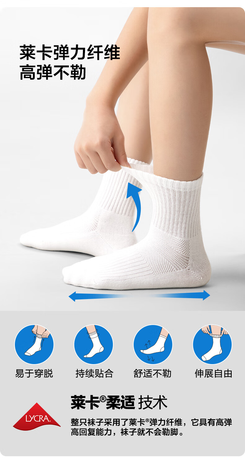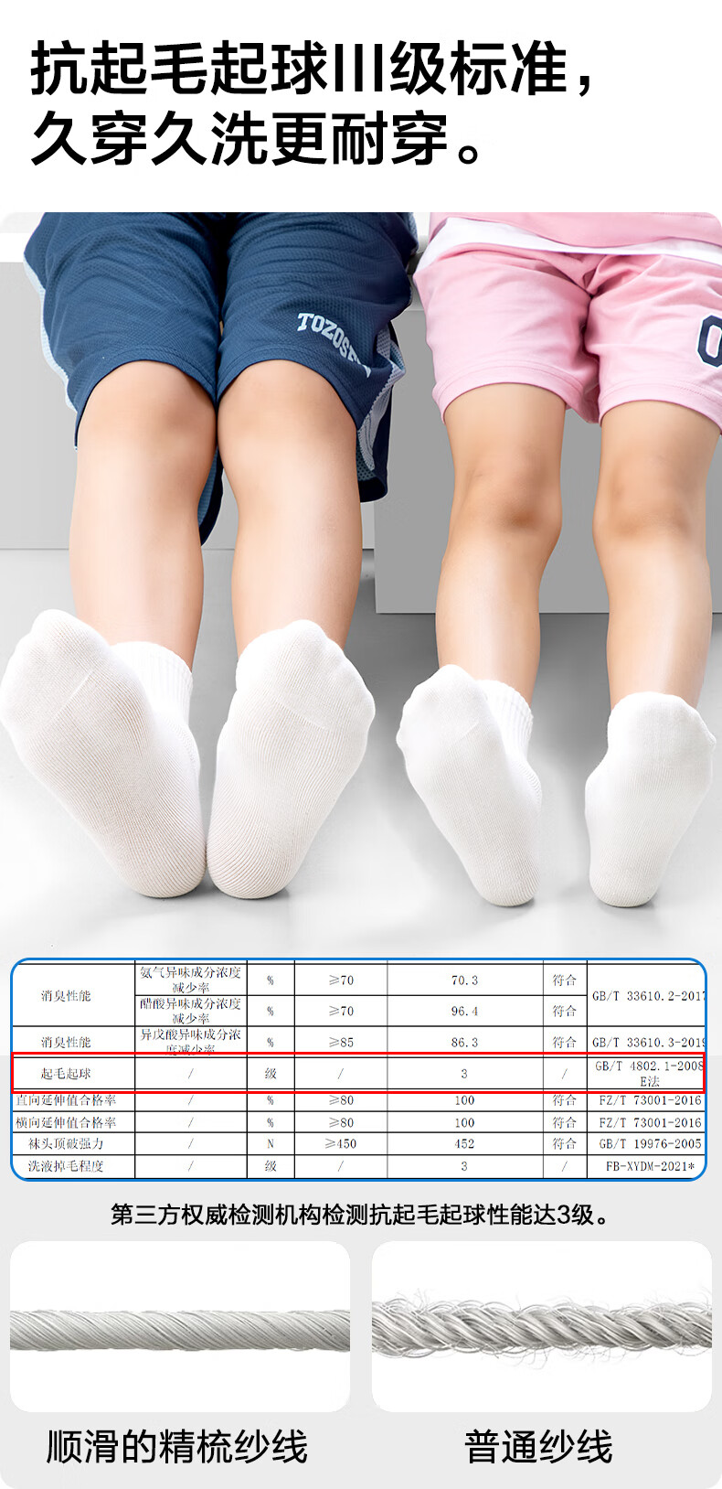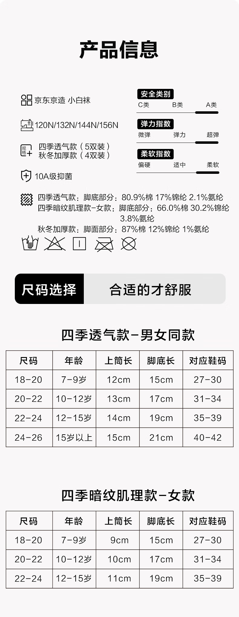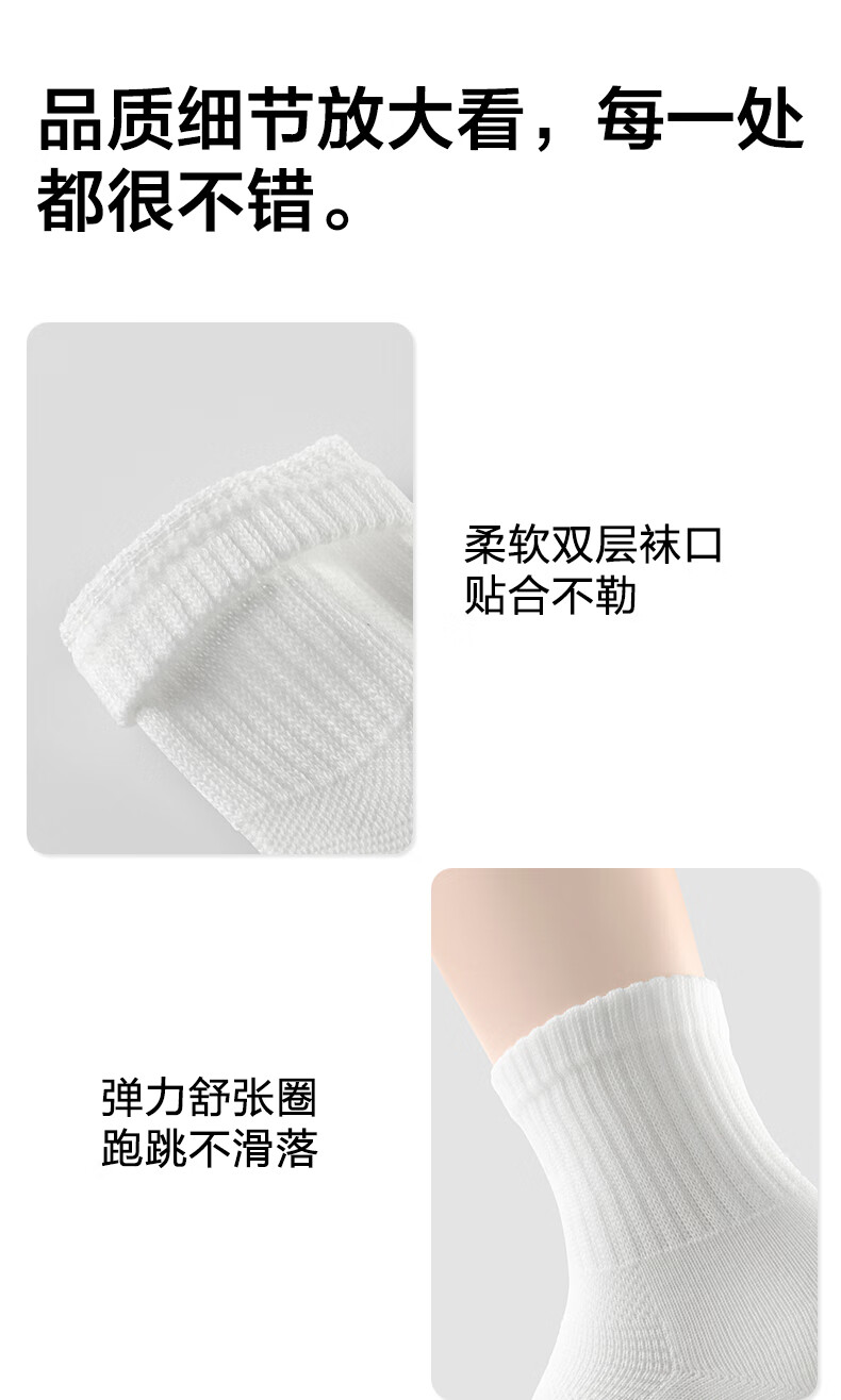 京东京造儿童春夏男童女童袜子中小学棉袜校园四季白袜5双22-24cm