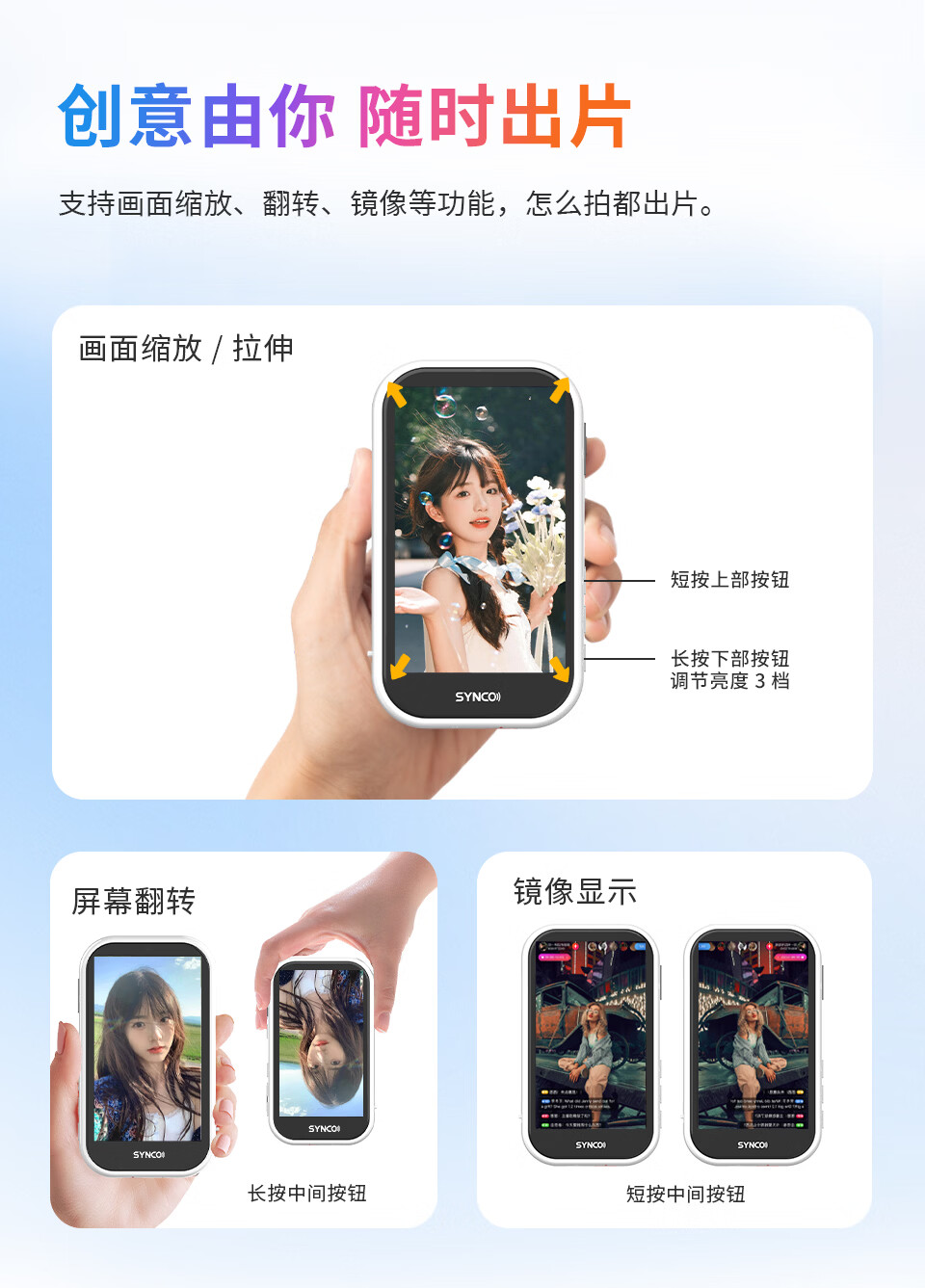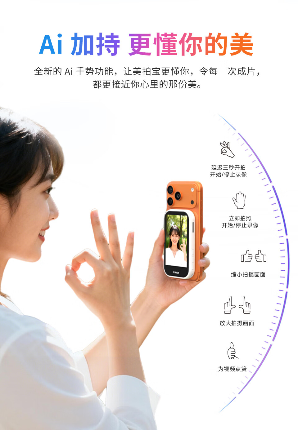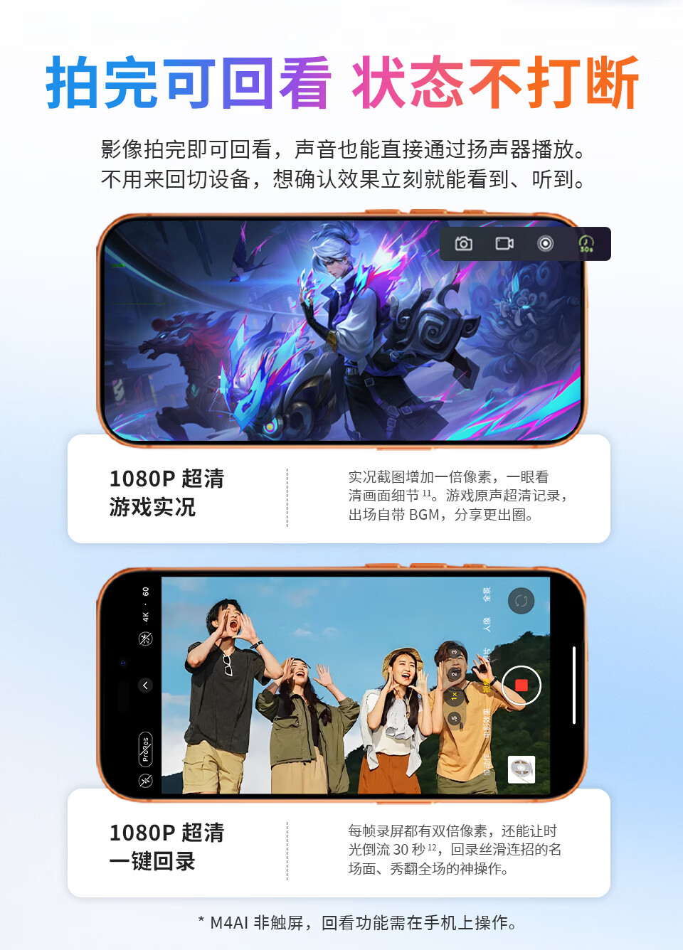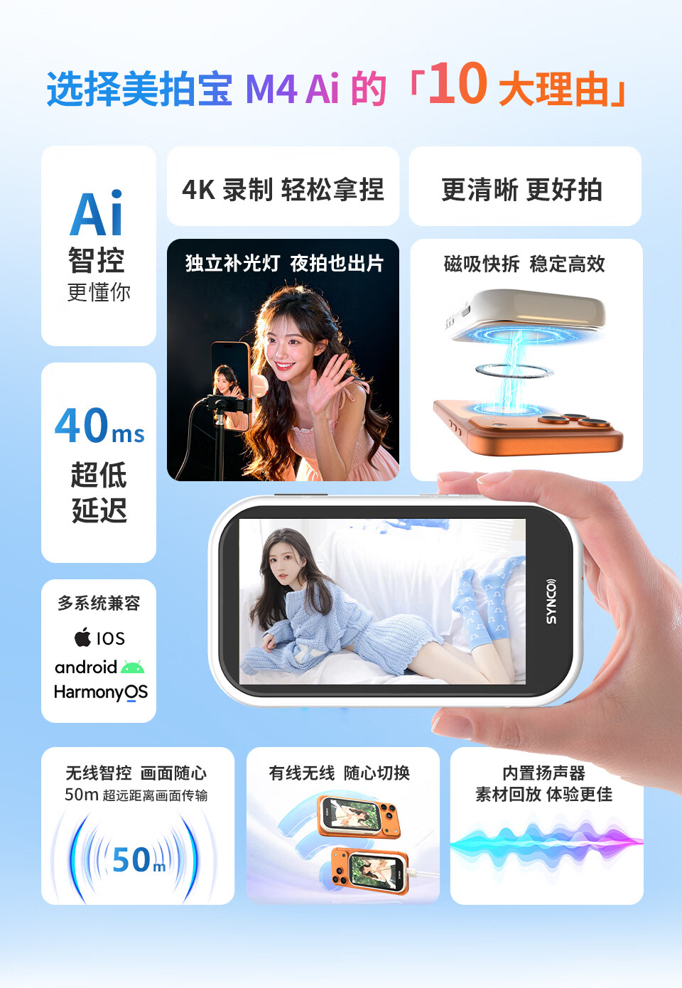 声刻M4AI美拍宝手机自拍显示屏后置无线投屏器便携磁吸器直播vlog提词器拍照辅助神器监视器副屏幕 轻奢粉M4AI手势拍照丨智能补光灯丨后置高清