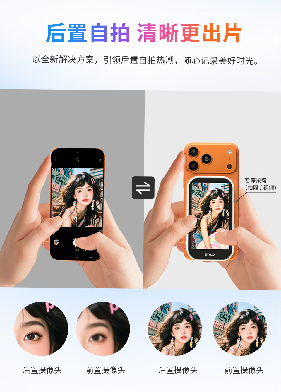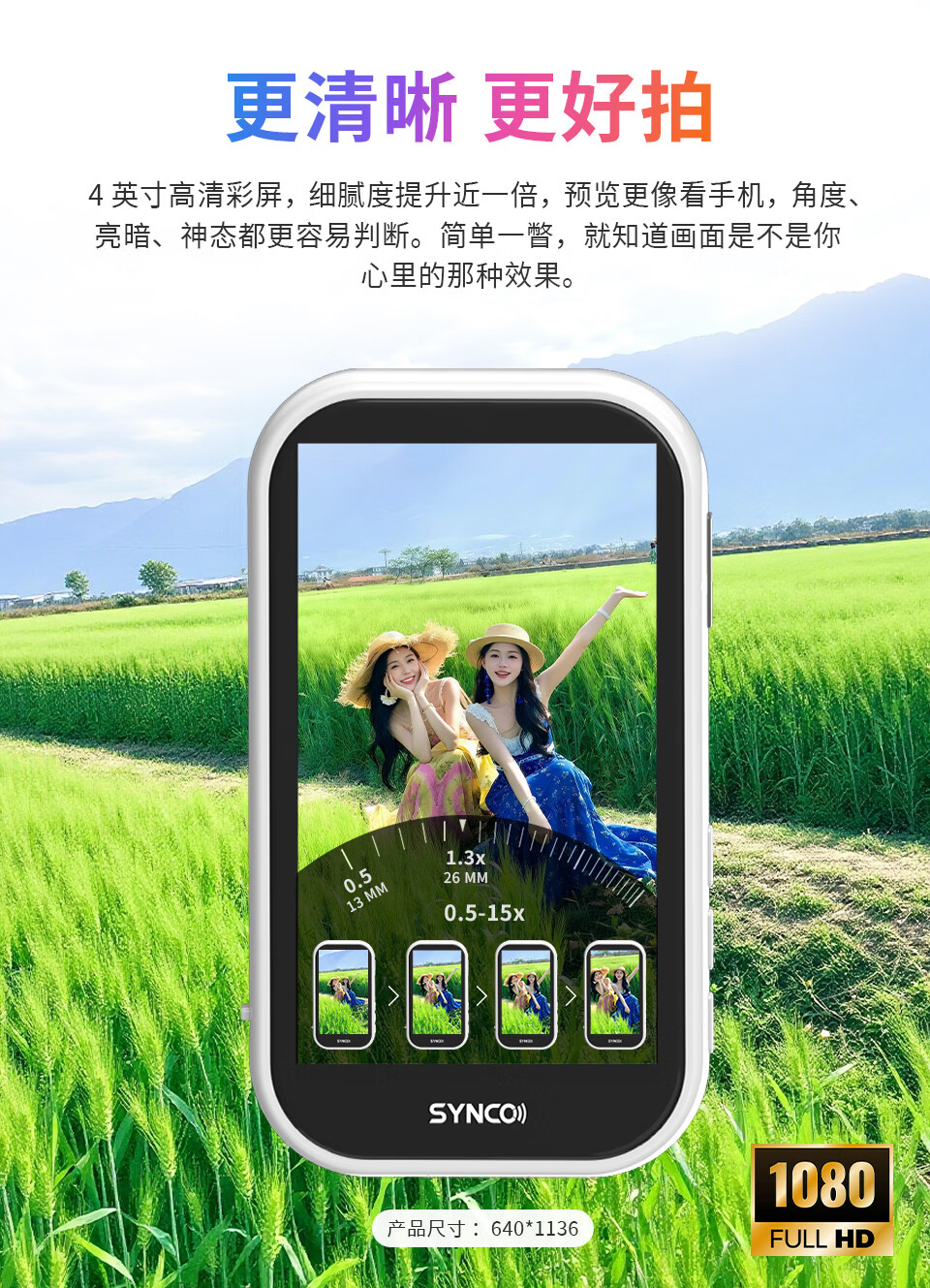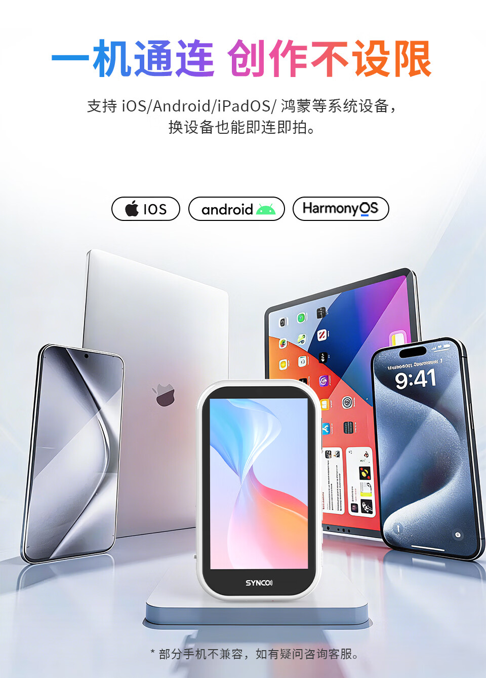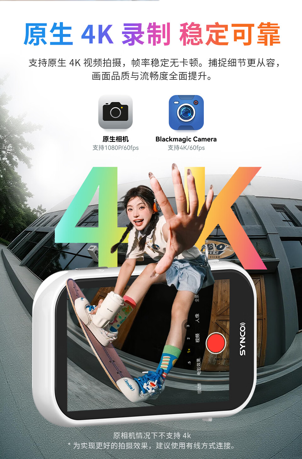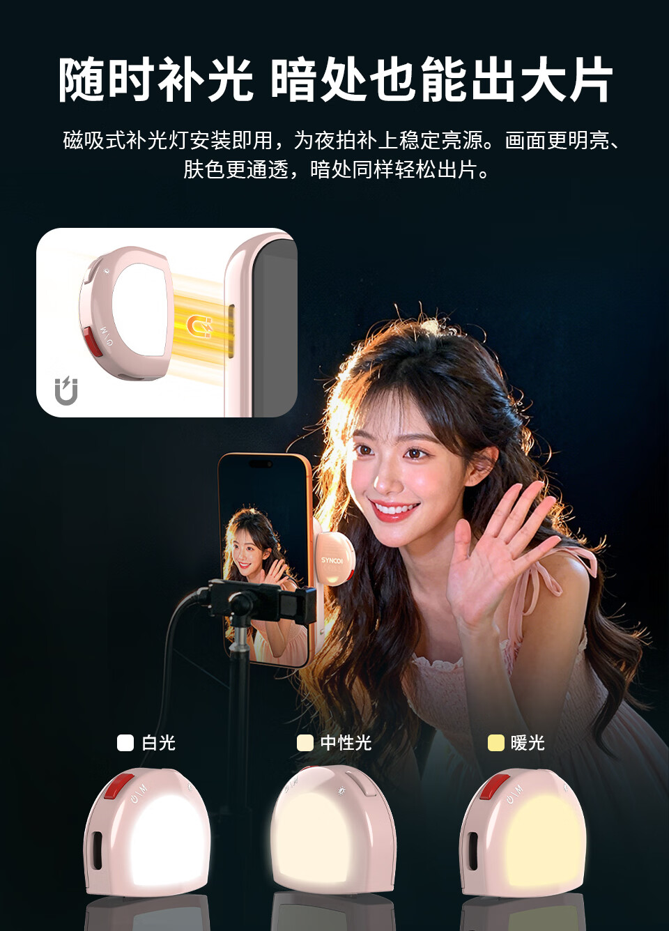 声刻M4AI美拍宝手机自拍显示屏后置无线投屏器便携磁吸器直播vlog提词器拍照辅助神器监视器副屏幕 轻奢粉M4AI手势拍照丨智能补光灯丨后置高清