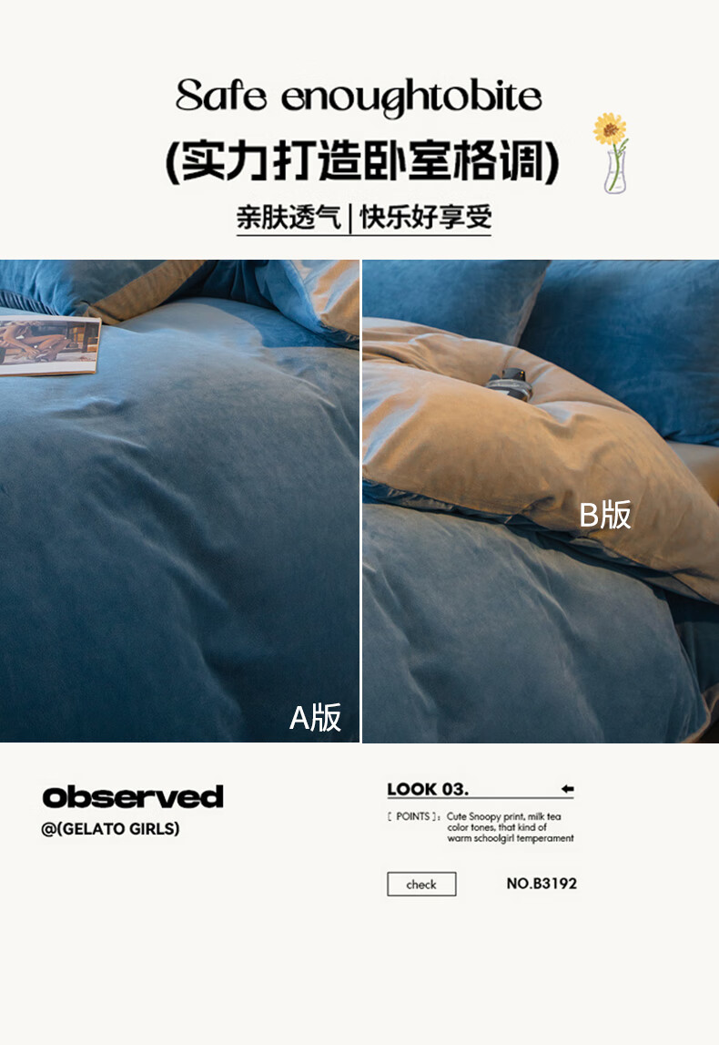 VJE小清新牛奶绒四件套冬季双面绒抗静电床单被套学生宿舍三件套床品 背带兔 三件套1.2m 床单款 -被套150*200cm