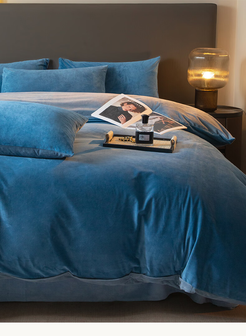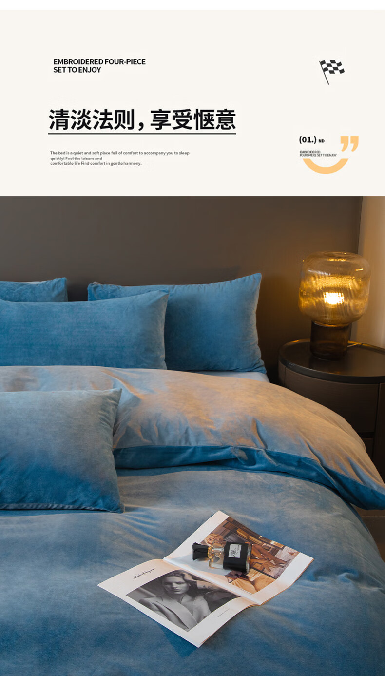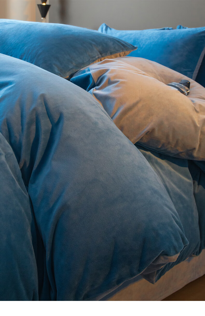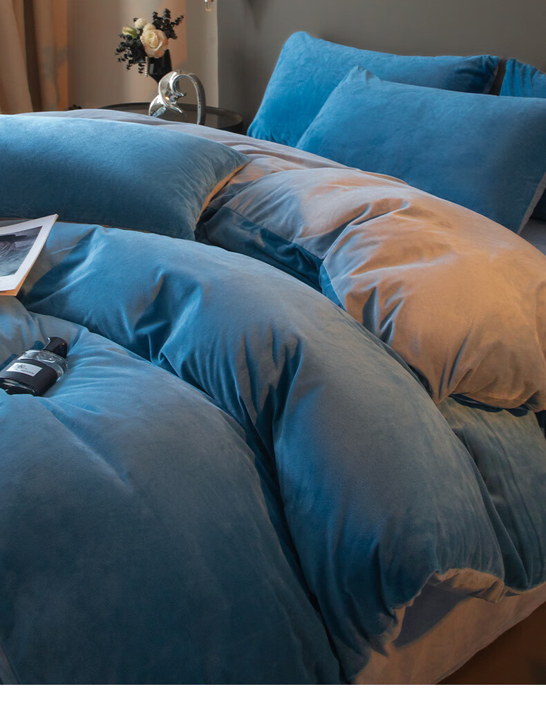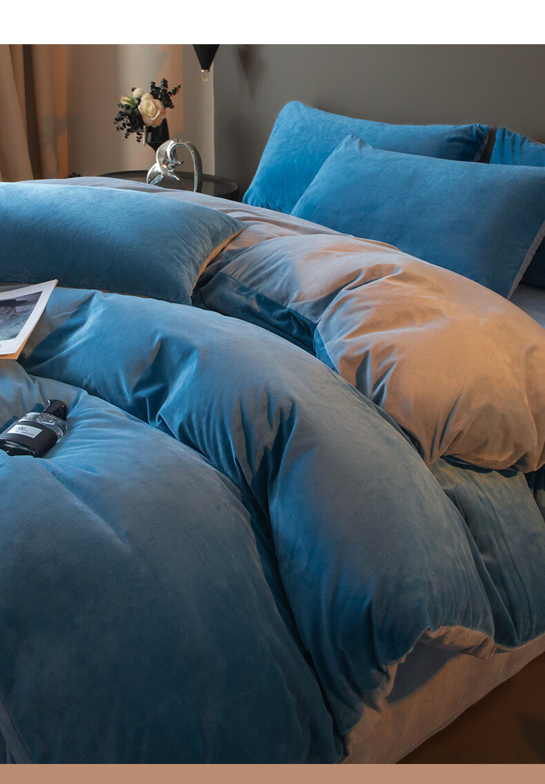 VJE冬季水晶绒床上四件套2025新款加厚珊瑚绒秋冬牛奶绒三件套被套 水晶绒-浅灰+深灰 三件套1.2m 床单款 -被套150*200cm