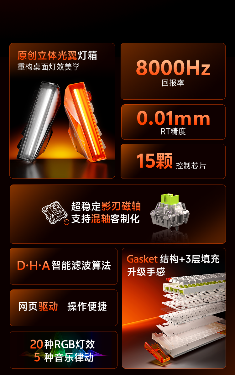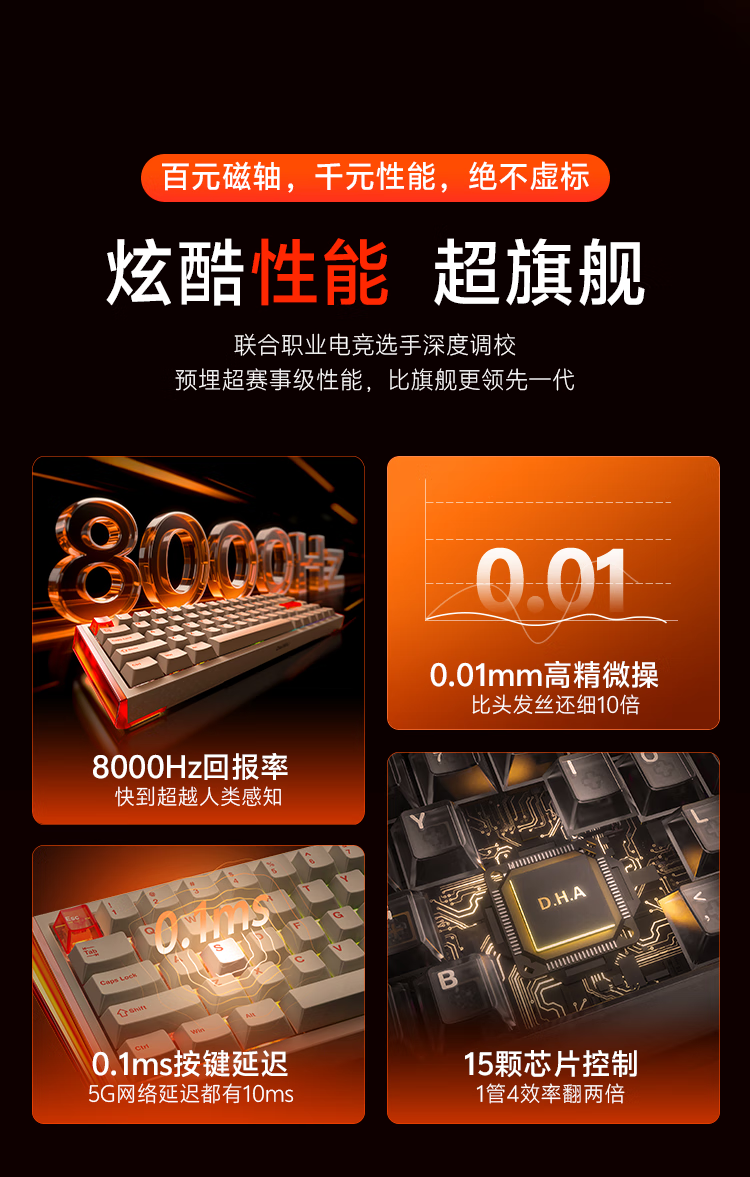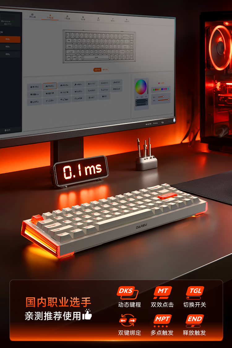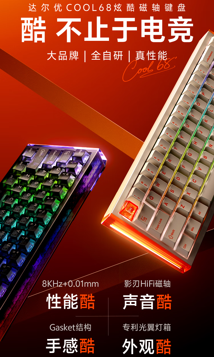 达尔优(DAREU)COOL68磁轴键盘RT电竞游戏机械键盘8K回报率热插拔RGB双驱动灯箱无畏契约68配列COOl68 浆果红