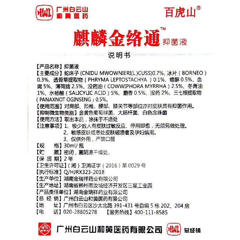 百虎山麒麟金络通液肩部颈椎腰膝活络油护理(新包装)