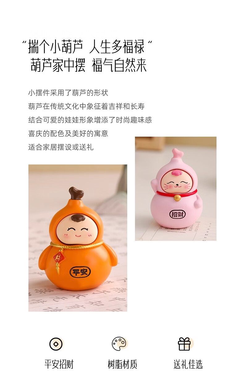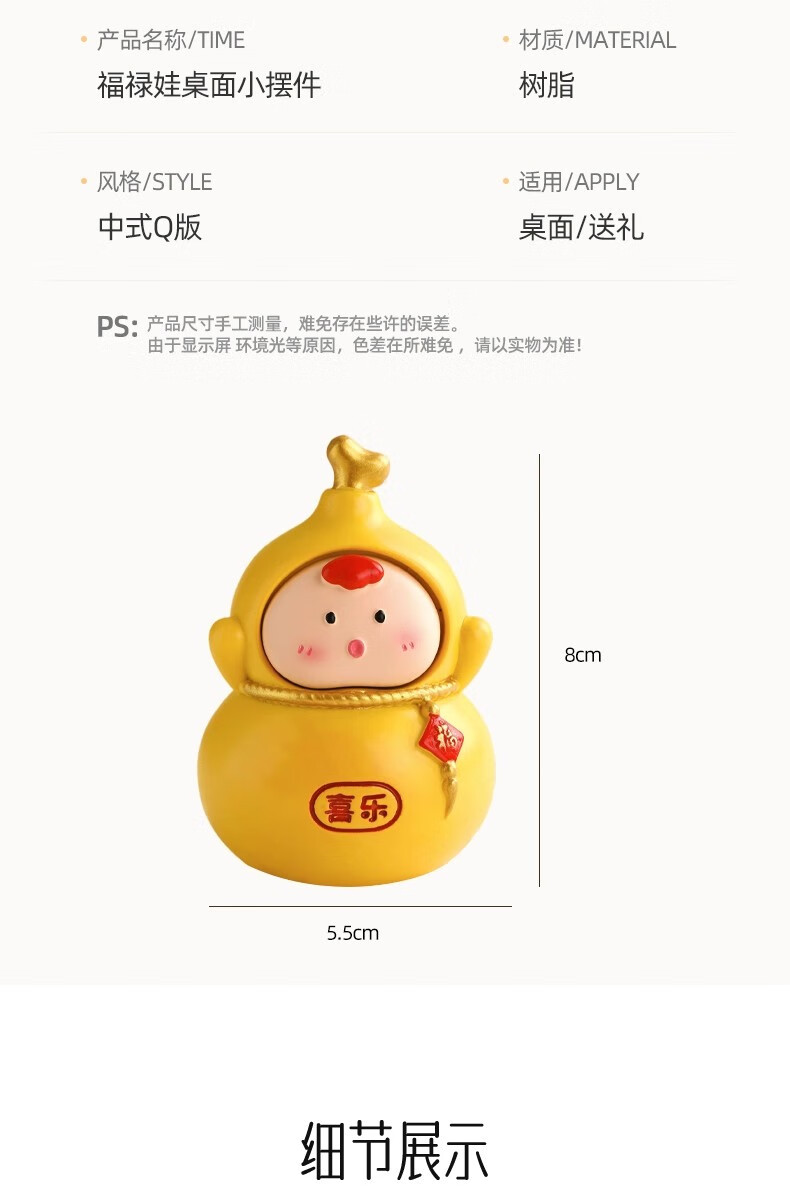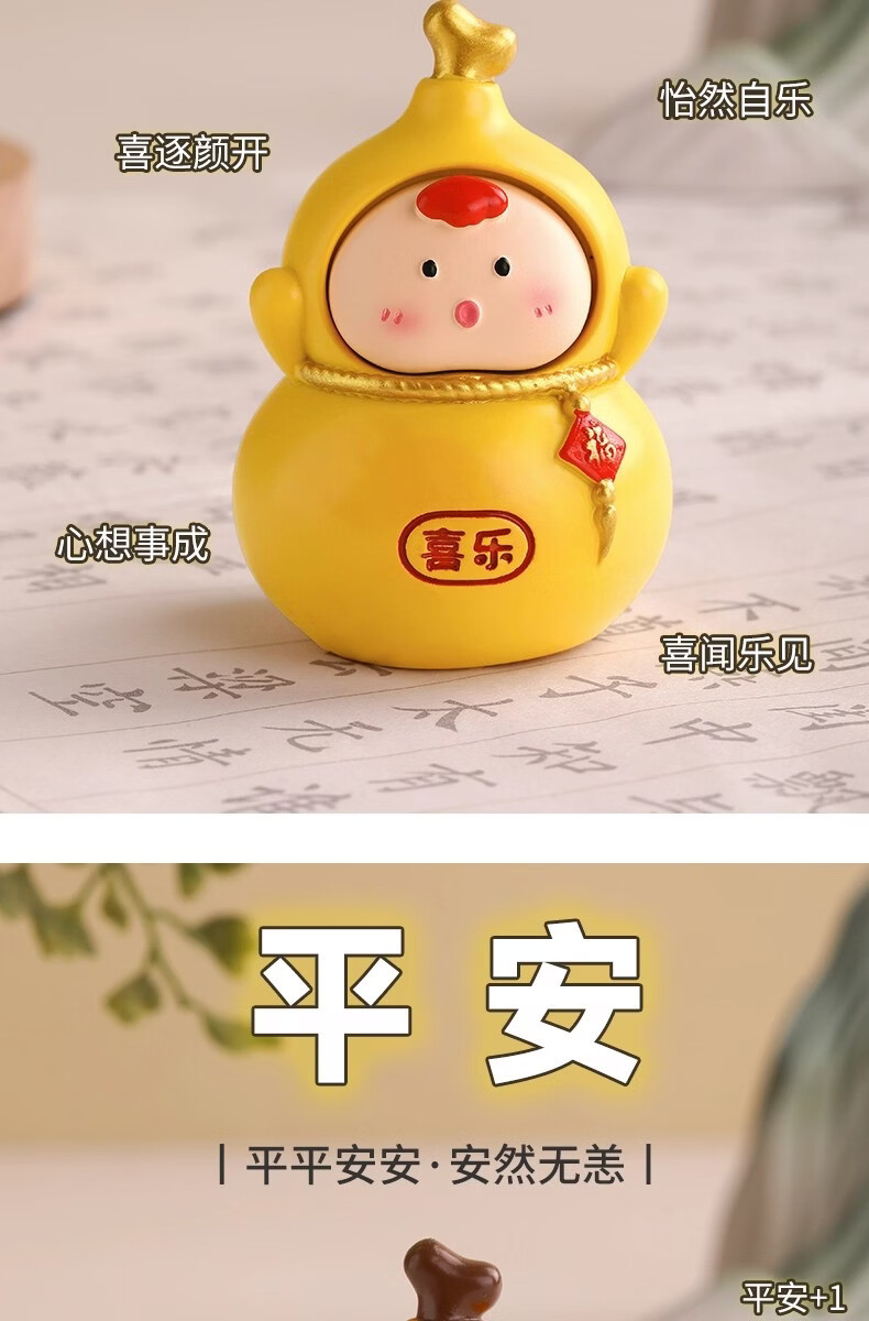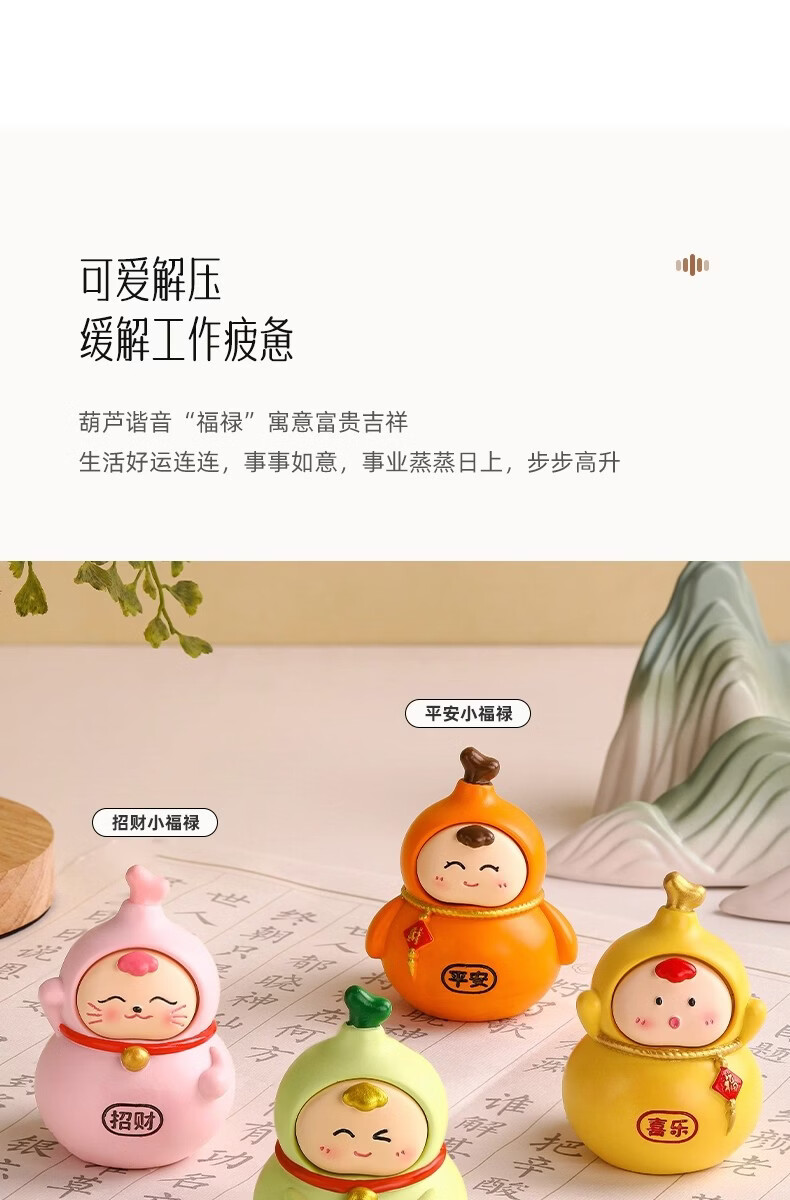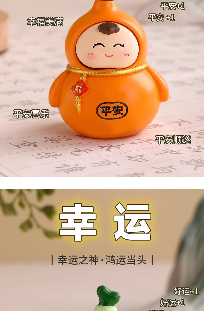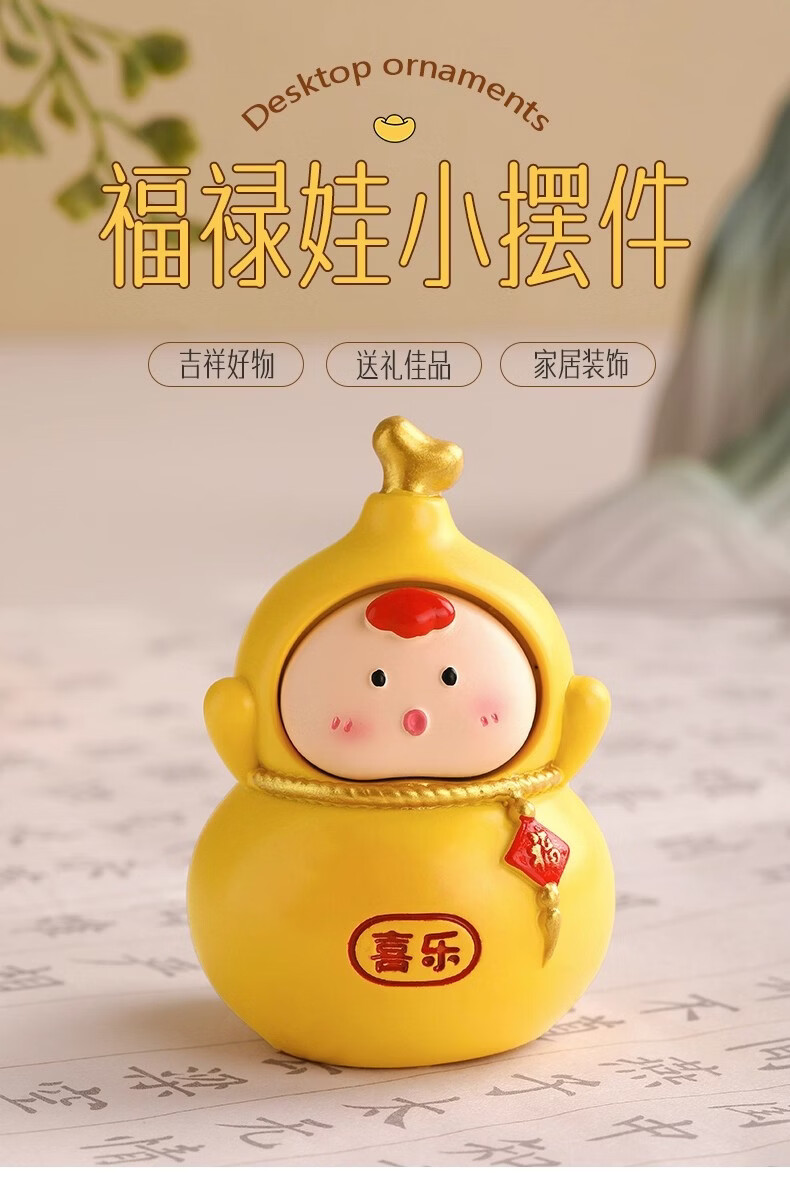 溥畔葫芦娃娃喜庆中国风书桌摆件纪念公仔招财幸运平安福禄伴手礼物 创意葫芦玩具「幸运」