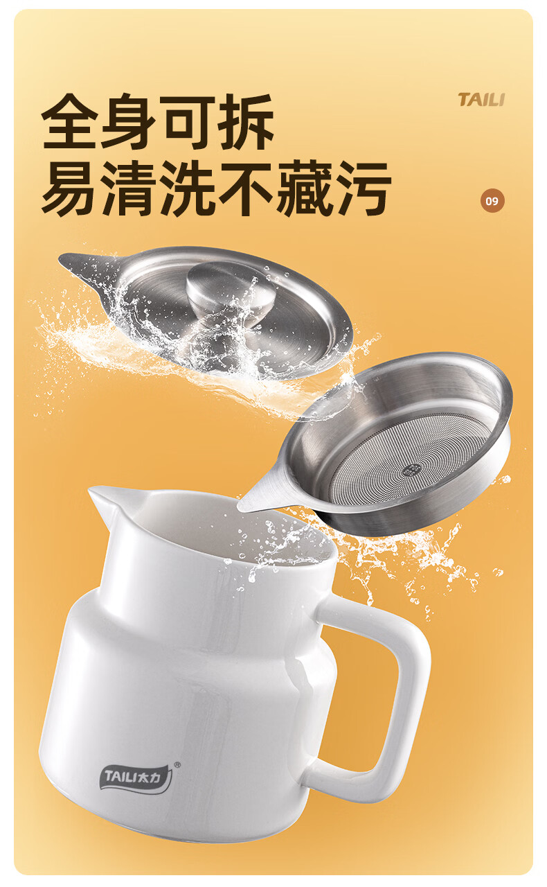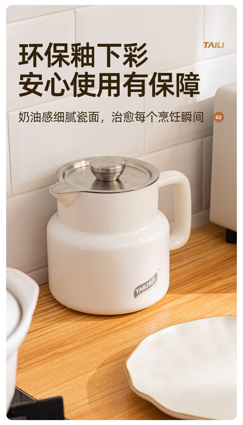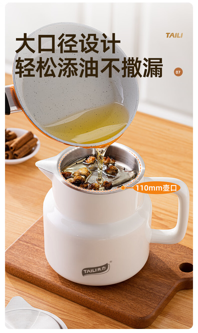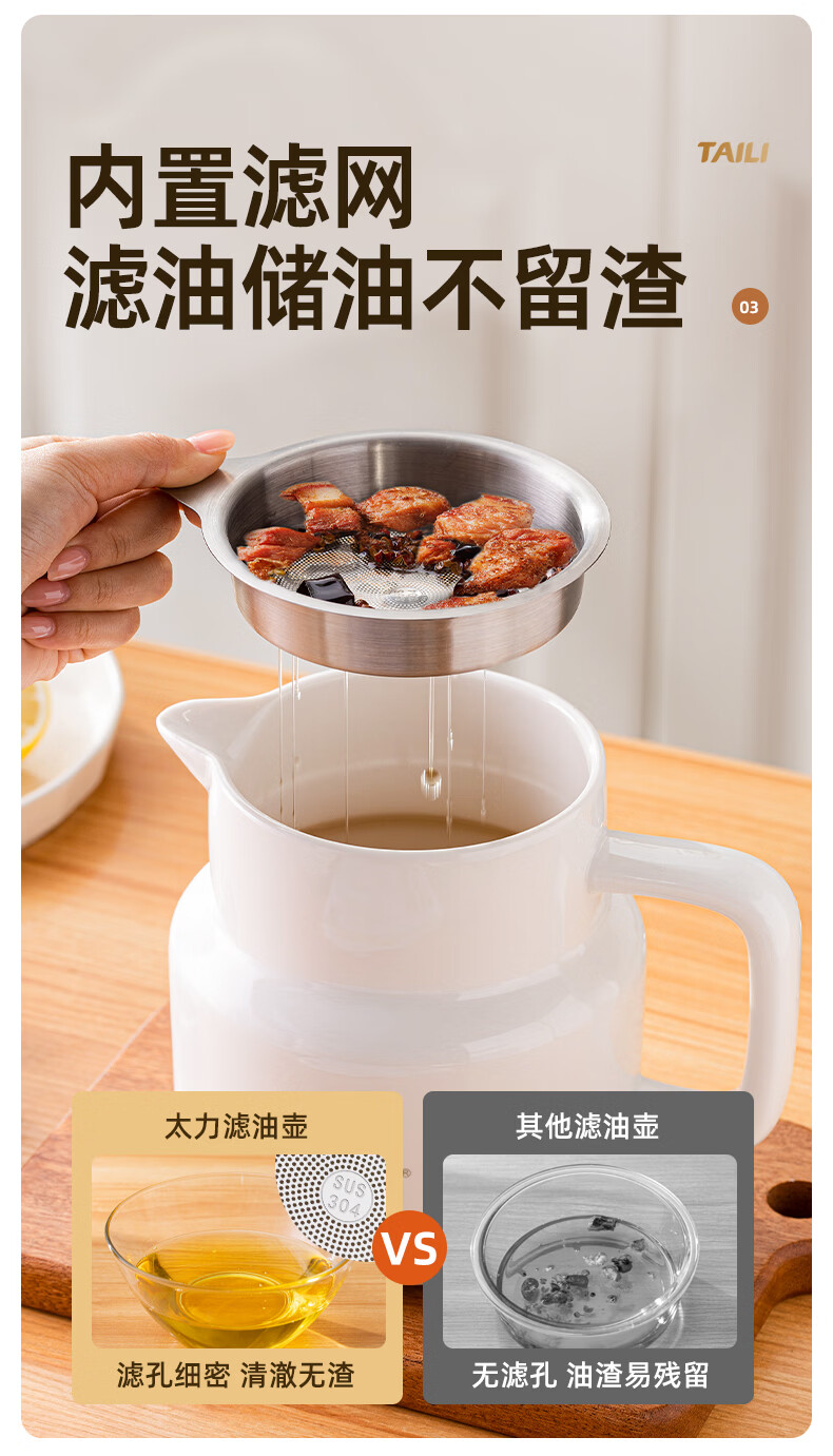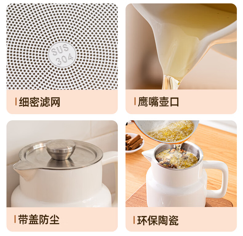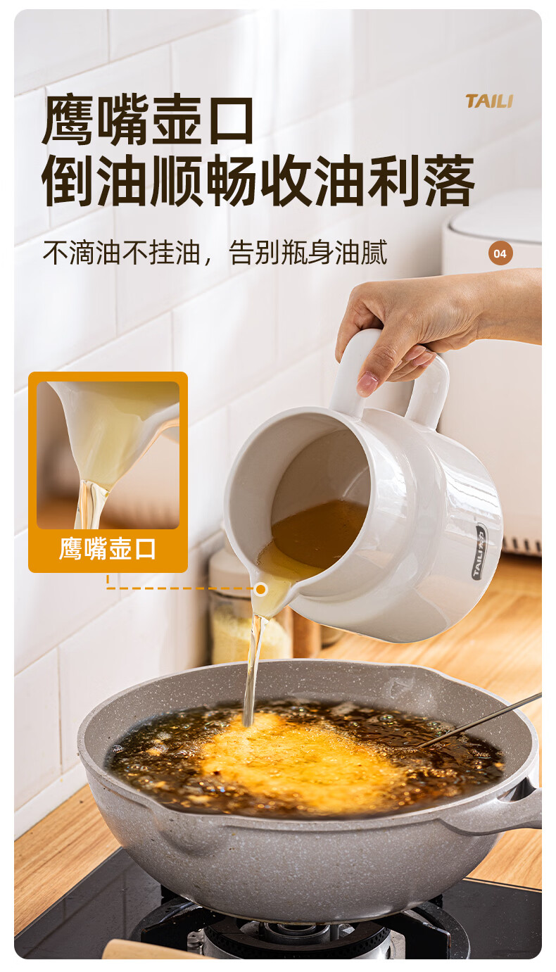 太力厨房家用猪油罐滤油壶大容量陶瓷储油罐带过滤盖 储油壶 1500ml