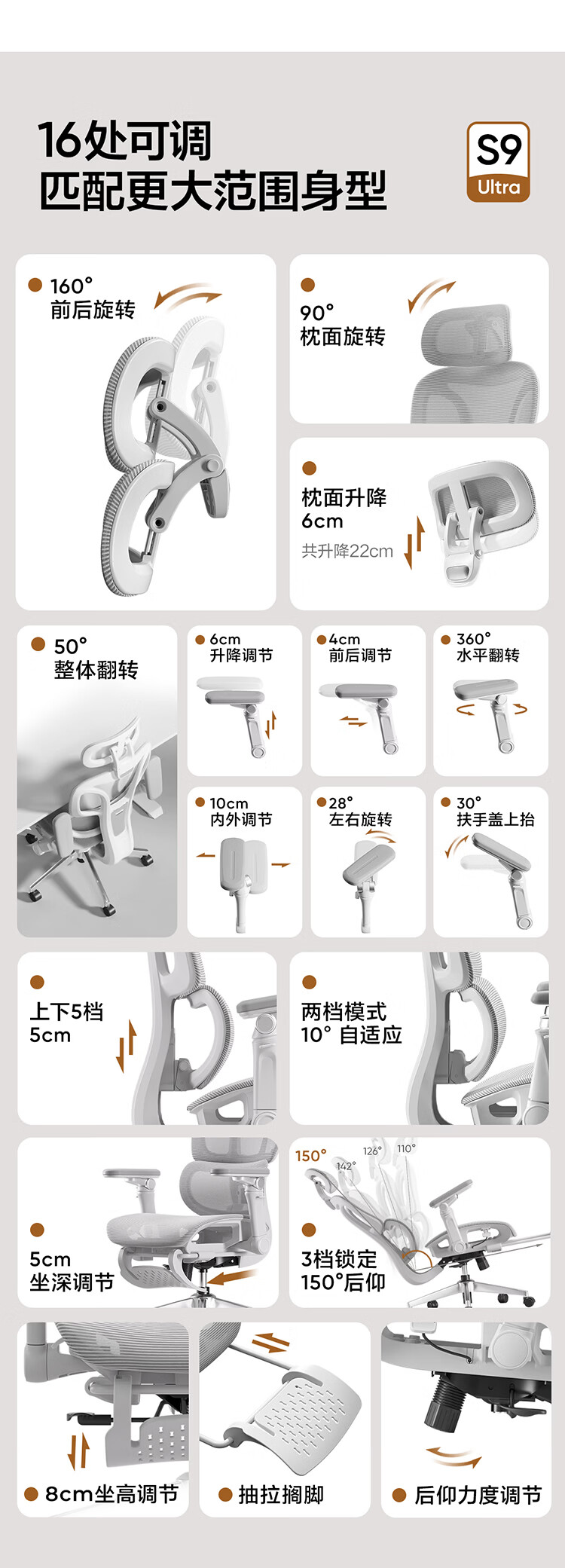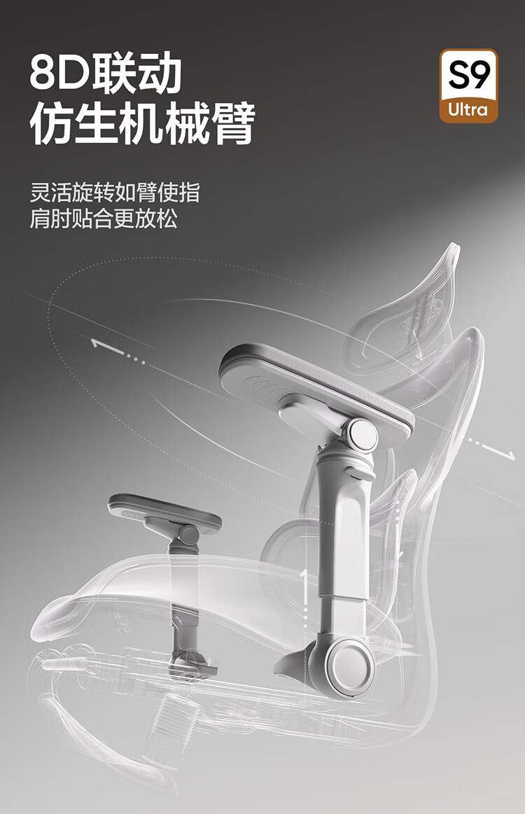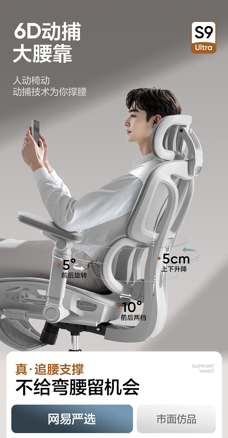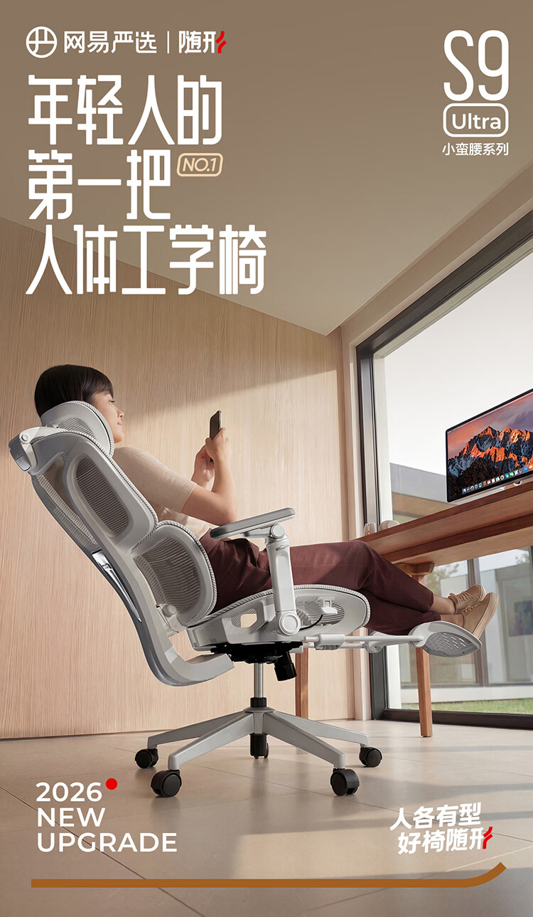 网易严选小蛮腰S9Ultra人体工学电脑椅电竞椅办公久坐座椅8D扶手 黑色 有脚托