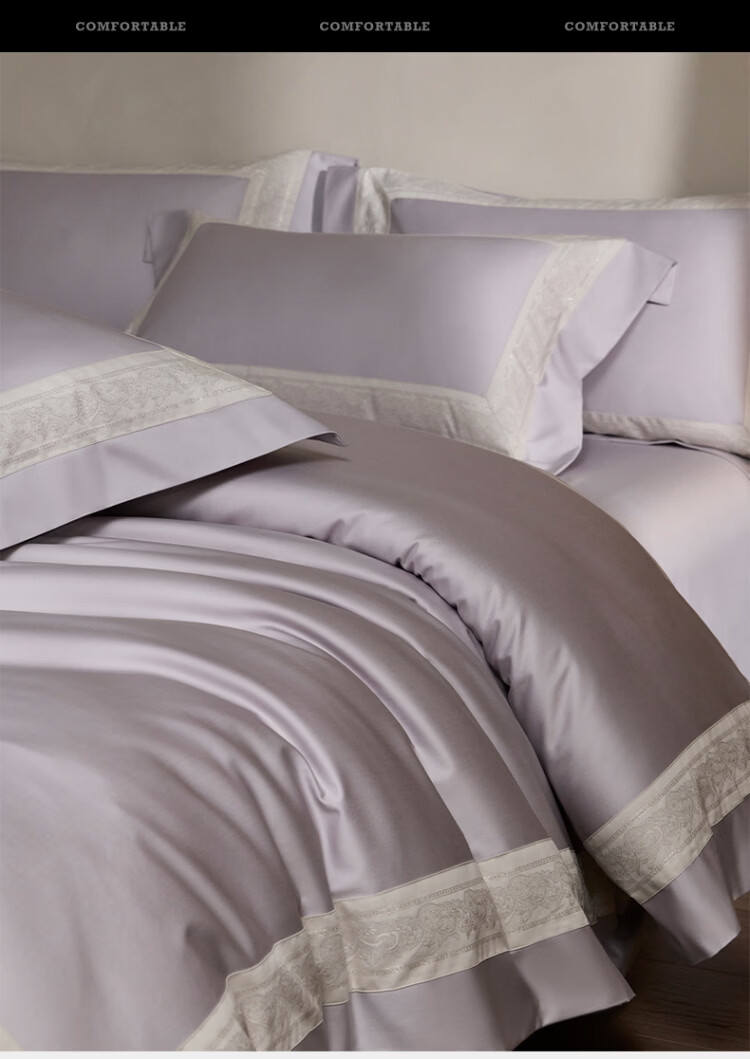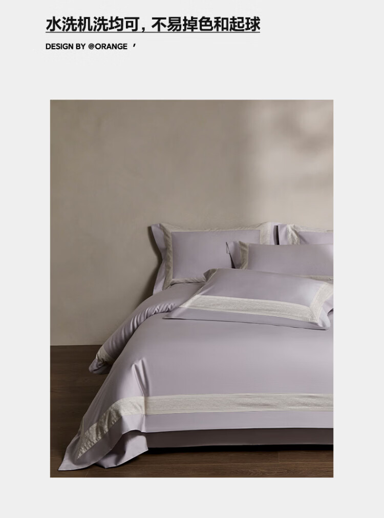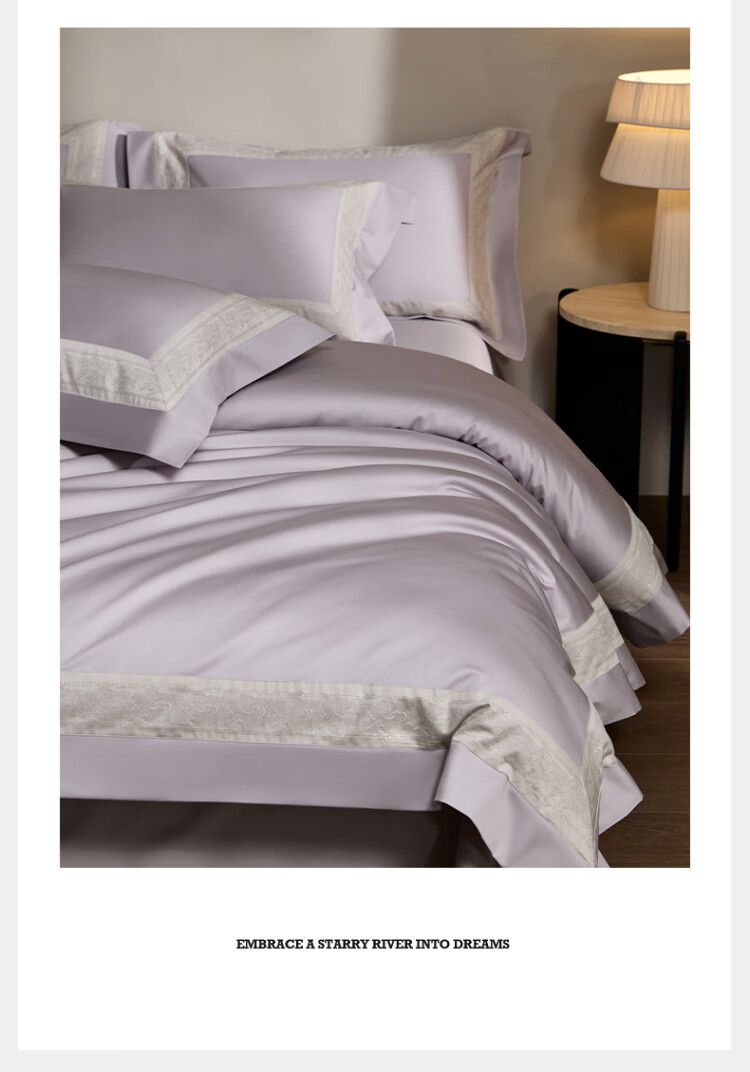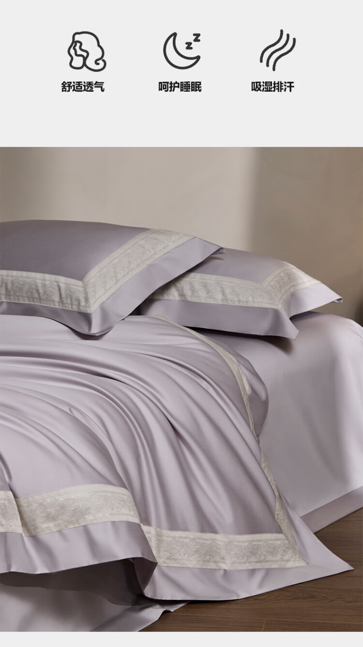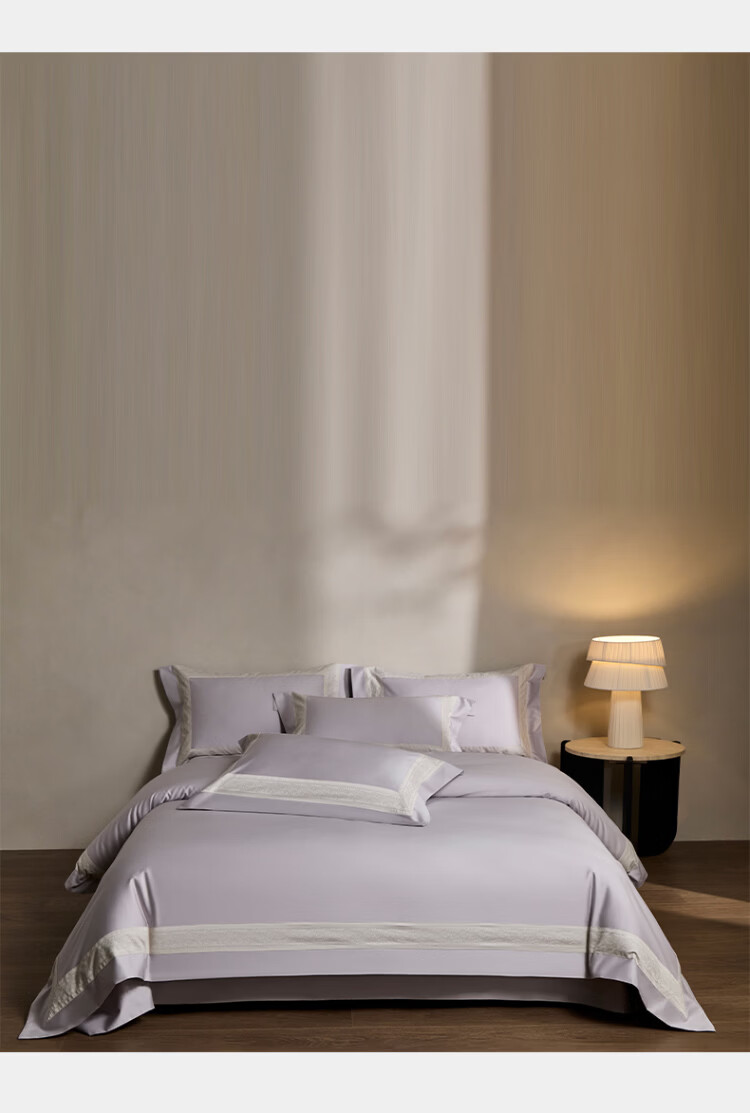 ROLAND LIVE全棉床上四件套纯棉亲肤透气床单款被套家用床上用品简约风套件 TGH 全棉四件套-香榭丽梦幻紫 1.5米床 床单款 【被套200*230cm】