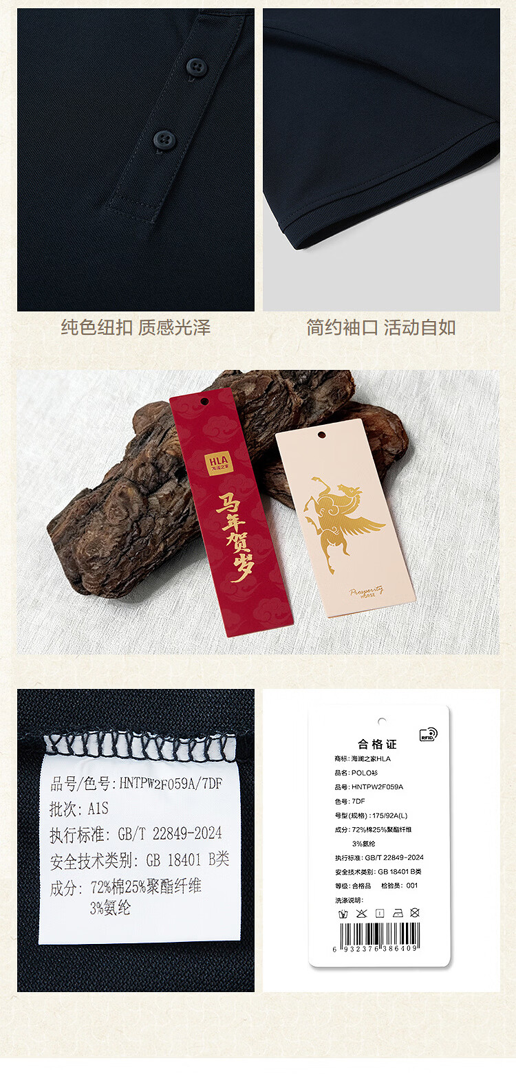 HLA海澜之家POLO衫男26新马年凉感马上好运短袖男夏季