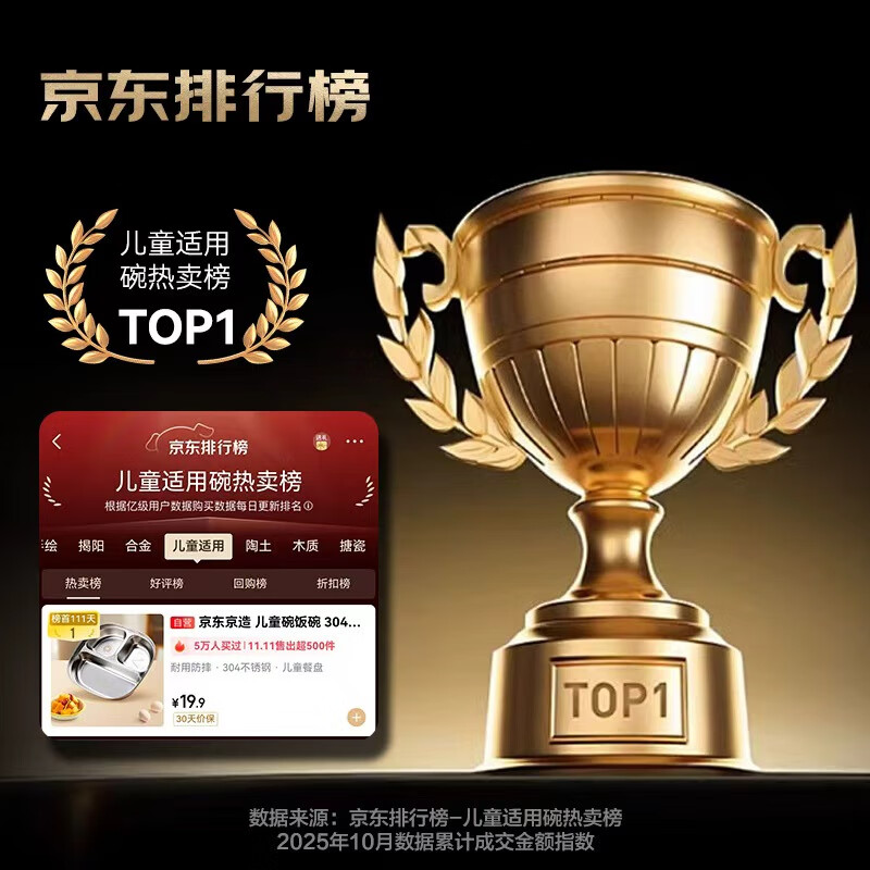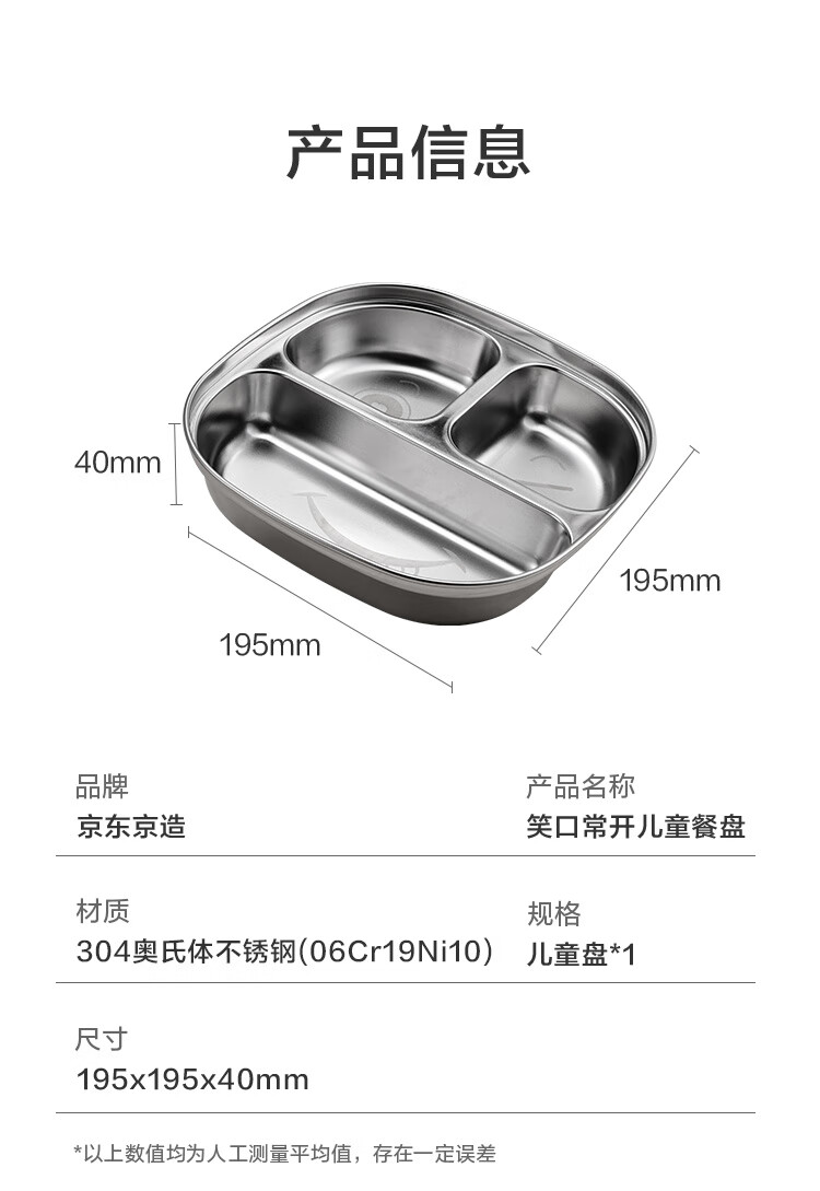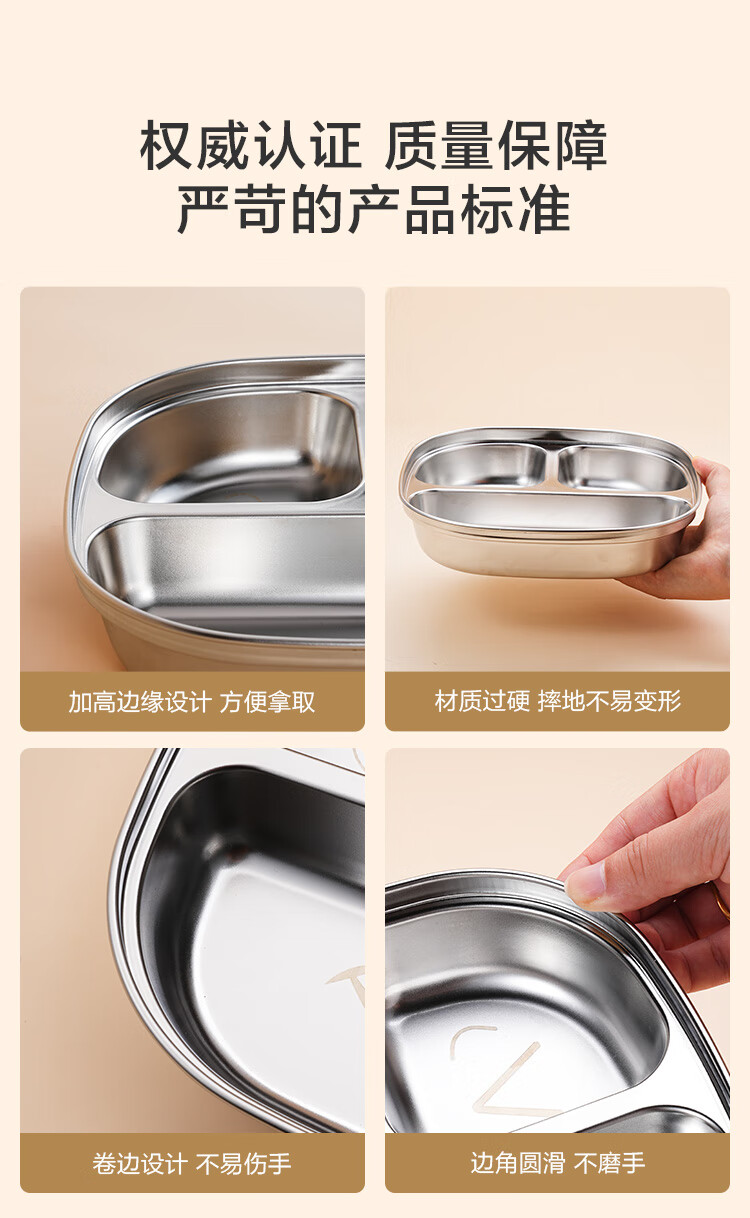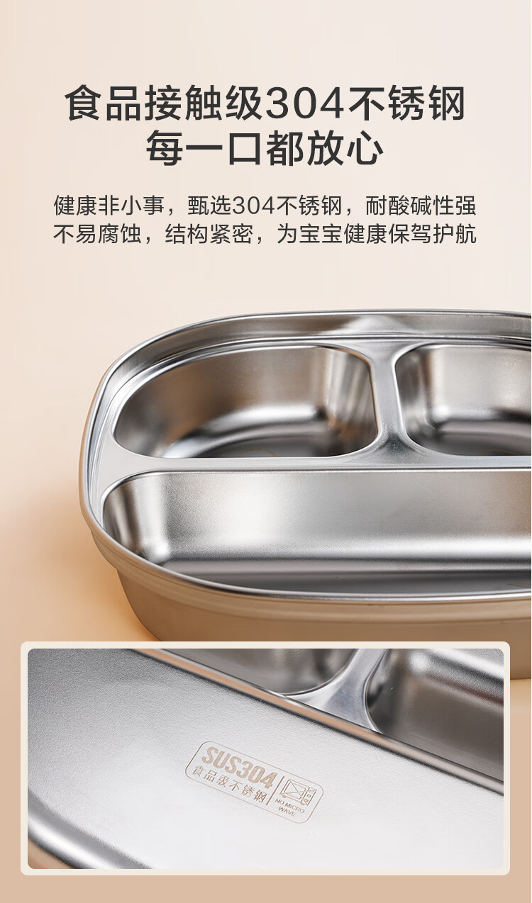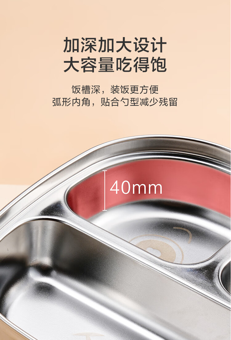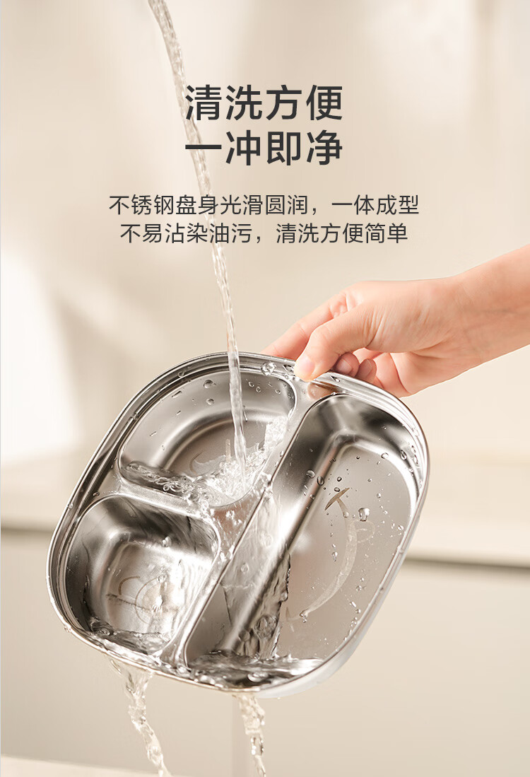 京东京造 儿童碗饭碗 304不锈钢宝宝辅食盘汤碗小学生餐具三格托盘600ml