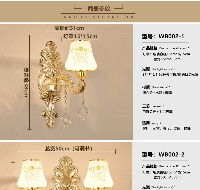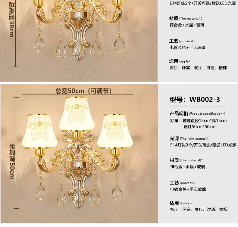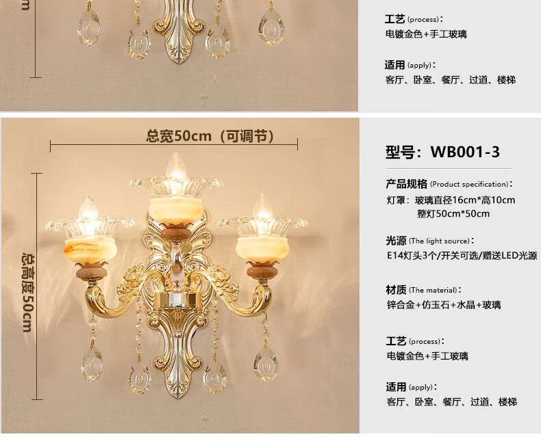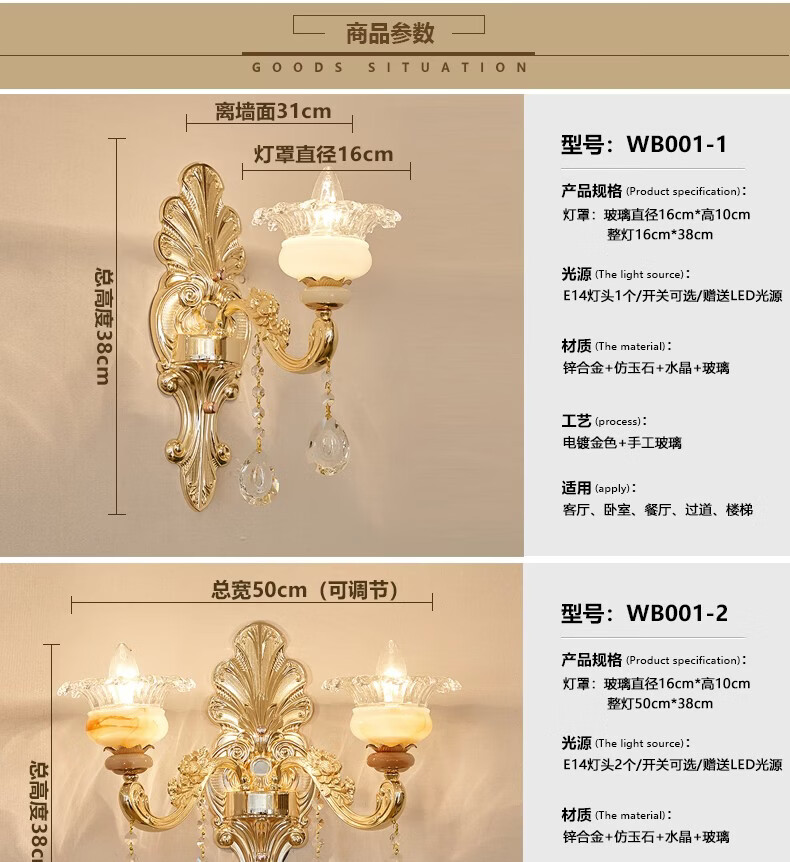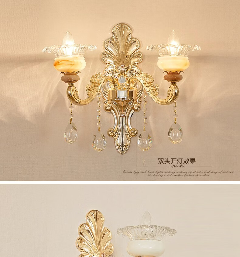 爆款三头欧式客厅背景墙上床头壁灯卧室墙壁灯服装店走道楼梯灯具 C款单头水晶壁灯卧室2025新款现代简约床头灯饰