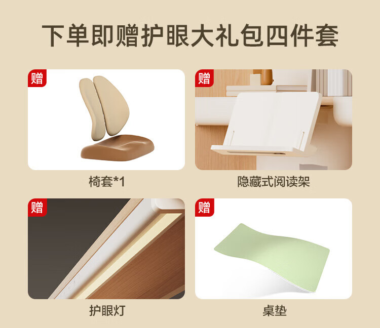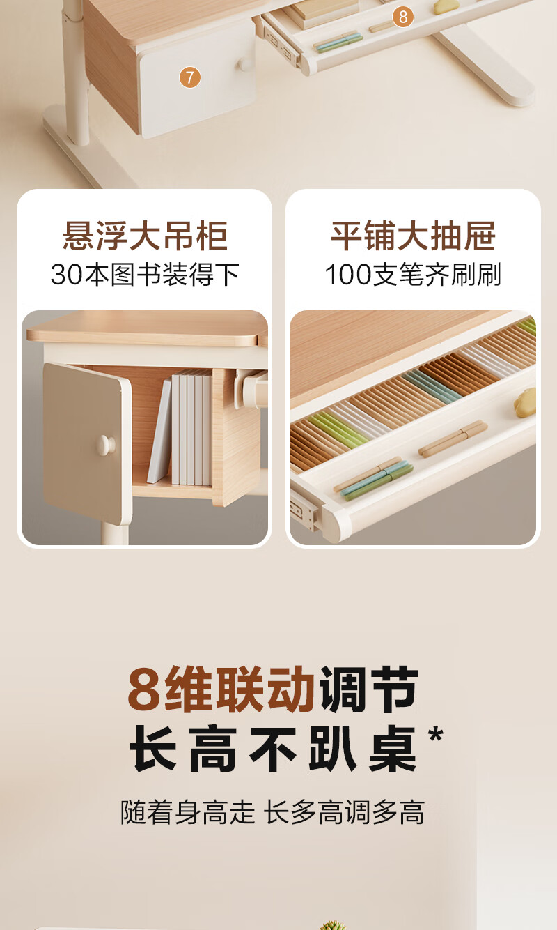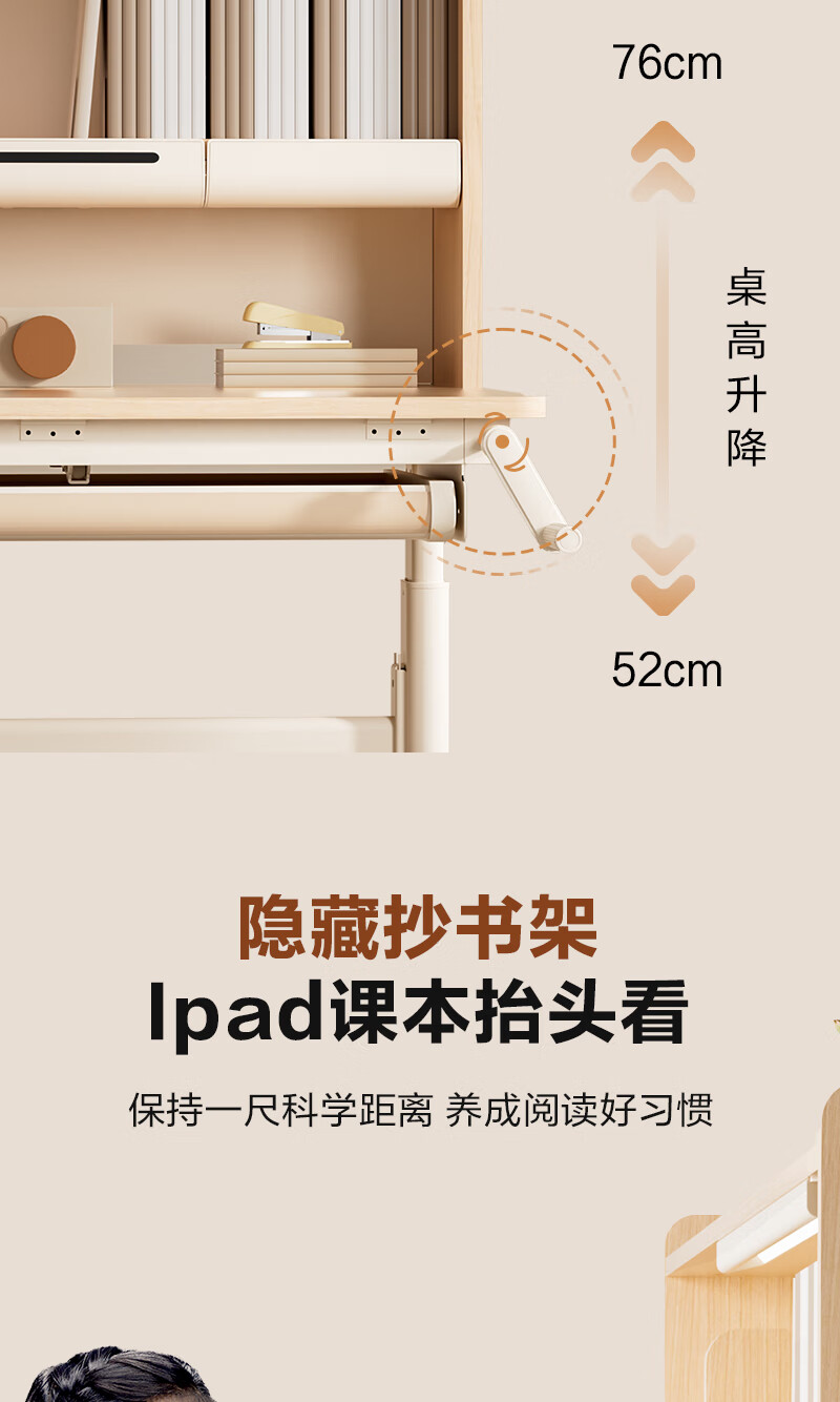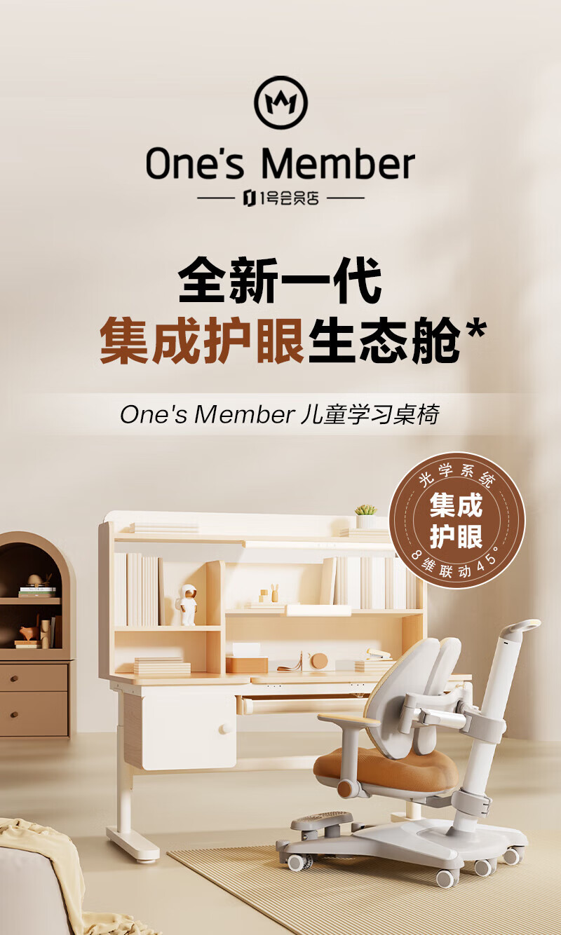 1号会员店(One's Member)儿童学习桌书桌椅套装实木升降学生写字桌带灯家用初中高中生