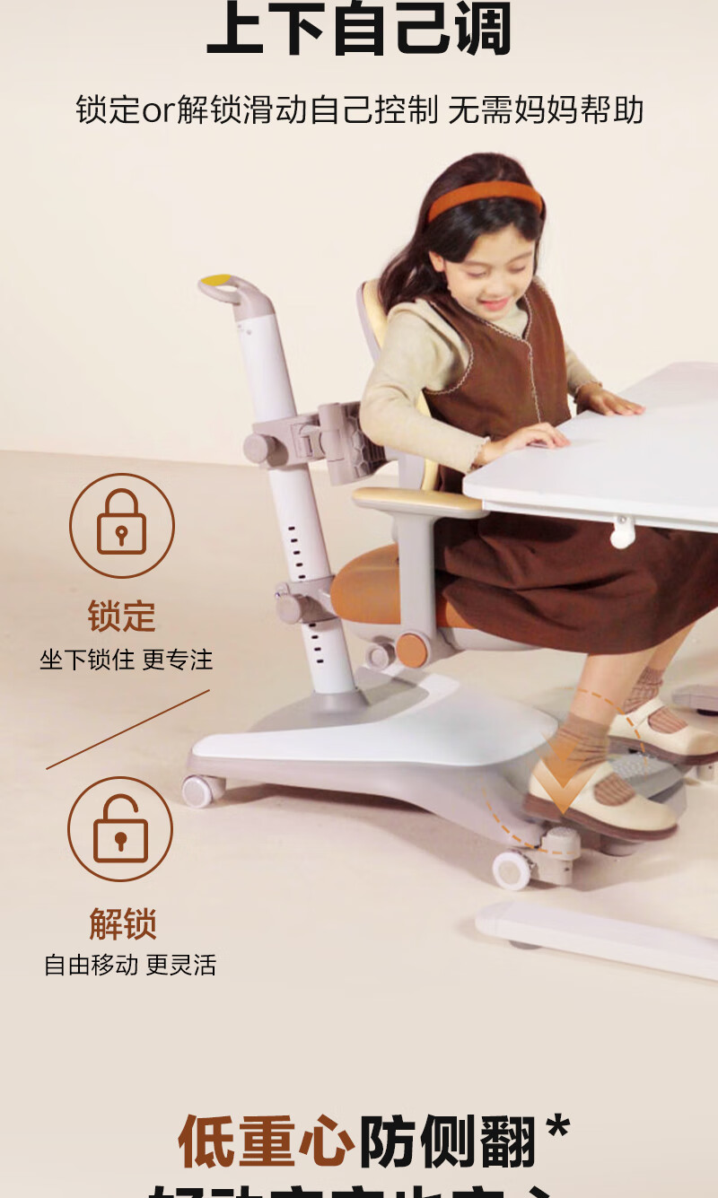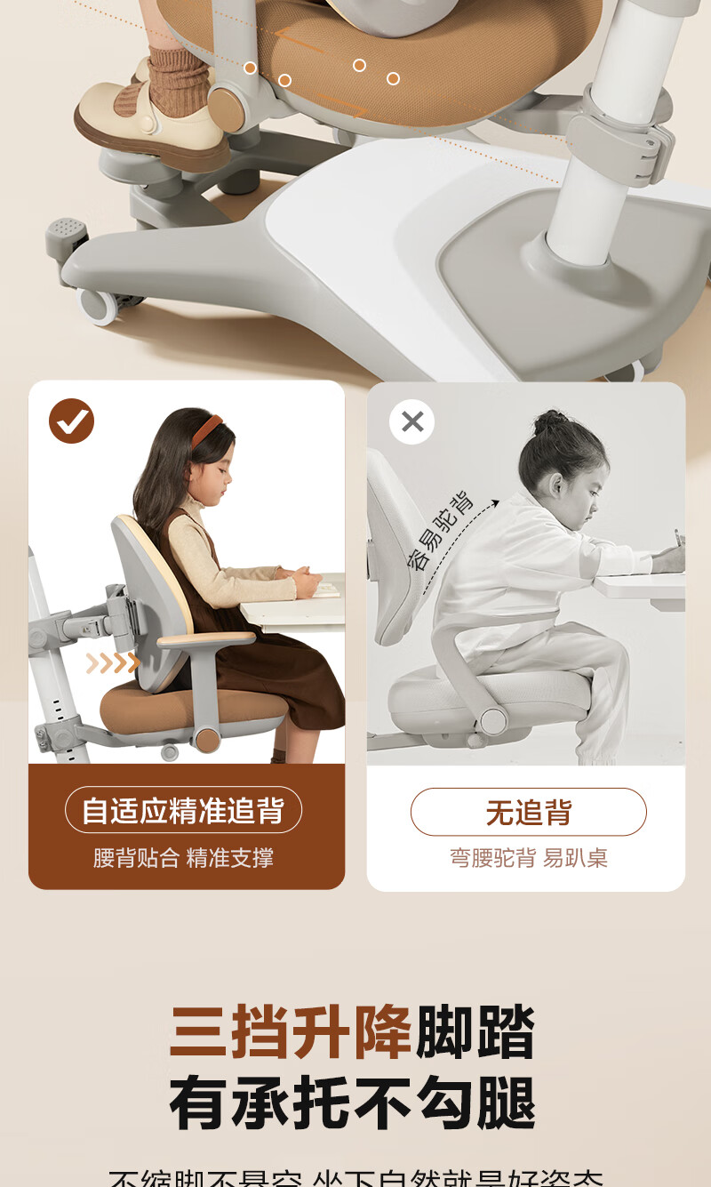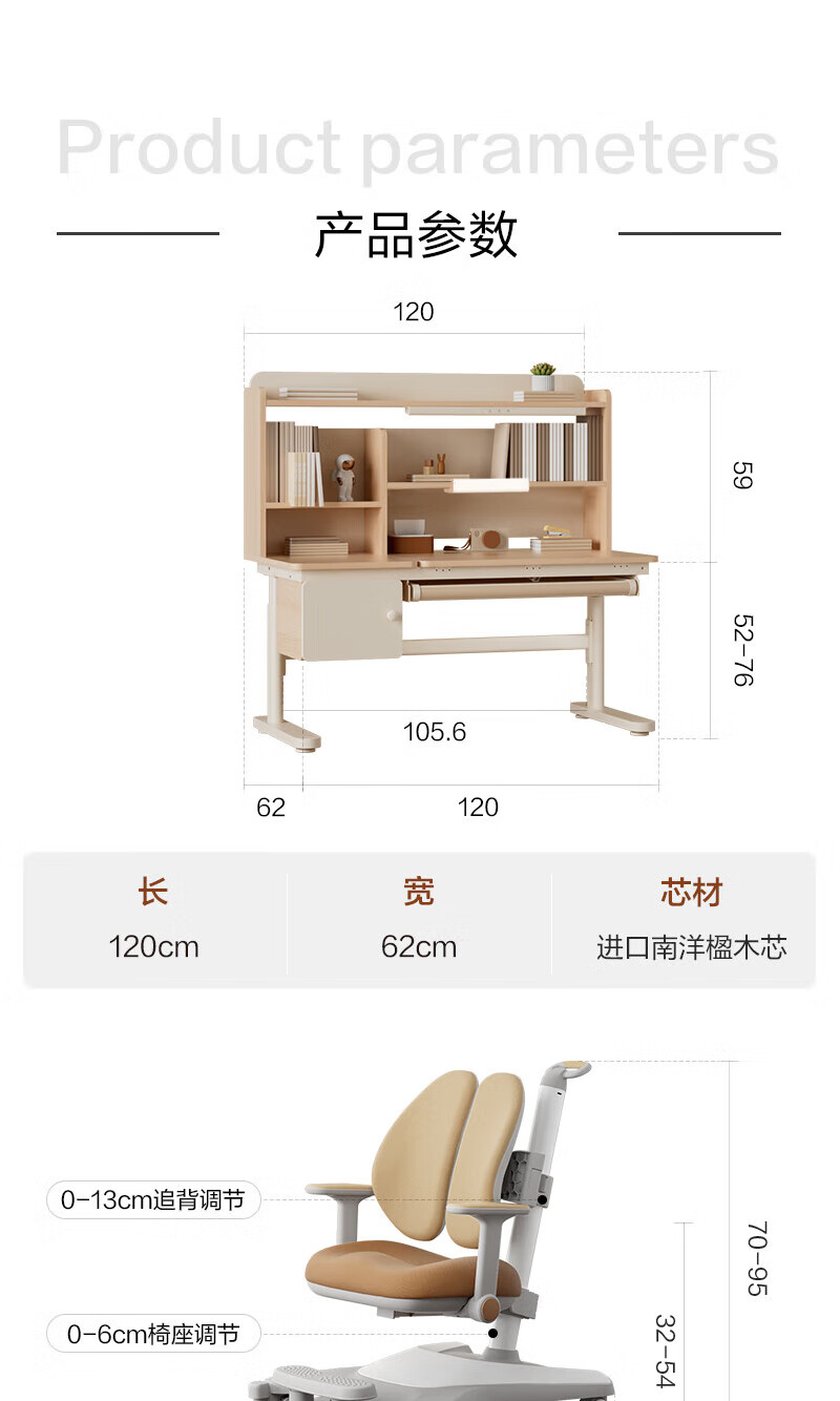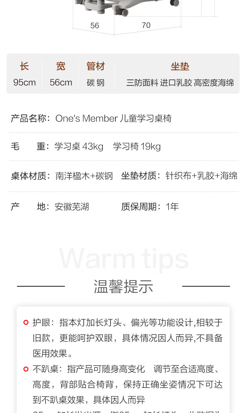 1号会员店(One's Member)儿童学习桌书桌椅套装实木升降学生写字桌带灯家用初中高中生