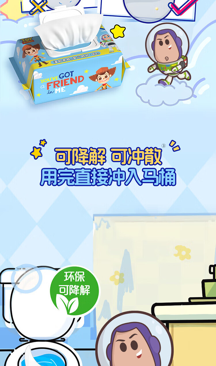 爱怡优×迪士尼联名 卫生湿巾 EDI纯水湿厕纸 清洁纸巾 可冲散湿厕巾 【180*140】10包 80抽*10包