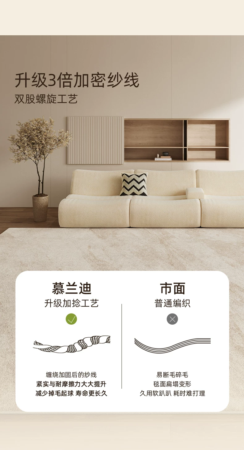 像素地毯客厅2026新款免洗可擦轻奢高级奶油沙发卧室加厚防水地垫天津 黎明-仿羊绒26813【加厚款】 240cm*340cm 【防猫抓宠物适用】