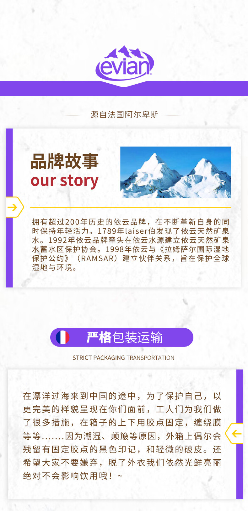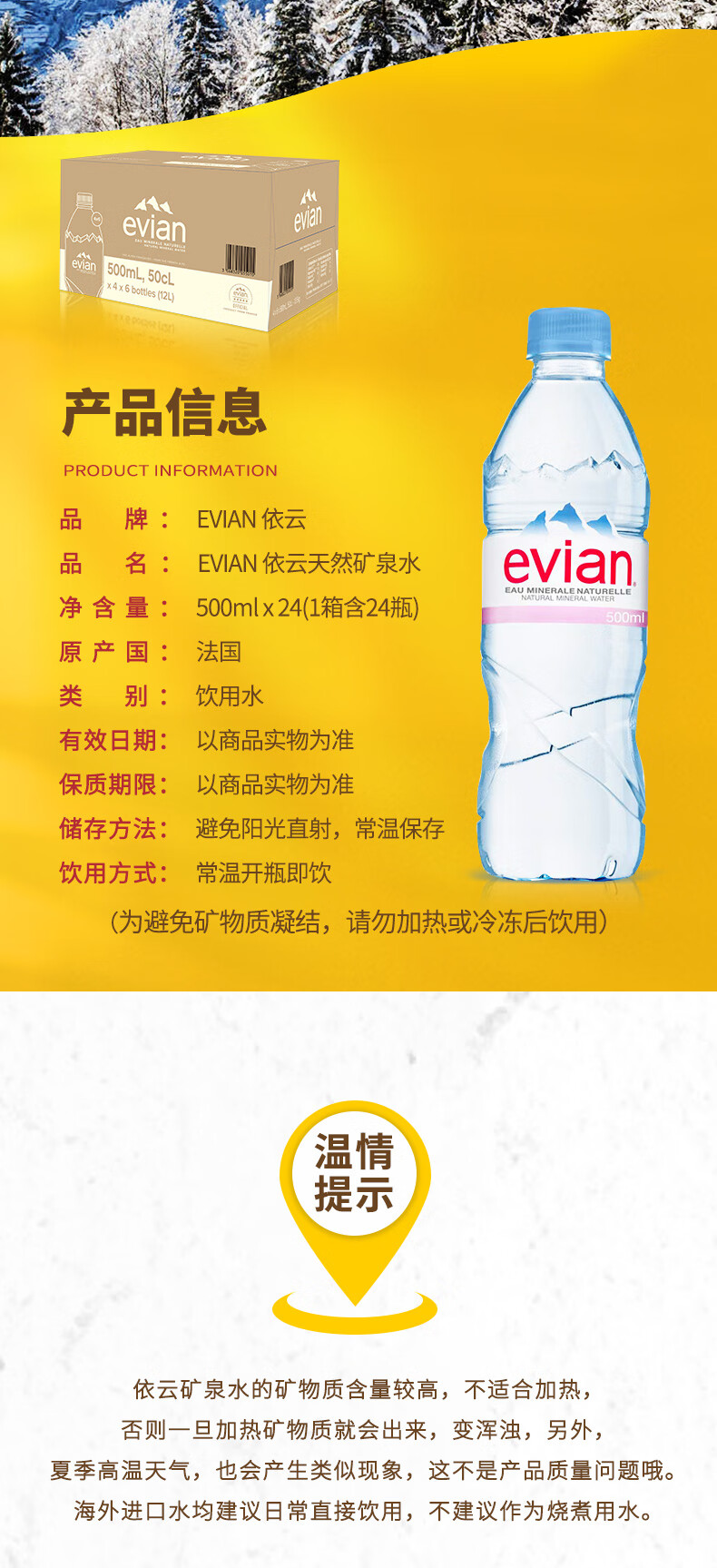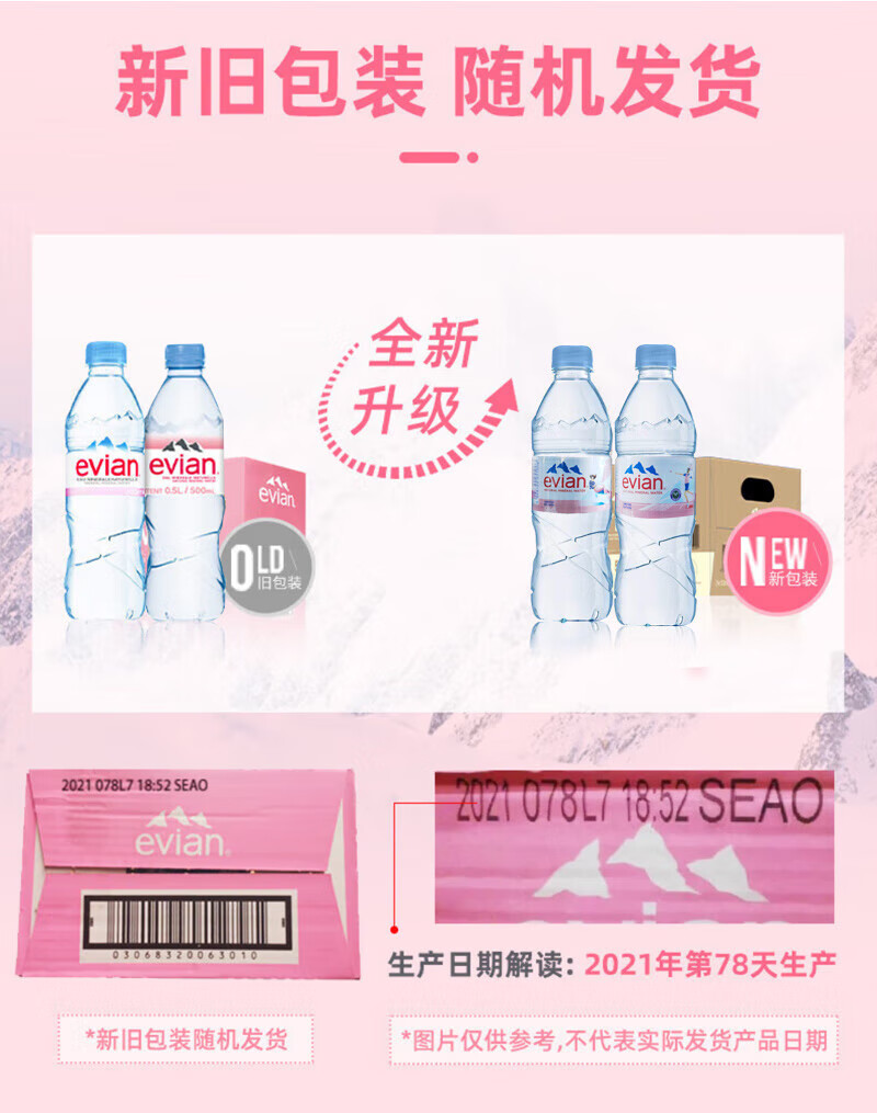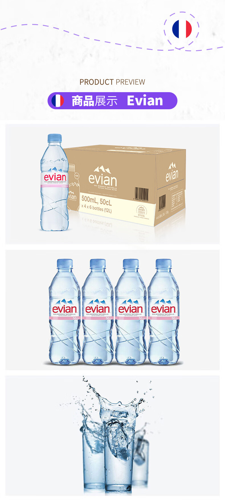 依云(evian)法国原装进口天然矿泉水500ml*24瓶(软瓶)饮用水 整箱装