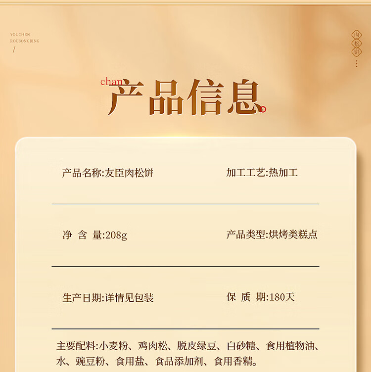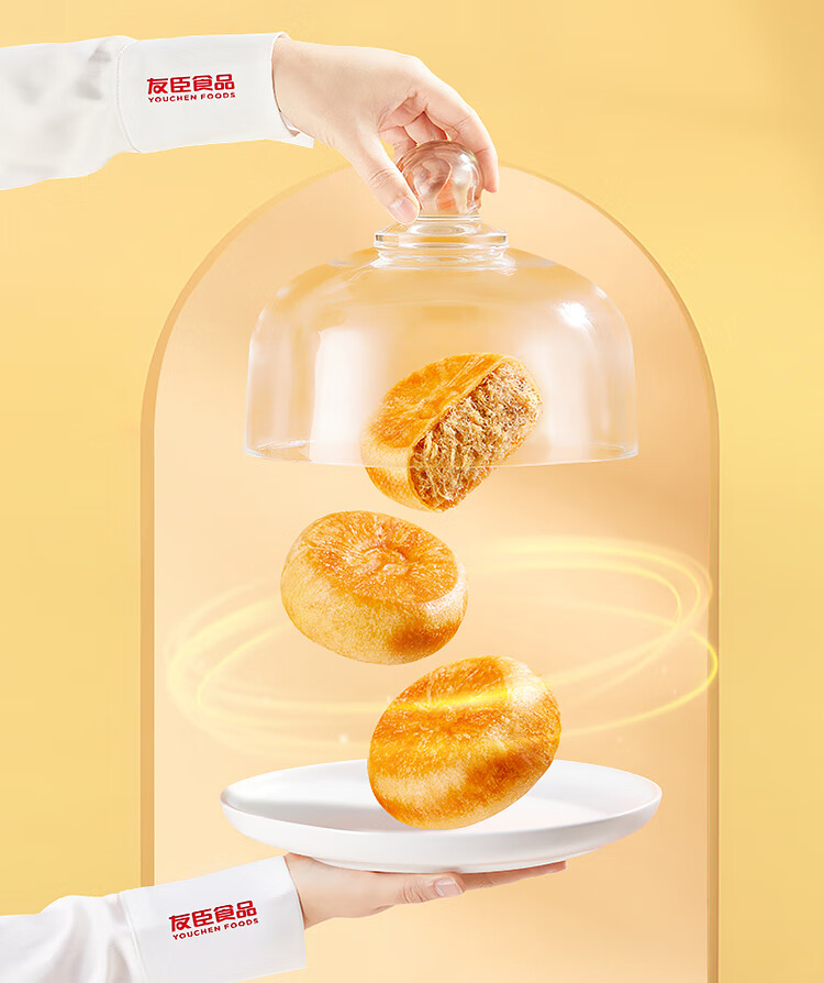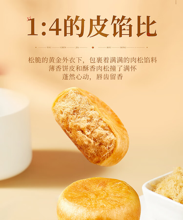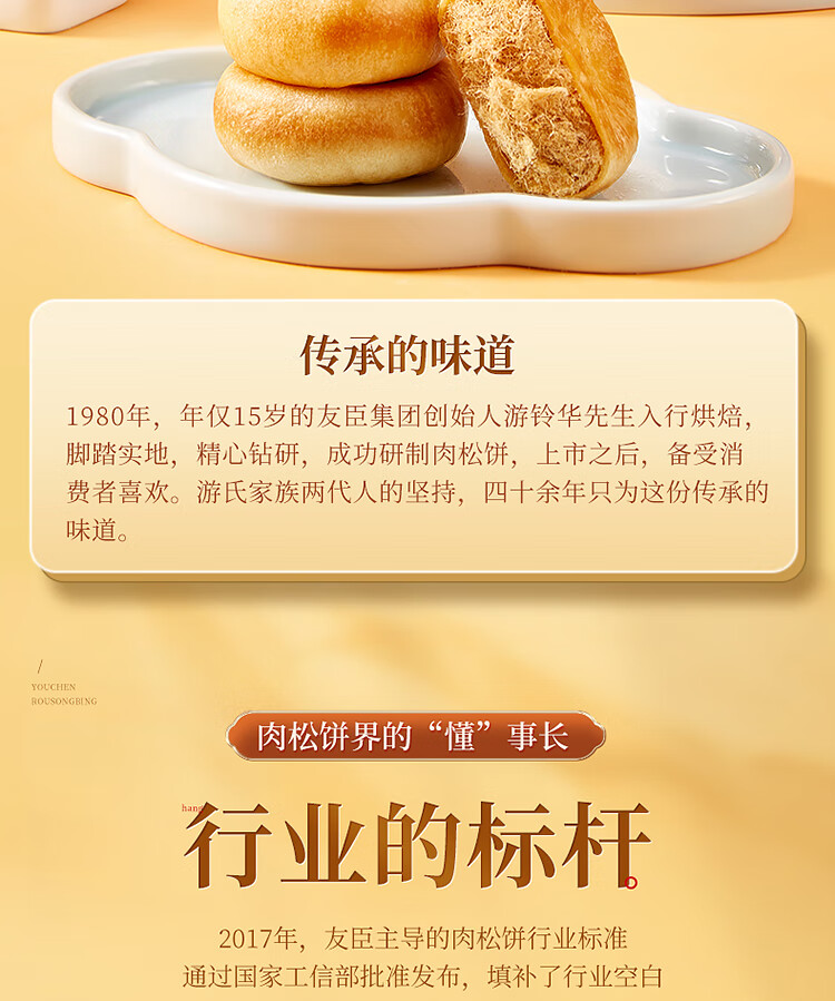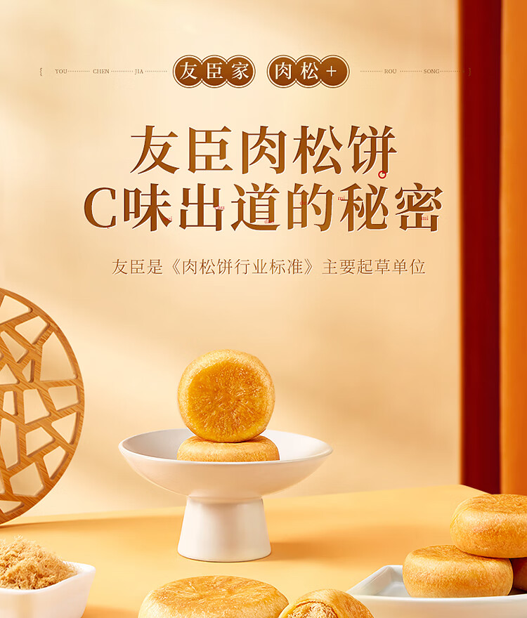 友臣肉松饼 经典六枚装 208g 营养早餐 饼干蛋糕 休闲零食 员工福利