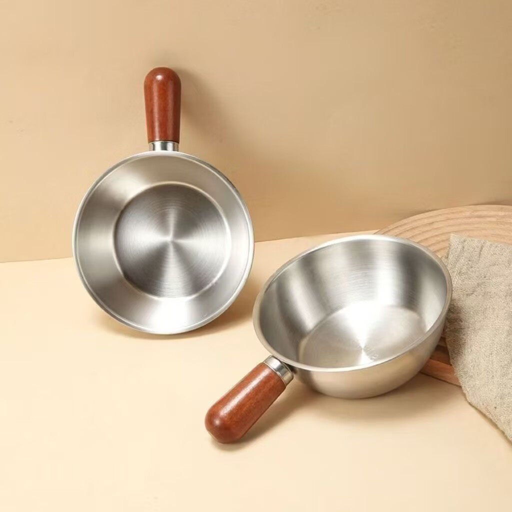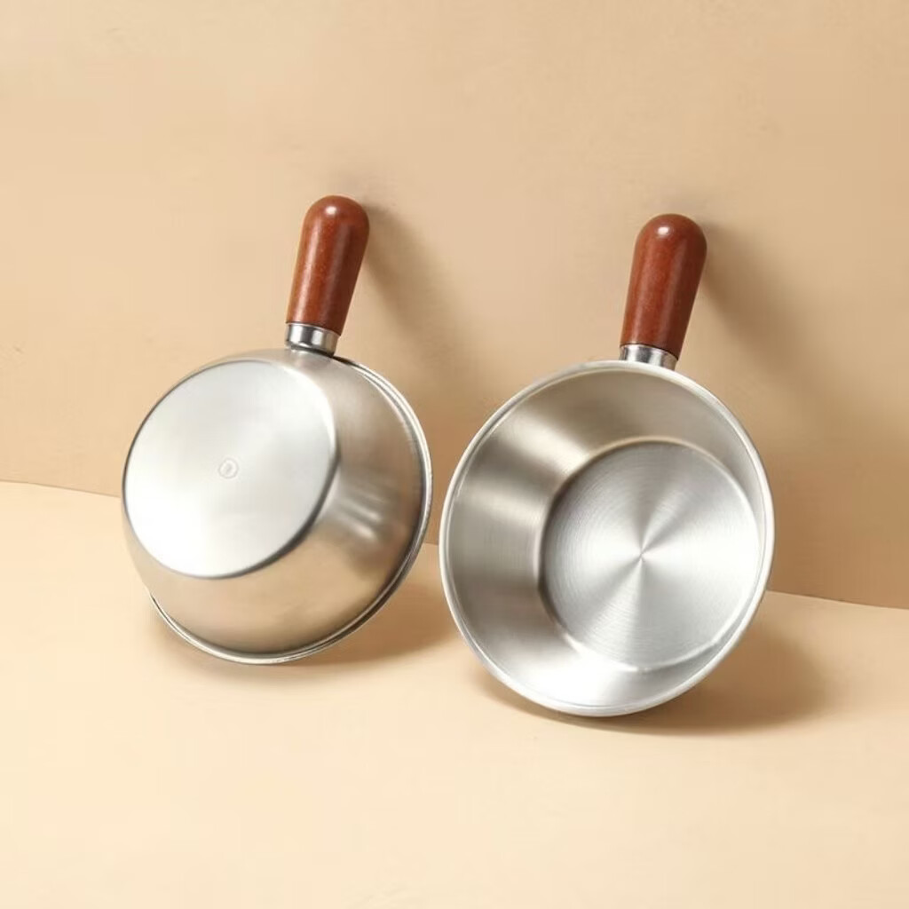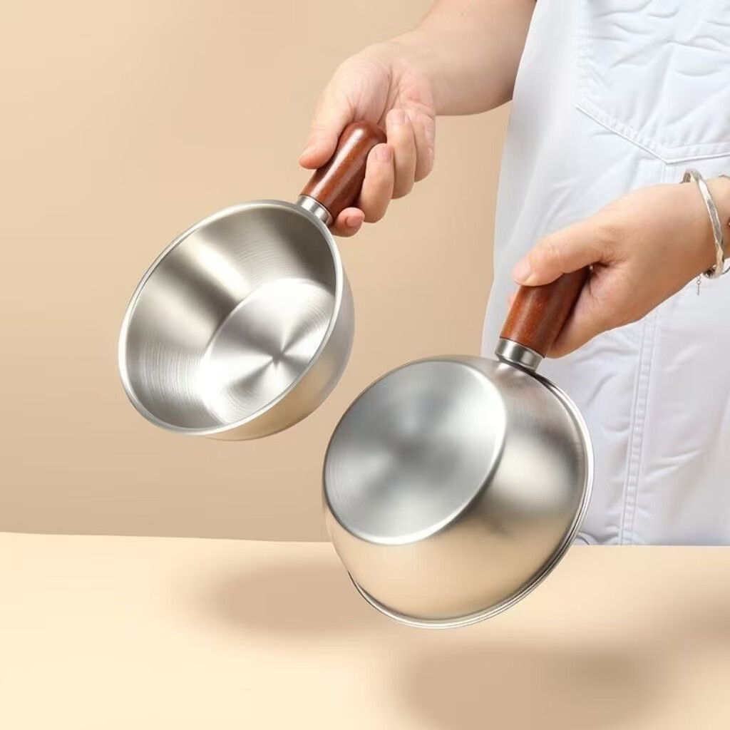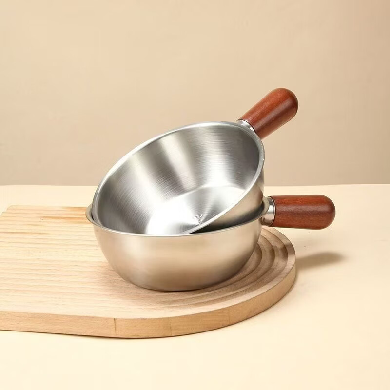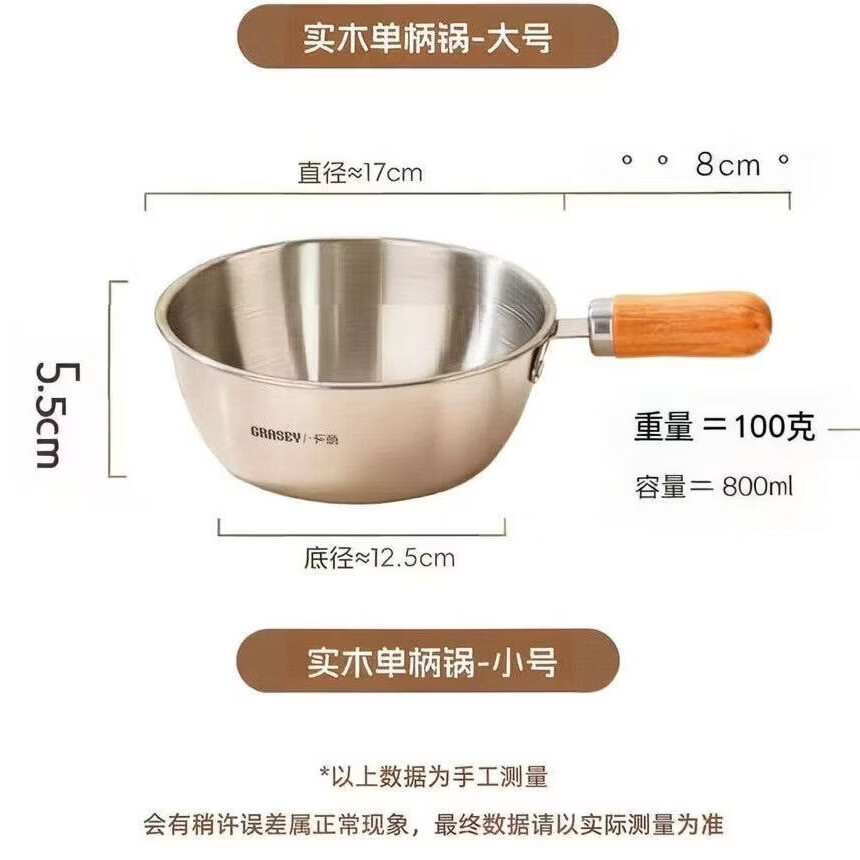 特厚不锈钢平底锅奶锅电磁炉通用不粘锅辅食锅汤锅煮锅蒸锅汤锅 胡桃木锅17cm