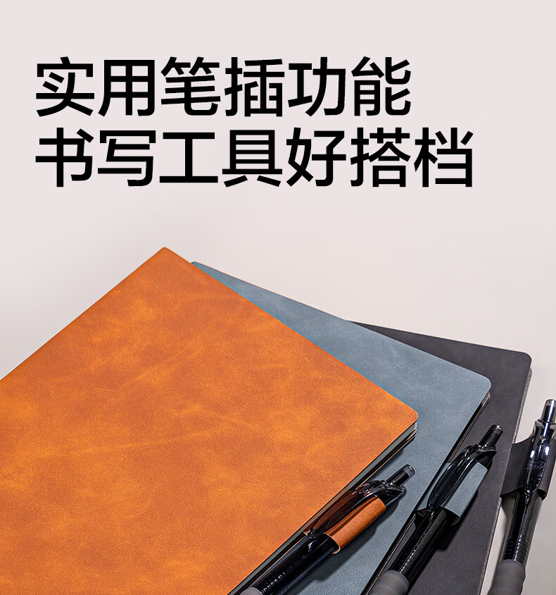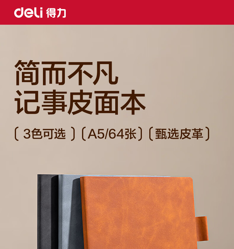 得力(deli)A5/64张带笔插皮面本时尚羊巴皮笔记本办公记事本会议记录本BP109黑色