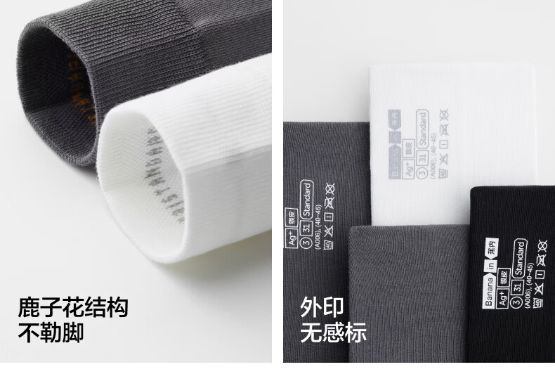 蕉内银皮331S男士袜子纯棉商务精梳棉袜透气10A抗菌防臭短筒夏季5双