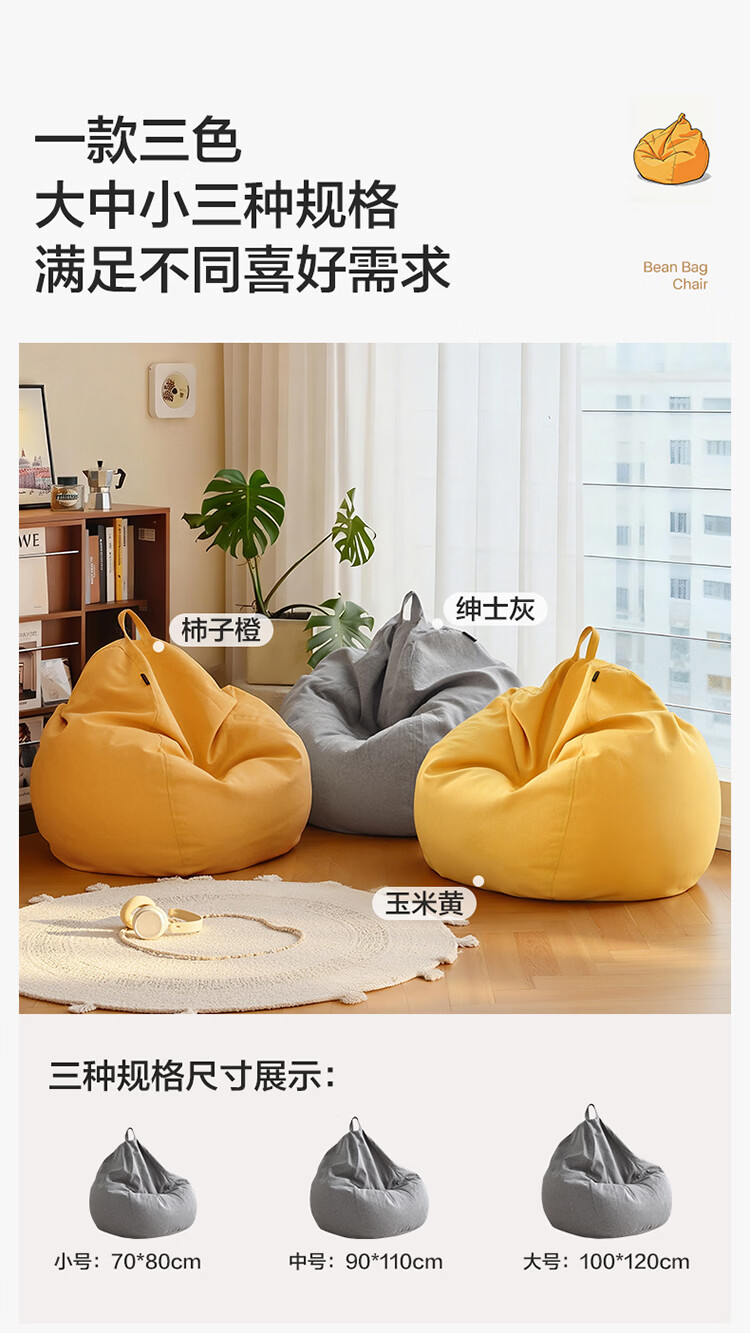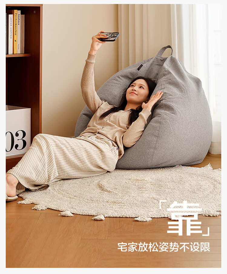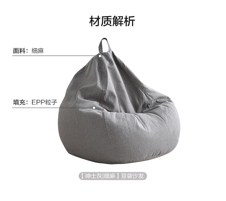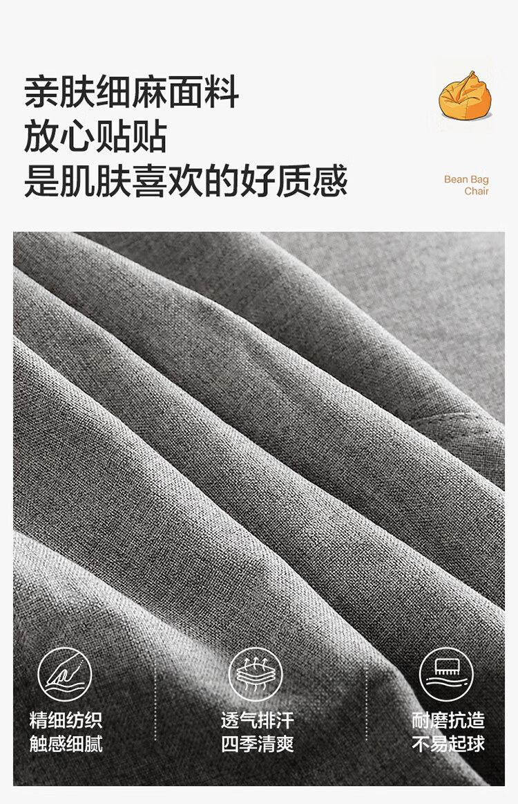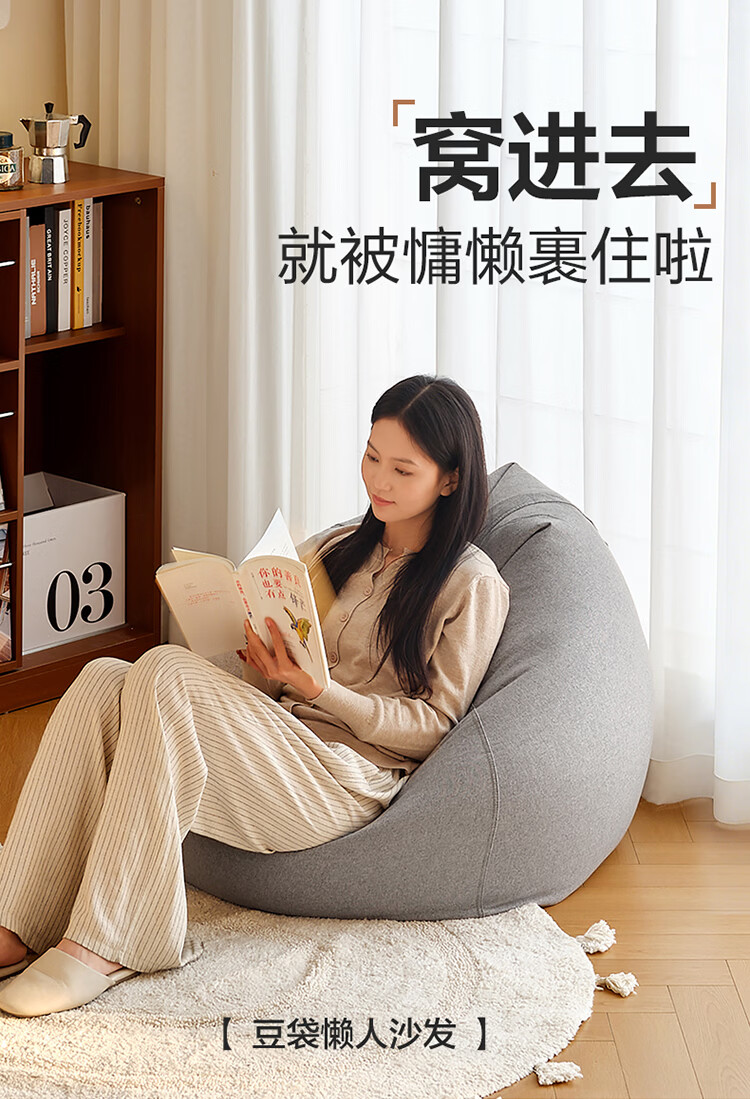 全友家居现代简约豆袋懒人沙发客厅卧室小户型单人沙发阳台简易沙发KS 【绅士灰|细麻】豆袋沙发 70×80cm