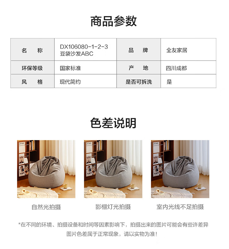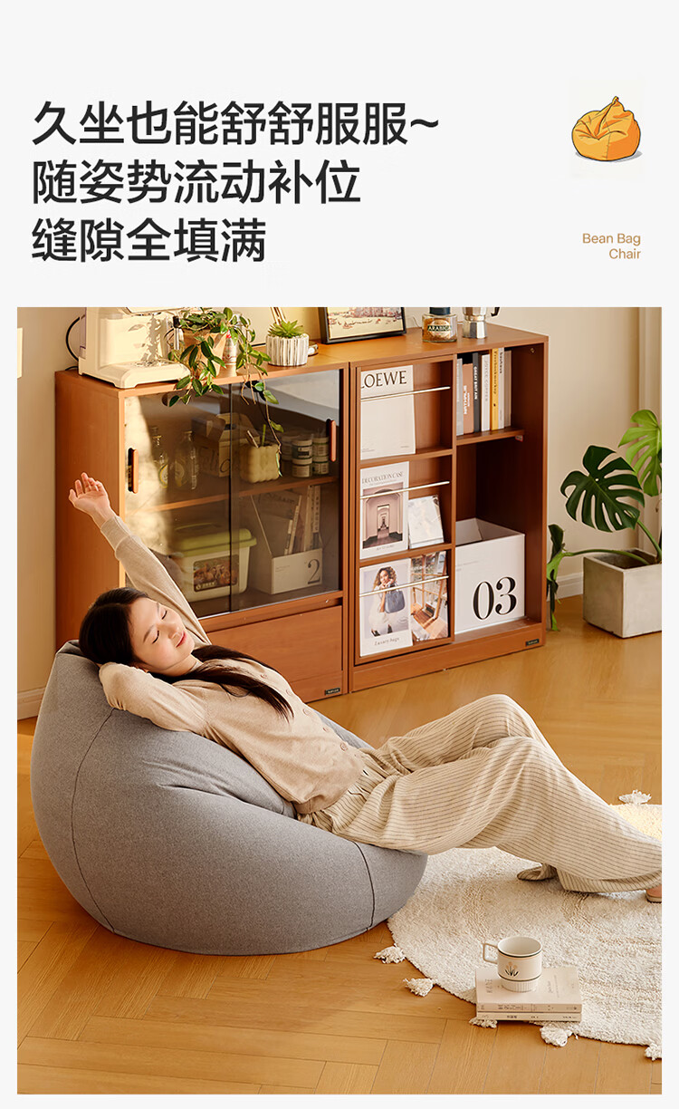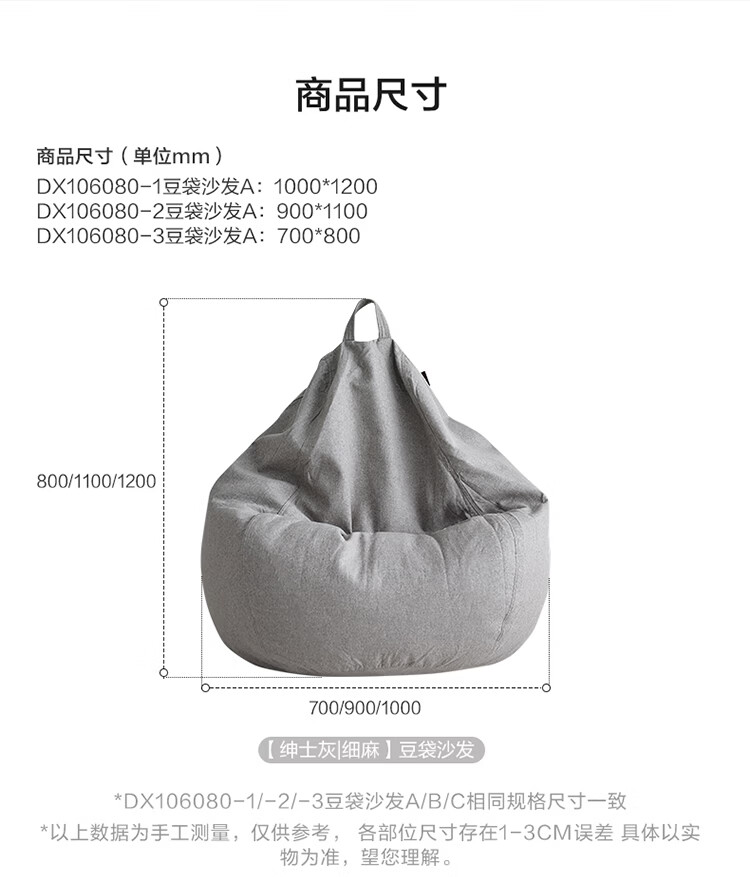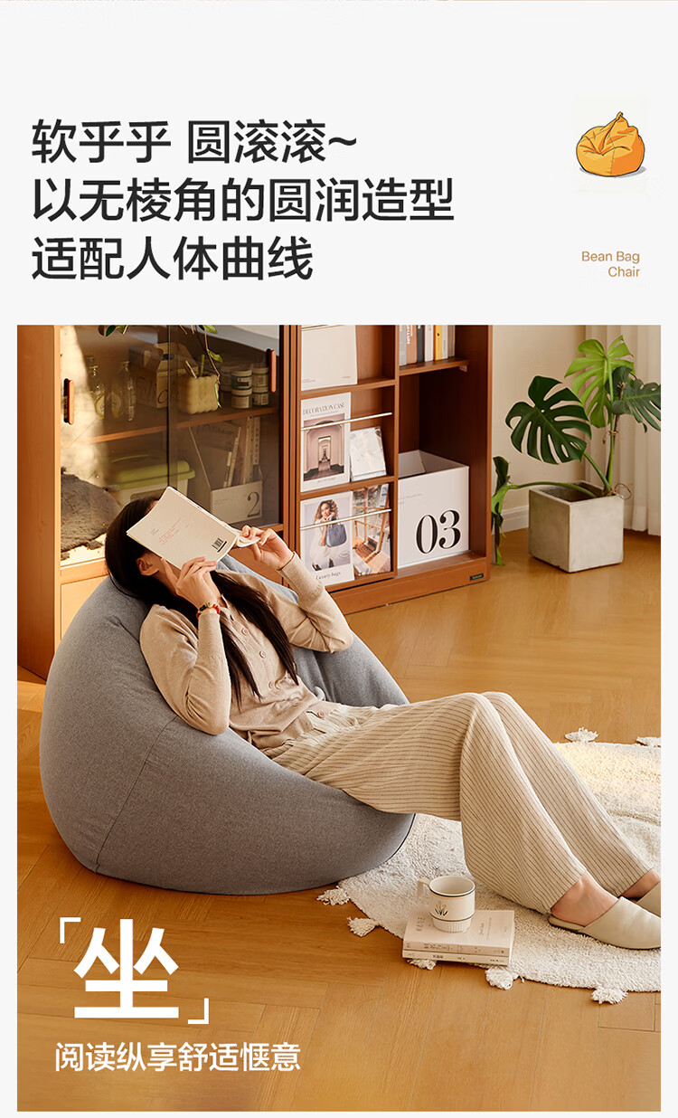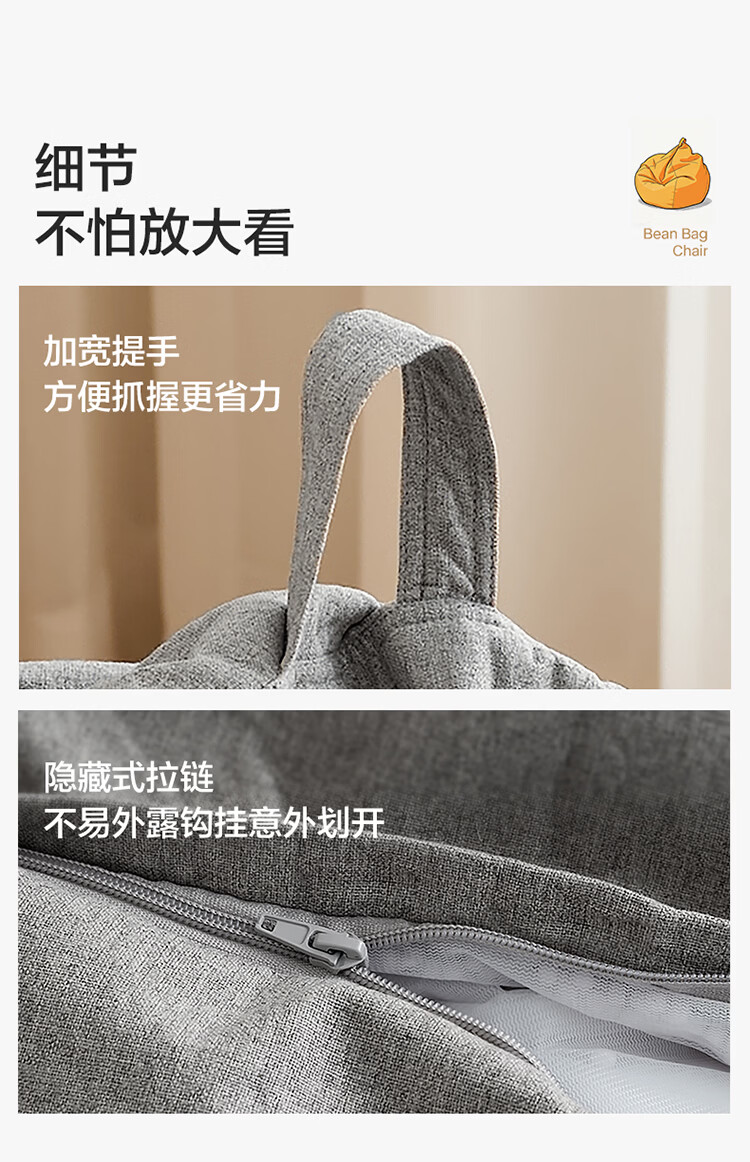 全友家居现代简约豆袋懒人沙发客厅卧室小户型单人沙发阳台简易沙发KS 【绅士灰|细麻】豆袋沙发 70×80cm